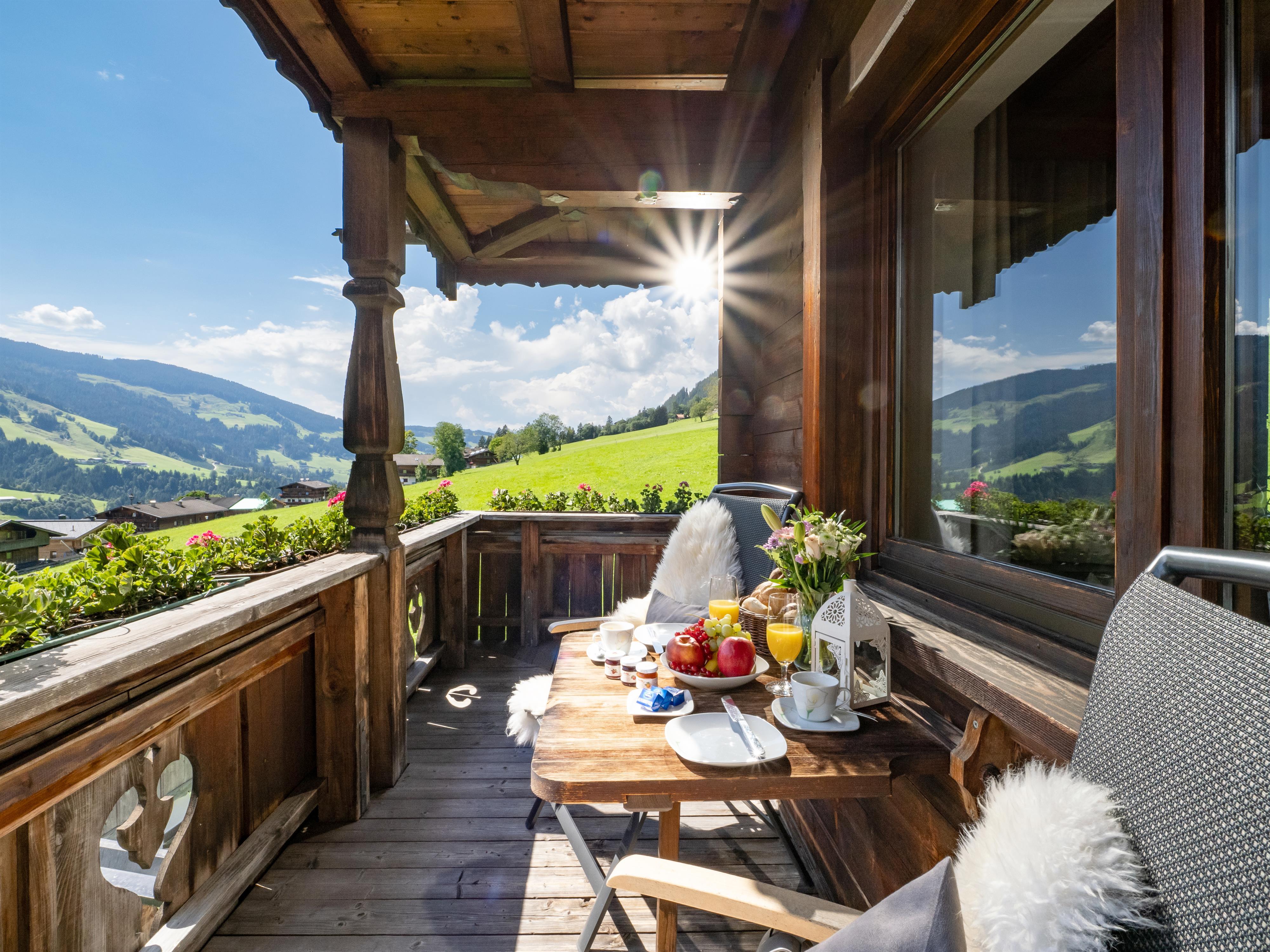 Unser Landhaus Alpbach befindet sich in sehr sonniger und ruhiger Lage, ca. 650 m vom Ortszentrum Alpbach entfernt, mit herrlichem Panoramablick auf das Wiedersbergerhorn und den Galtenberg.