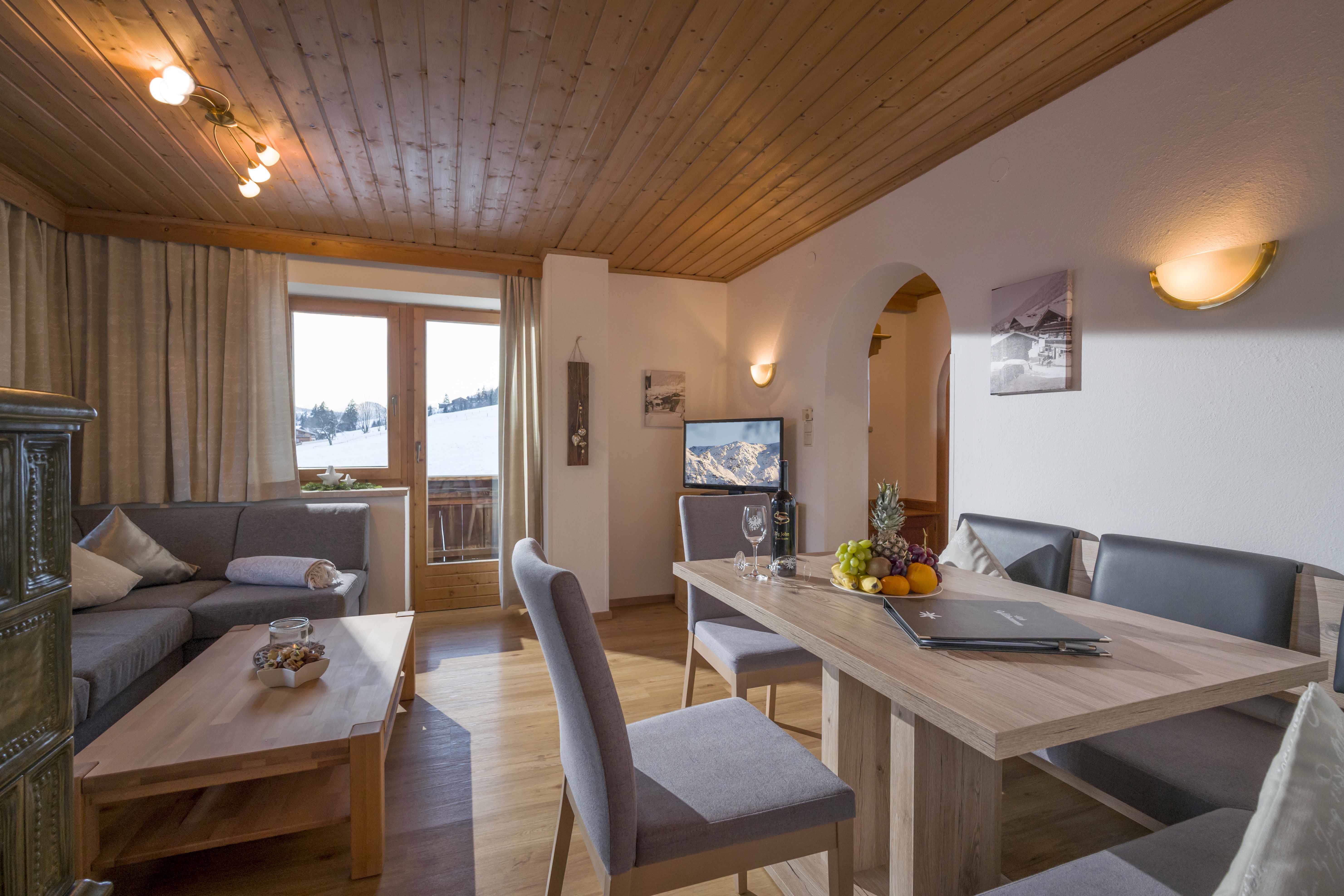 Appartement I - 50 m² für 1 bis 3 Personen Unser neu renoviertes Appartement I befindet sich im 1. Stock unseres Ferienhauses und bietet mit einer Größe von 50 m² genügend Platz zum Wohlfühlen für 1 - 3 Personen. Ausgestattet mit hochwertigen Natur-vollholzmöbeln wohnen Sie hier im modernen, behaglichen Ambiente mit viel Liebe zum Detail. Mit einer voll ausgestatteten Küche, einem Wohnraum mit Sitzecke, Flat-TV und Kachelofen kann man hier gemütliche Stunden verbringen.