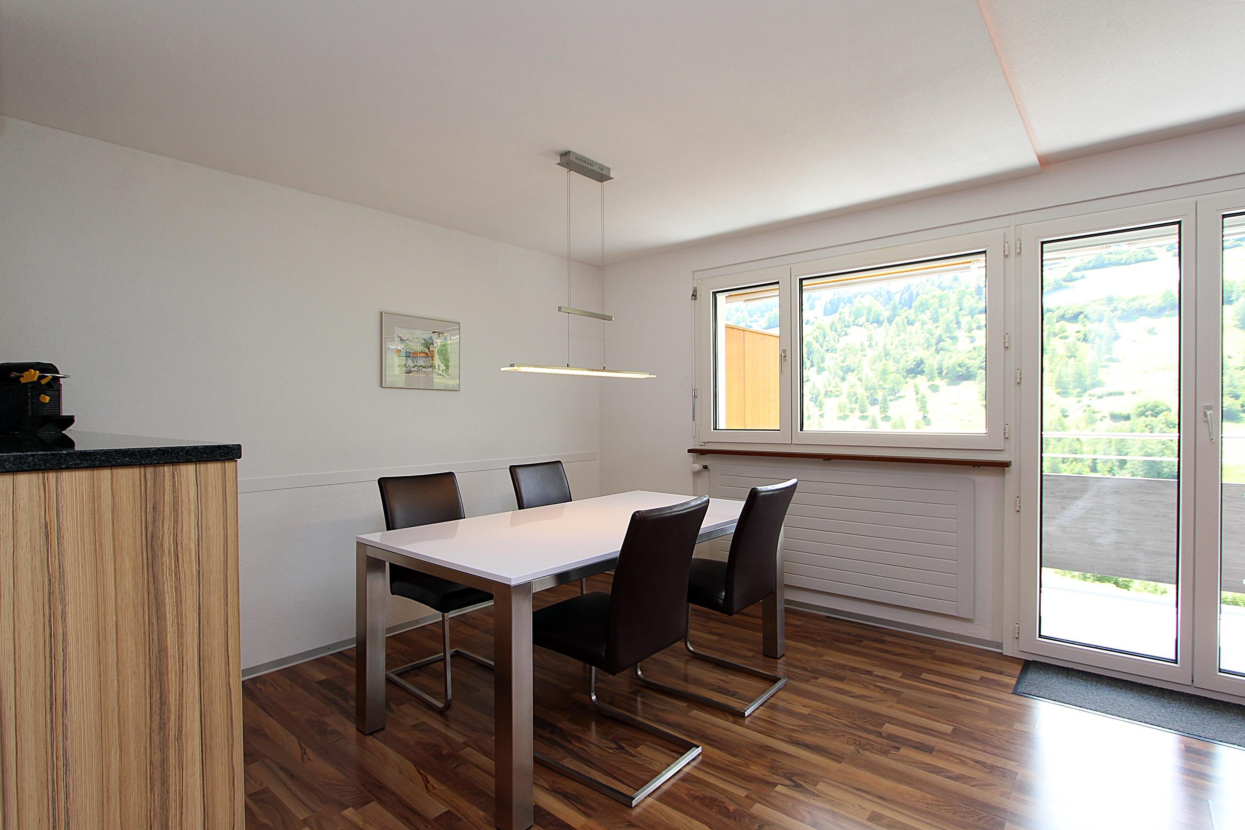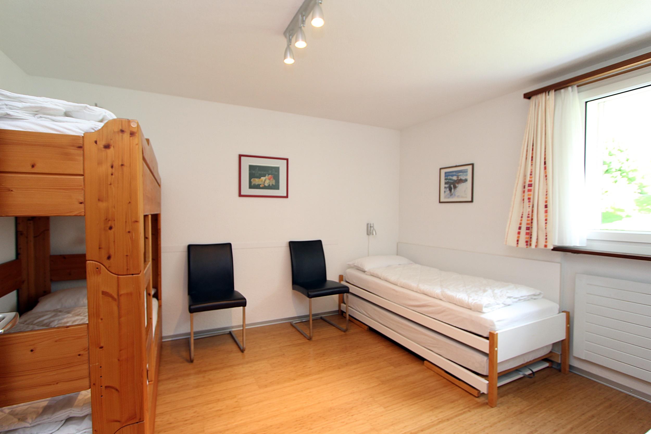 3 Zimmerwohnung (73 m2). 1 Schlafzimmer mit 1 Doppelbett. 1 Schlafzimmer mit 1 Einzelbett und 1 Etagenbett. Kochnische im Wohnzimmer mit Backofen, Kühlschrank, Geschirrspülmaschine und Nespresso Kaffeemaschine. Racletteofen und Fondue Caquelon. Fernseher und Radio. Bad und WC. Balkon und Parkplatz. Kinderspielplatz, Lift, Waschmaschine, Wäschetrockner, Skiraum und Tischtennisraum zur Mitbenutzung. Haustiere nicht erlaubt. Nichtraucherwohnung.