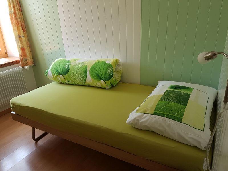 3-Zimmerwohnung in Mehrfamilienhaus ca. 70 m2 im 1. OG. In der Nähe der Bergbahnen und des Kinderskiparadies. 2 Schlafzimmer mit je 2 Einzelbetten. Insgesamt 4 Betten. Kinderbett auf Anfrage. Bett- und Küchenwäsche vorhanden. Separate Küche mit Backofen, Kühlschrank, Kaffeemaschine (Nespresso) Wasserkocher. Fondue Caquelon und Raclette-Ofen. Wohnzimmer mit Sofabett, TV und Radio. WLAN. Dusche/WC. Haartrockner. Haustiere erlaubt. Nichtraucherwohnung. Waschmaschine und Trockner im Haus. Balkon. Parkplatz. Skiraum.