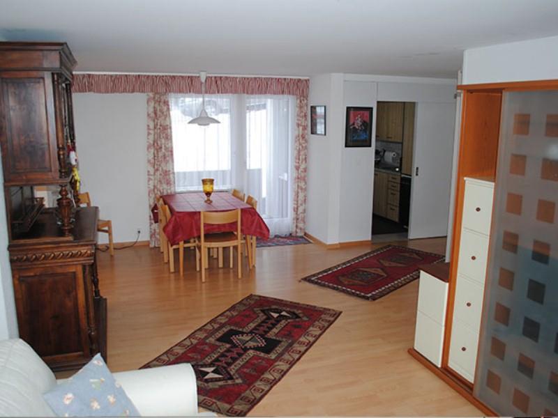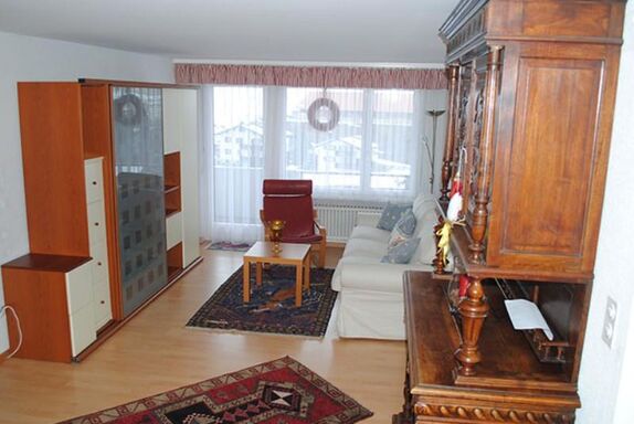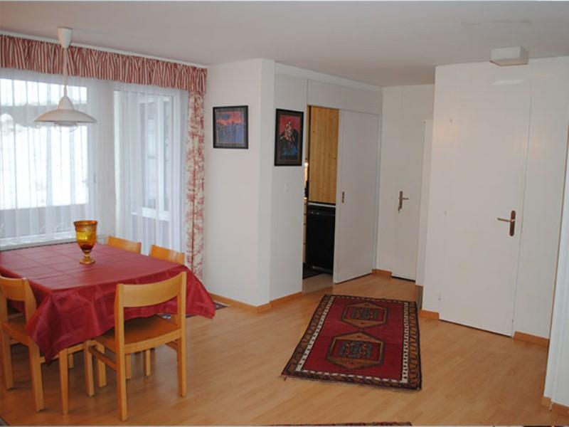 4 Zimmerwohnung ca. 80 m2 in Mehrfamilienhaus im 1. Stock. 1 Schlafzimmer mit 1 Doppelbett. 1 Schlafzimmer mit 1 Einzelbett und 1 Bettsofa für 2 Personen. 1 Schlafzimmer mit 1 Bettsofa für 2 Personen, insgesamt 7 Betten. Bettwäsche und Küchentücher sind vorhanden. Separate Küche mit Backofen, Kühlschrank, Geschirrspülmaschine, Kaffemaschine, Raclette und Fondue. Dusche/WC. Haustiere nicht erlaubt. Nichtraucherwohnung. Waschmaschine im Haus. Fernseher und Radio. 2 Balkone. Parkplatz. Zur Mitbenützung: Garten, Kinderspielplatz und Skiraum.