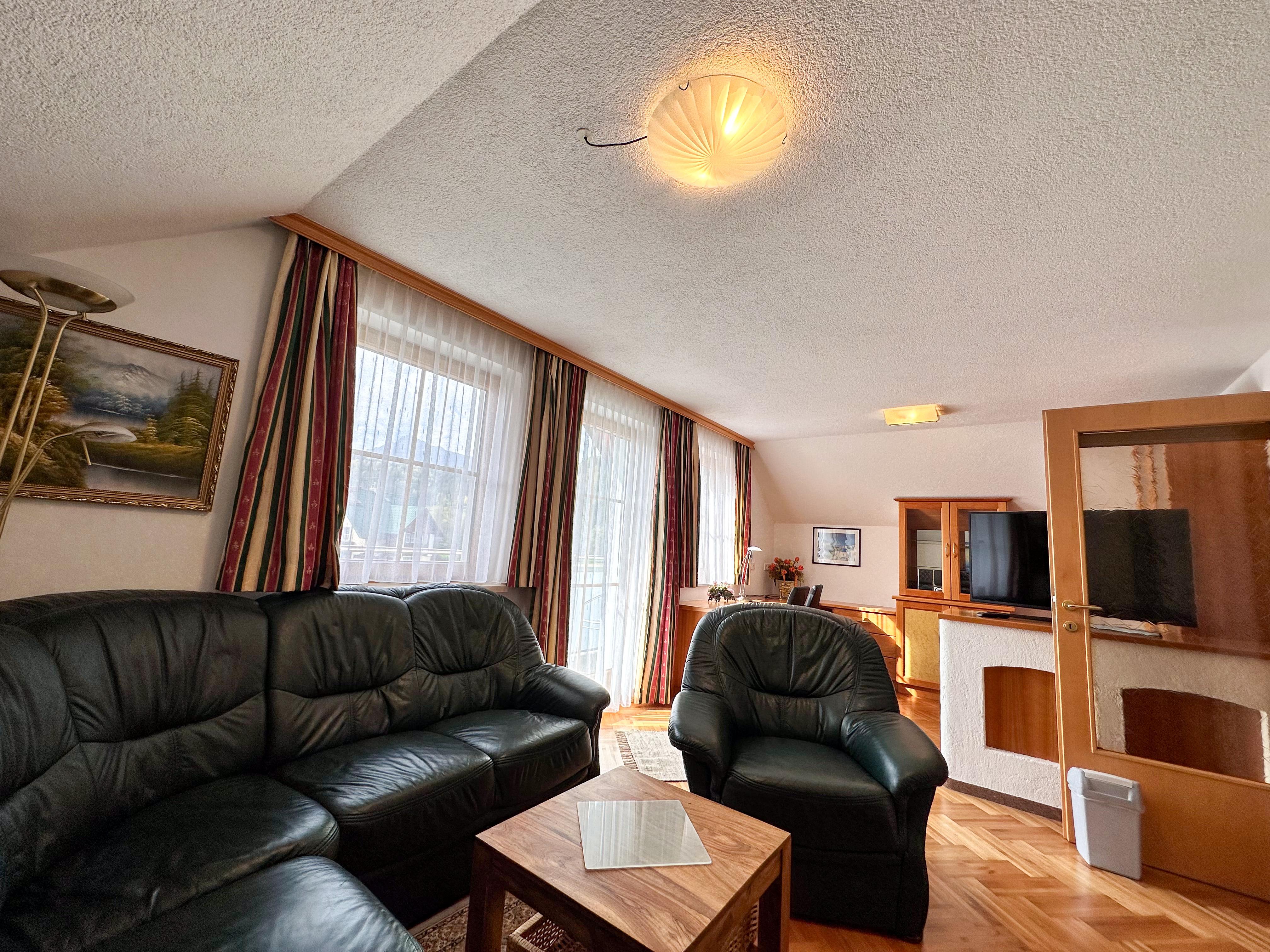 In unserem neuen Feriehaus Karin wohnen Sie in einem von zwei Appartements, für jeweils 8 Personen eingerichtet mit jeweils 3 Doppelzimmern, 2 Duschen, 2 WCs, einer voll ausgestatteten Küche, Sat-TV, kostenlosem Internetzugang und einem gemütlichen Wohnzimmer. Vom Balkon der Appartements erleben Sie eine herrliche Aussicht auf die Berge von Schladming-Dachstein, allen voran der mächtige Grimming.