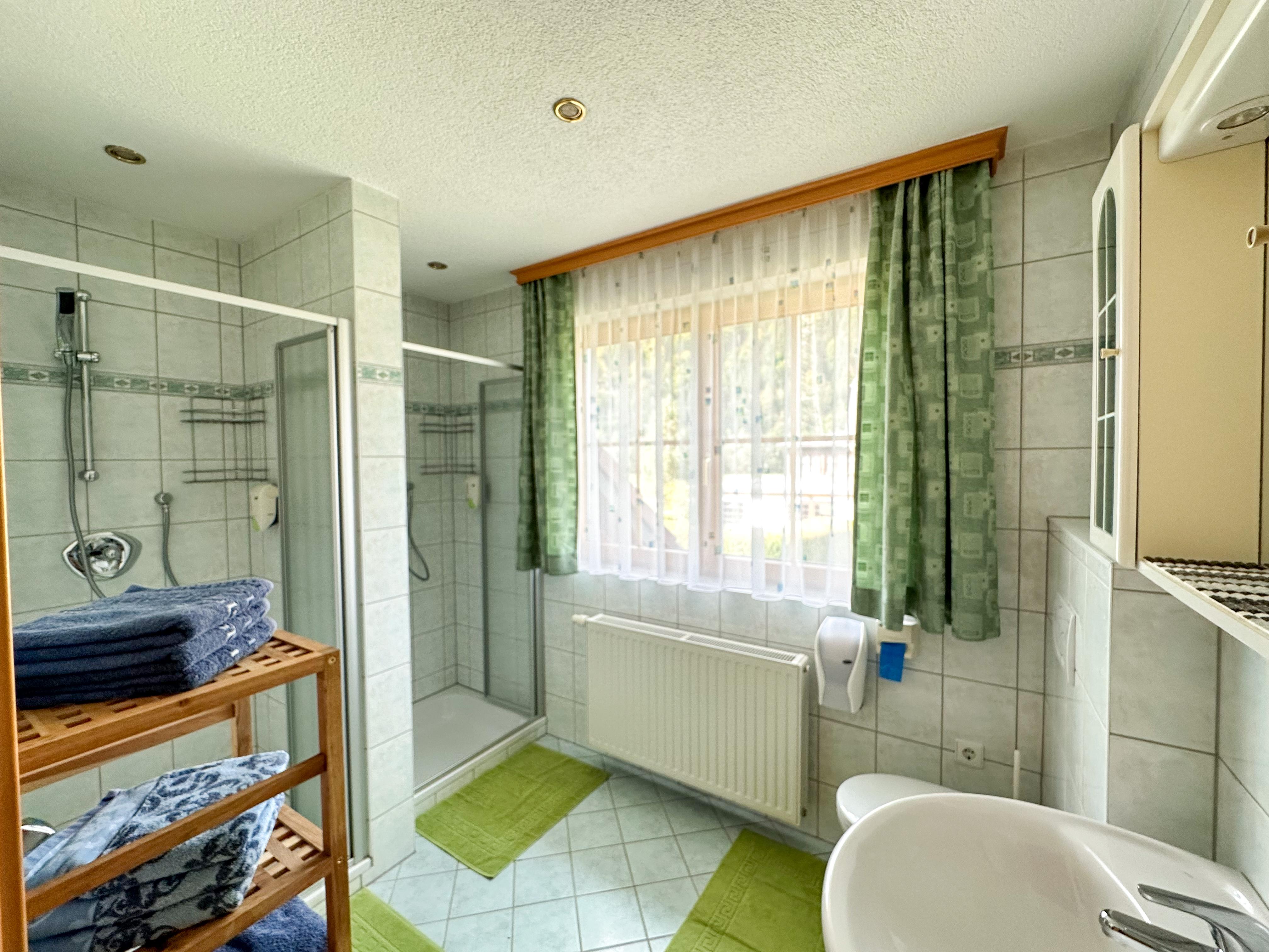 Jede der 2 neuen Ferienwohnungen hat 3 getrennte Doppelzimmer mit Sat-TV, eine Doppel-Schlafcouch im Wohnzimmer mit Schwedenofen, (4 Schlafräume), 2 WC, Damen und Herren getrennt sowie 2 Duschen, Vorraum mit Garderobe, Abstellraum und komplett eingerichtete und voll ausgestattete Küche mit Essecke, in allen Wohn- und Schlafräumen elektrische Rollläden, In allen Schlafzimmer allergikerfreie Bettwäsche und Holz-Parkettböden sowie im gesamten Ferienhaus Karin allergikerfreie Fußböden. Gratis Parkplätze, Free-WLAN, Sat-TV, Balkon / überdachte Terrasse mit Balkonmöbel, Garten mit Gartenmöbel und mit Blick auf den höchsten alleinstehenden Berg Europas, den Grimming 2.351m