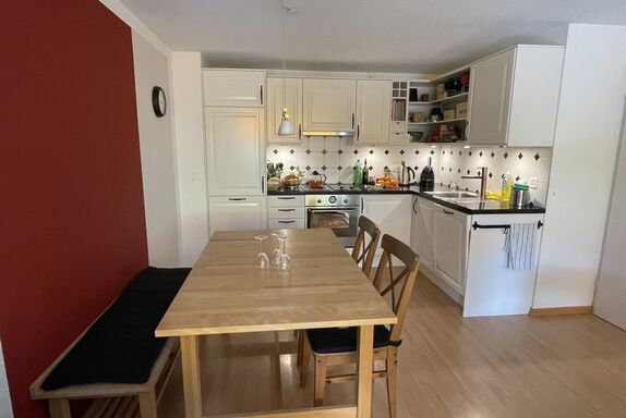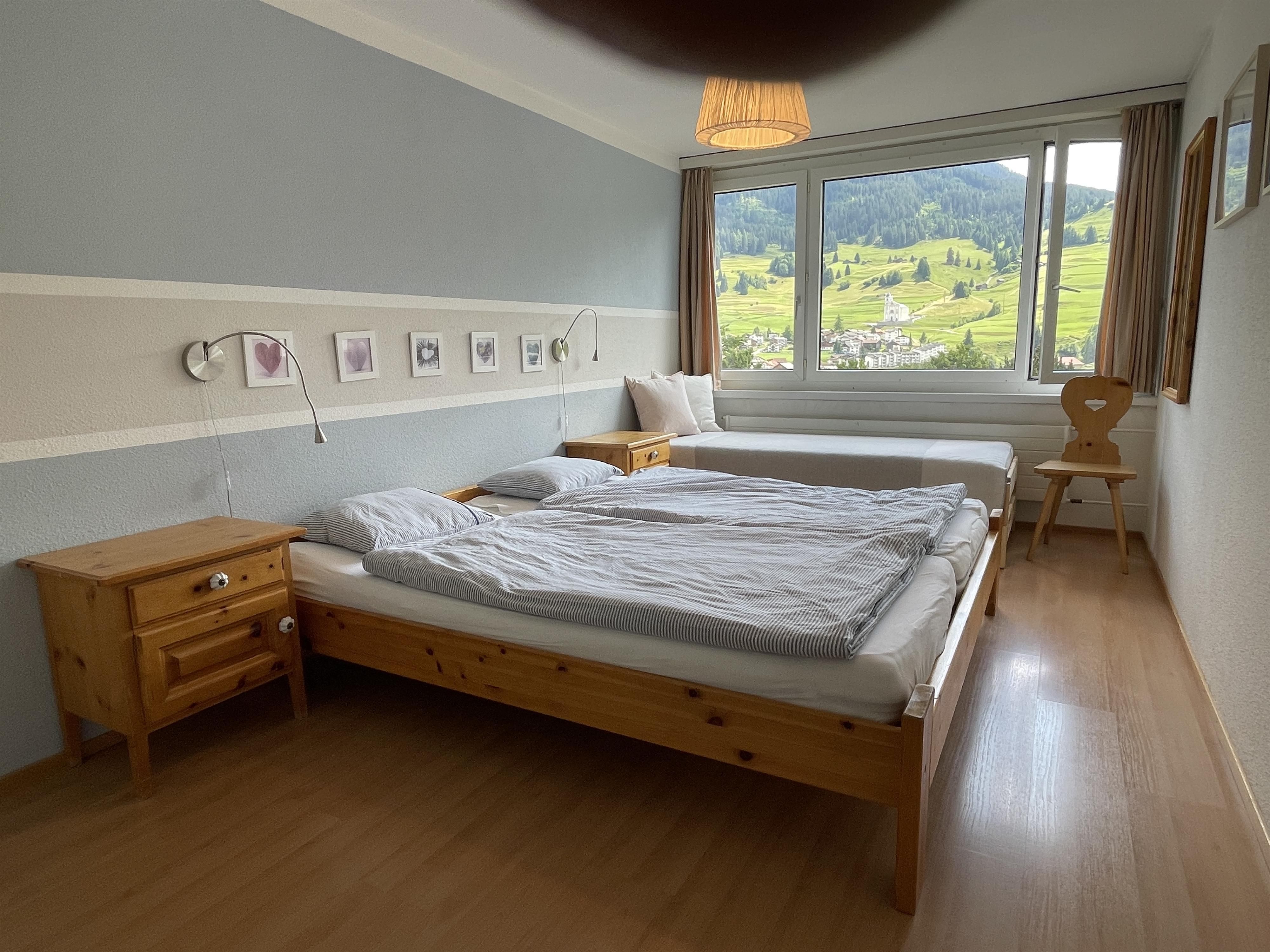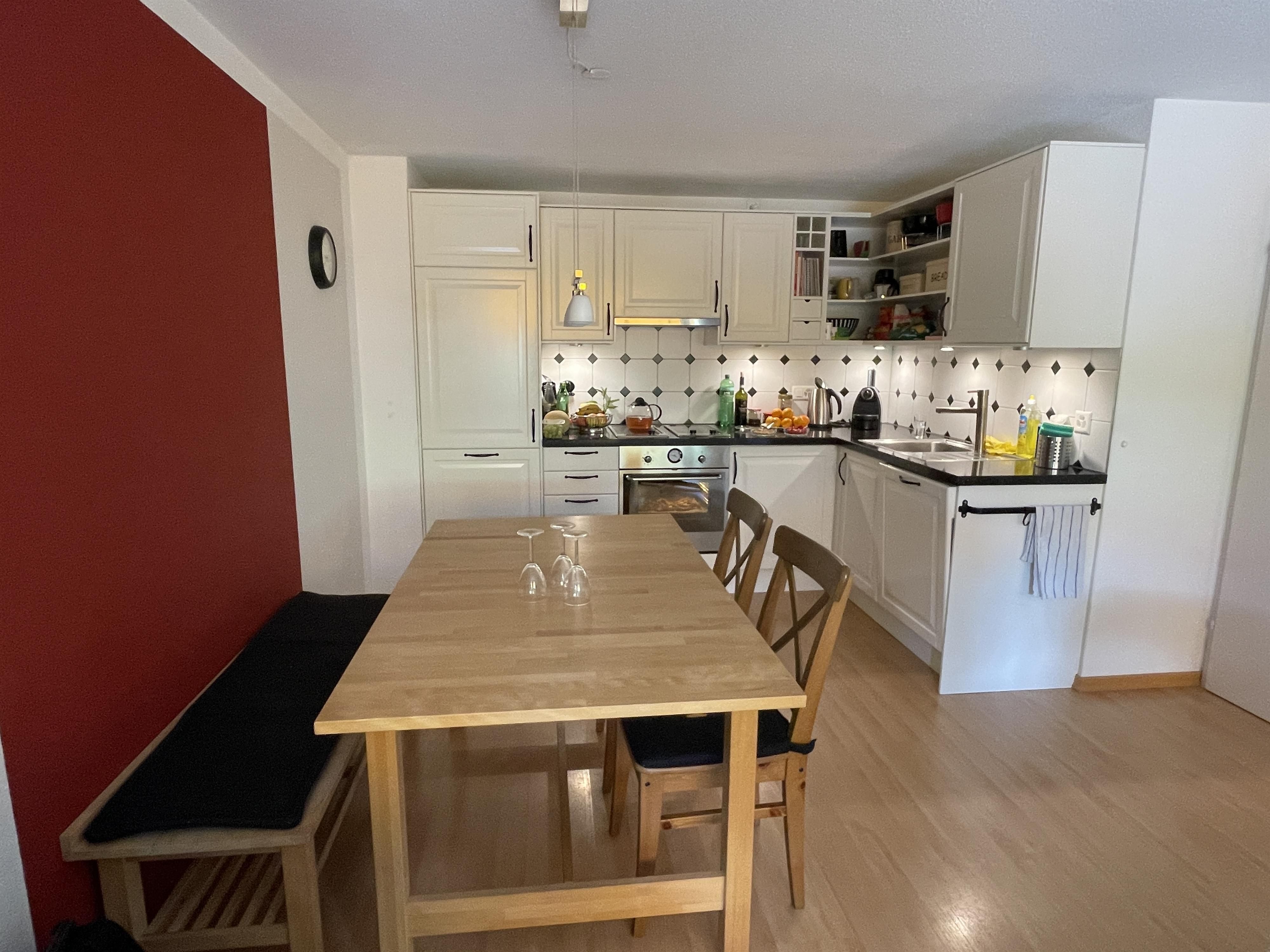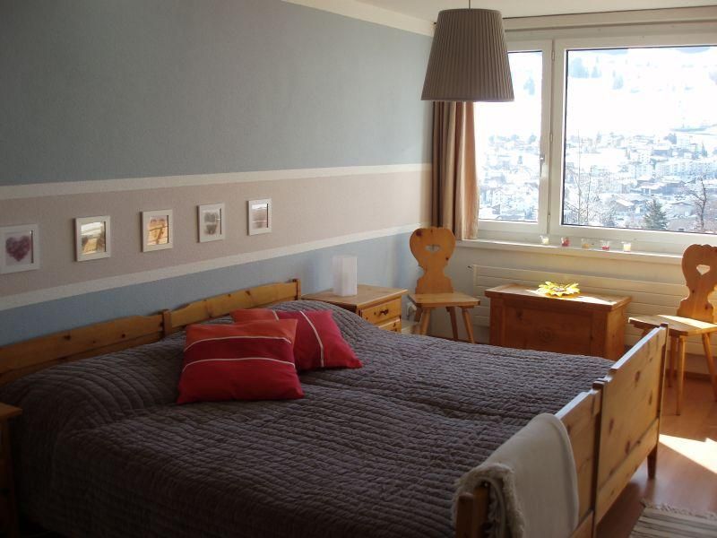 2 1/2-Zimmerwohnung ca. 60 m2 in Mehrfamilienhaus. 1 Schlafzimmer mit 1 Doppelbett, insgesamt 2 Betten. Bett- und Küchenwäsche vorhanden. Küche im Wohnzimmer integriert mit Backofen, Kühlschrank, Geschirrspülmaschine und Kaffeemaschine. Dusche/WC. Haustiere nicht erlaubt. Nichtraucherwohnung. Waschmaschine und Tumbler. TV und Radio.Wlan. Balkon. Parkplatz. Garten. Kinderspielplatz. Lift im Haus. Im Sommer geheiztes Freiluftbad mit Liegewiese. Liegestühle vorhanden. Skiraum zur Mitbenutzung. Sauna, Solarium gegen Entgeld. Saunabenützung CHF 10.00. Das Benutzen der Bettwäsche ist Pflicht.