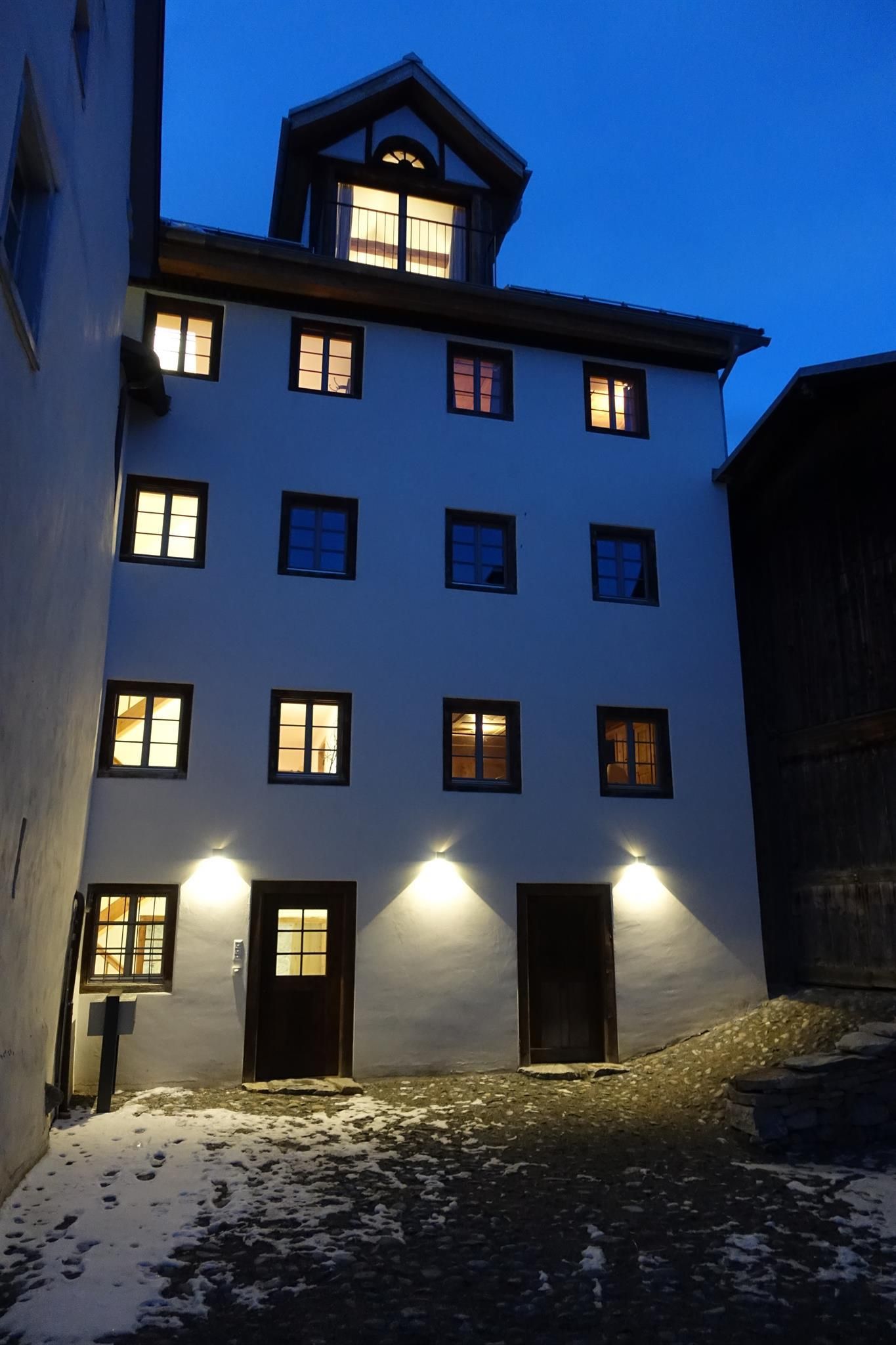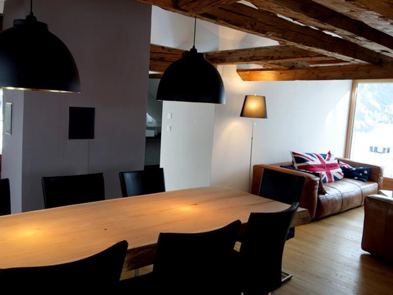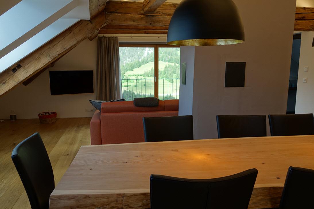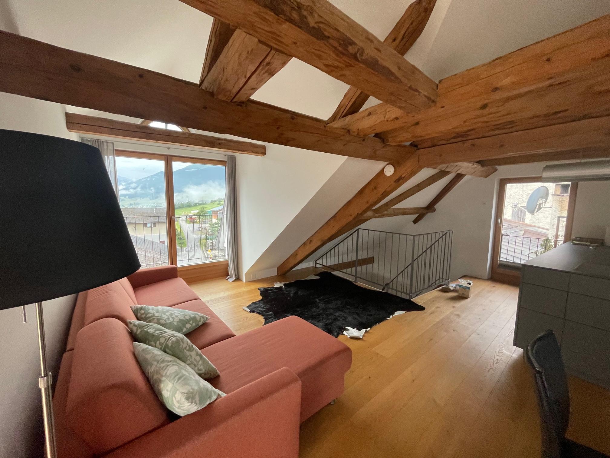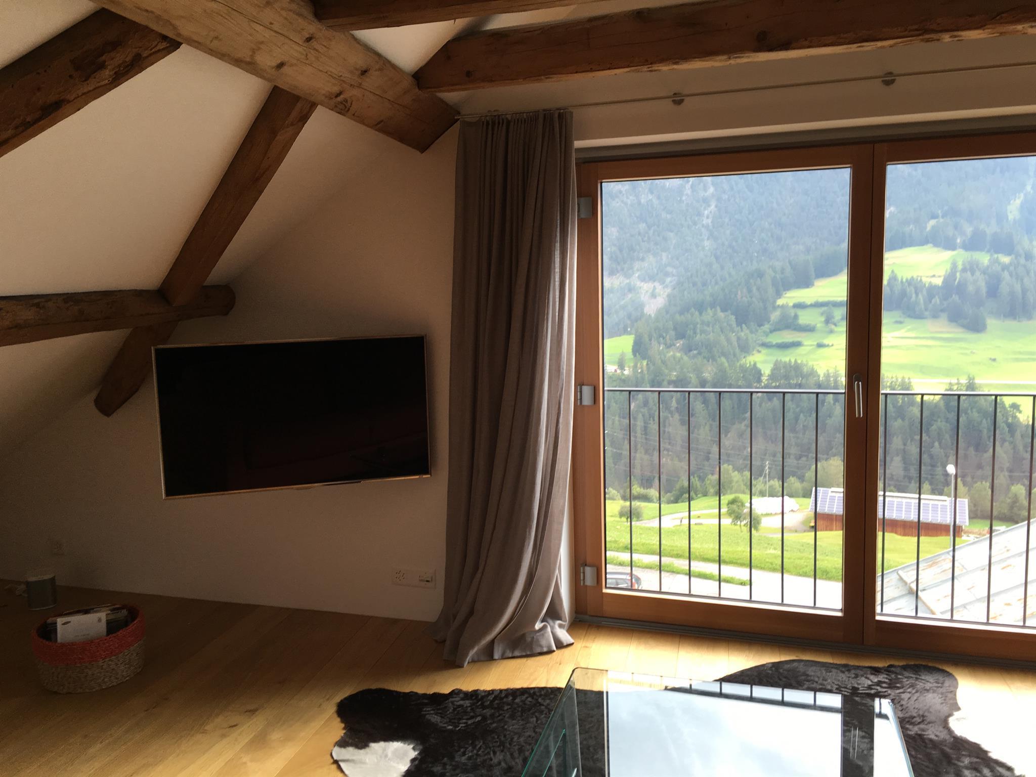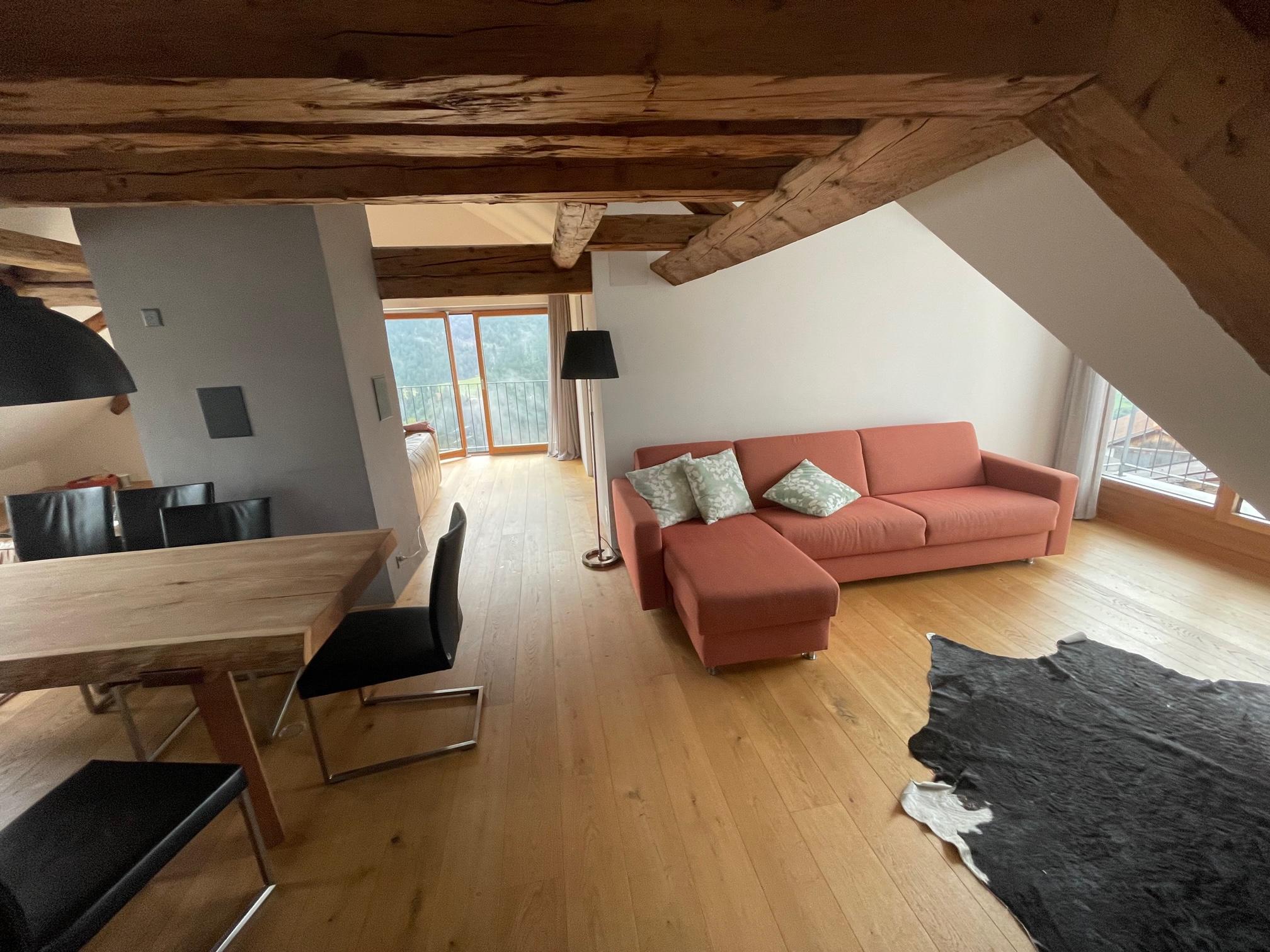 5.5 Zimmerwohnung ca. 160 m2 in Mehrfamilienhaus. Die Wohnung befindet sich auf 2 Stockwerken, im 3. OG und im Dachgeschoss. 2 Schlafzimmer mit je 1 Doppelbett. 2 Schlafzimmer mit je 2 Einzelbetten, insgesammt 8 Betten. Bett-, Küchen- und Badewäsche vorhanden. Wohnküche mit Backofen, Kühlschrank, Geschirrspülmaschine, Induktionsherd, Steamer, Toaster, Wasserkocher und Kaffeemaschine (Nespresso), Mixer. Racletteofen und Fondue Caquelon. Bad/ WC. Dusche/ WC, Haartrockner. Nichtraucherwohnung. TV und Radio. Balkon, Garten. Parkplatz (ca. 100 m vom Haus entfernt). Waschmaschine und Wäschetrockner im Haus. WLAN/Internet. Ski- und Abstellraum. Haustiere auf Anfrage, CHF 10.-/Nacht. Die Kosten sind vor Ort zu begleichen.