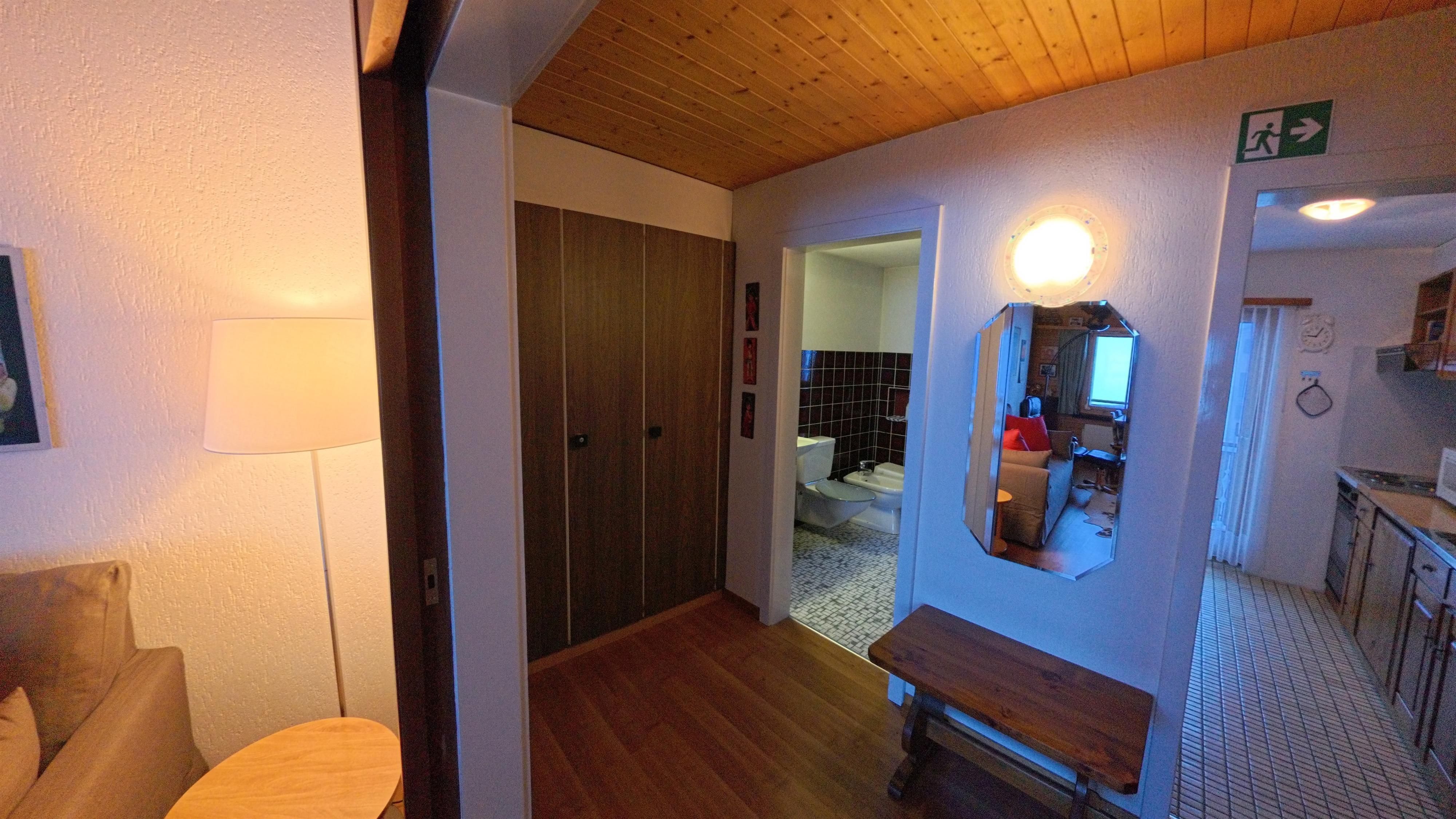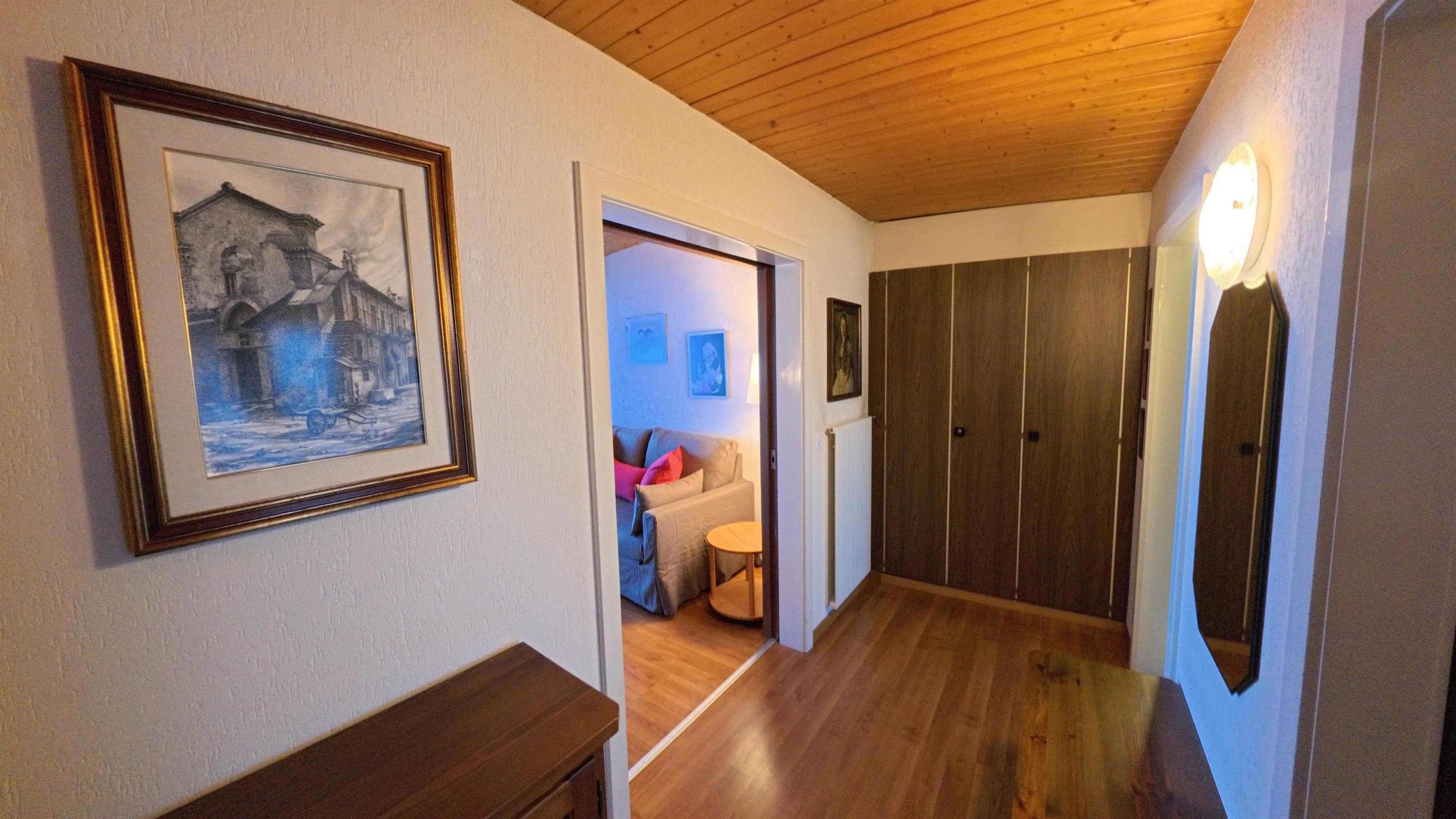 2 1/2 Zimmerwohnung ca. 60 m2 im 4. Stock in Mehrfamilienhaus. 1 Schlafzimmer mit 1 Doppelbett 160 x 190 cm. Wohnzimmer mit 1 Schlafgelegenheit, insgesamt 3 Betten. Bettwäsche, Küchentücher und Frotteewäsche vorhanden. Separate Küche mit Backofen, Mikrowelle, Kaffeemaschine (Moka) und Kühlschrank. Fondue Caquelon. Dusche/WC. Haustiere nicht erlaubt. Nichtraucherwohnung. Radio und TV. WLAN. Balkon und Parkplatz. Garten und Skiraum zur Mitbenutzung.
