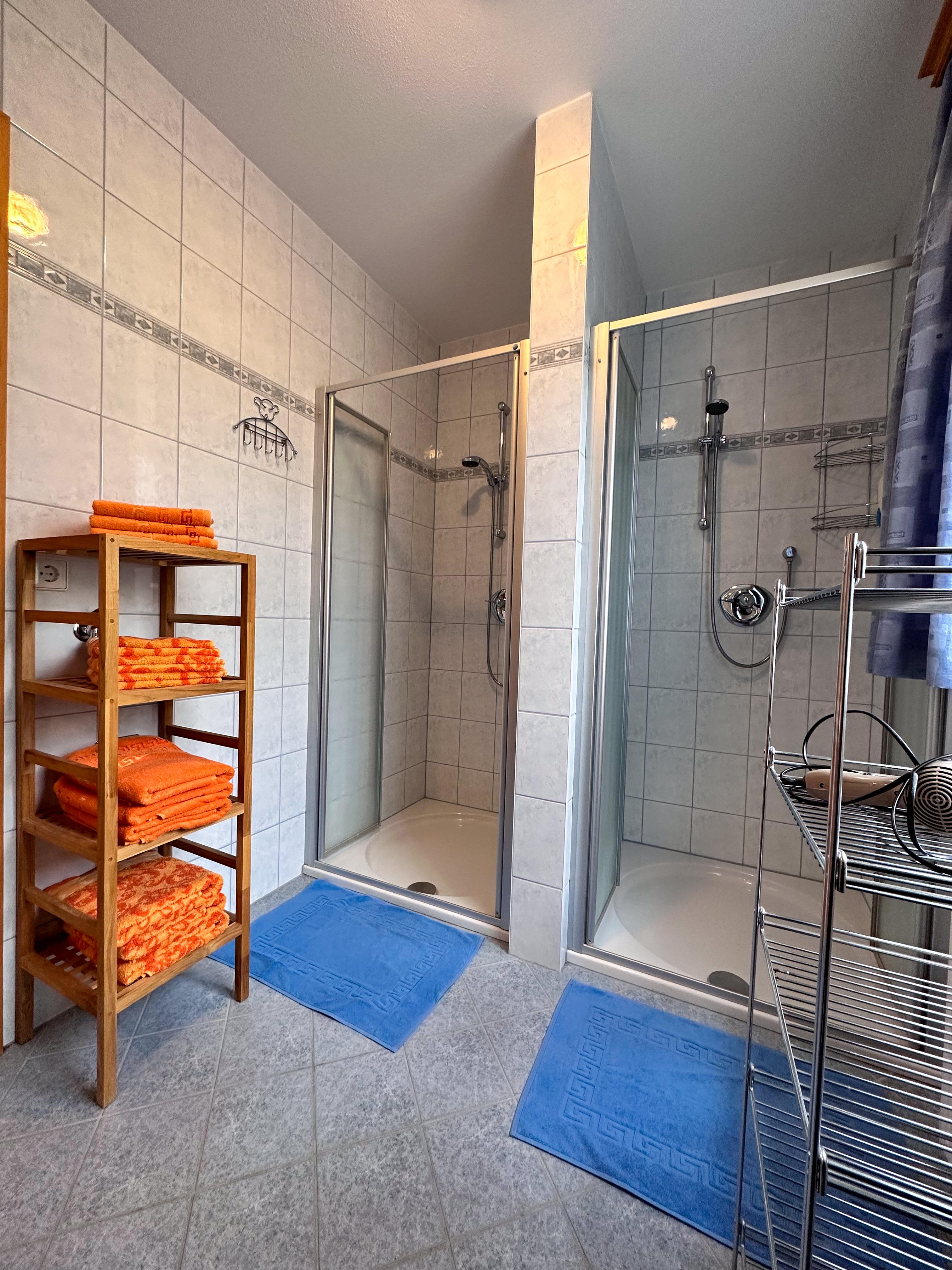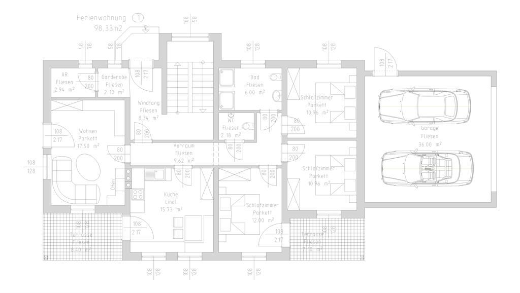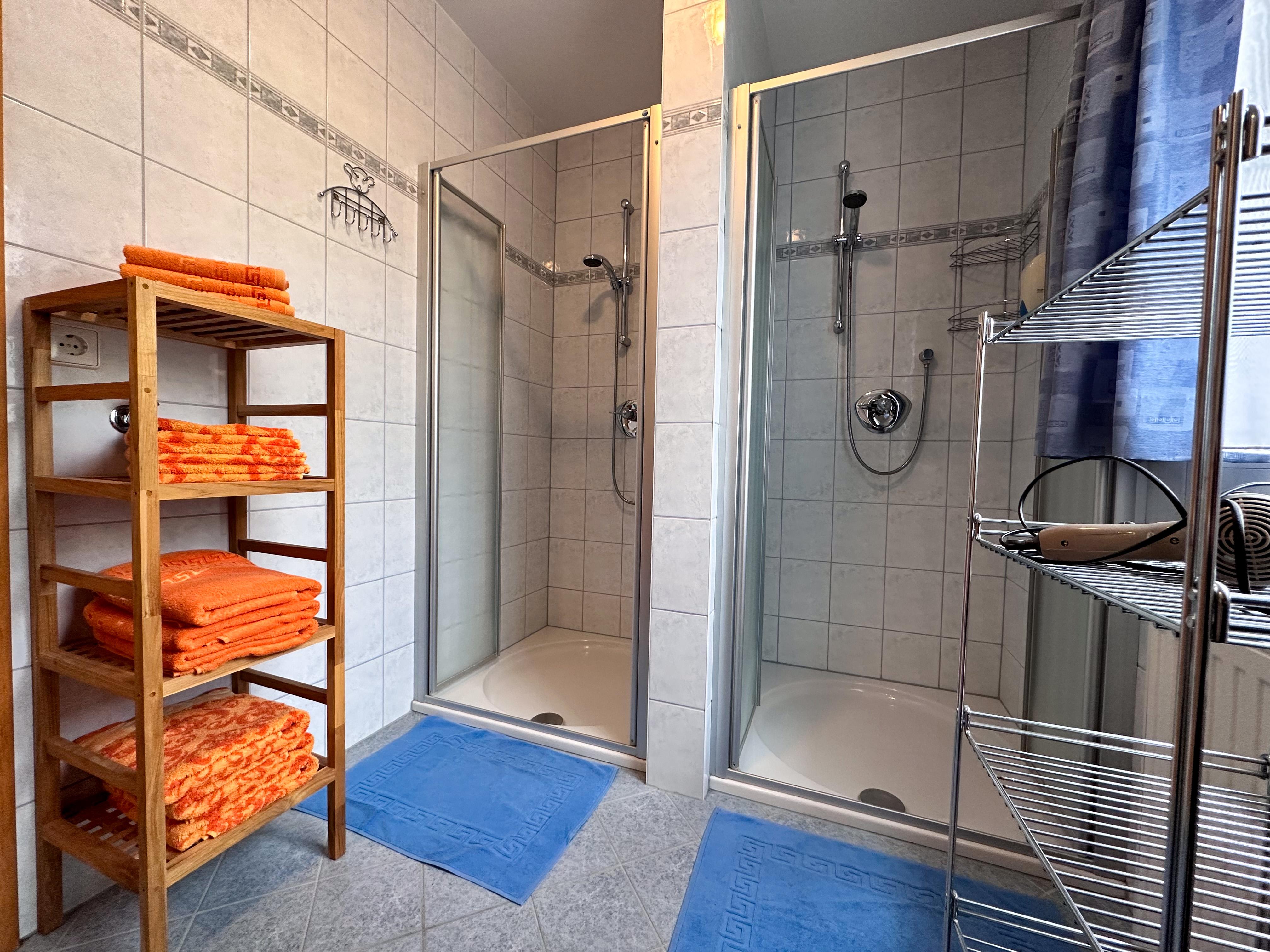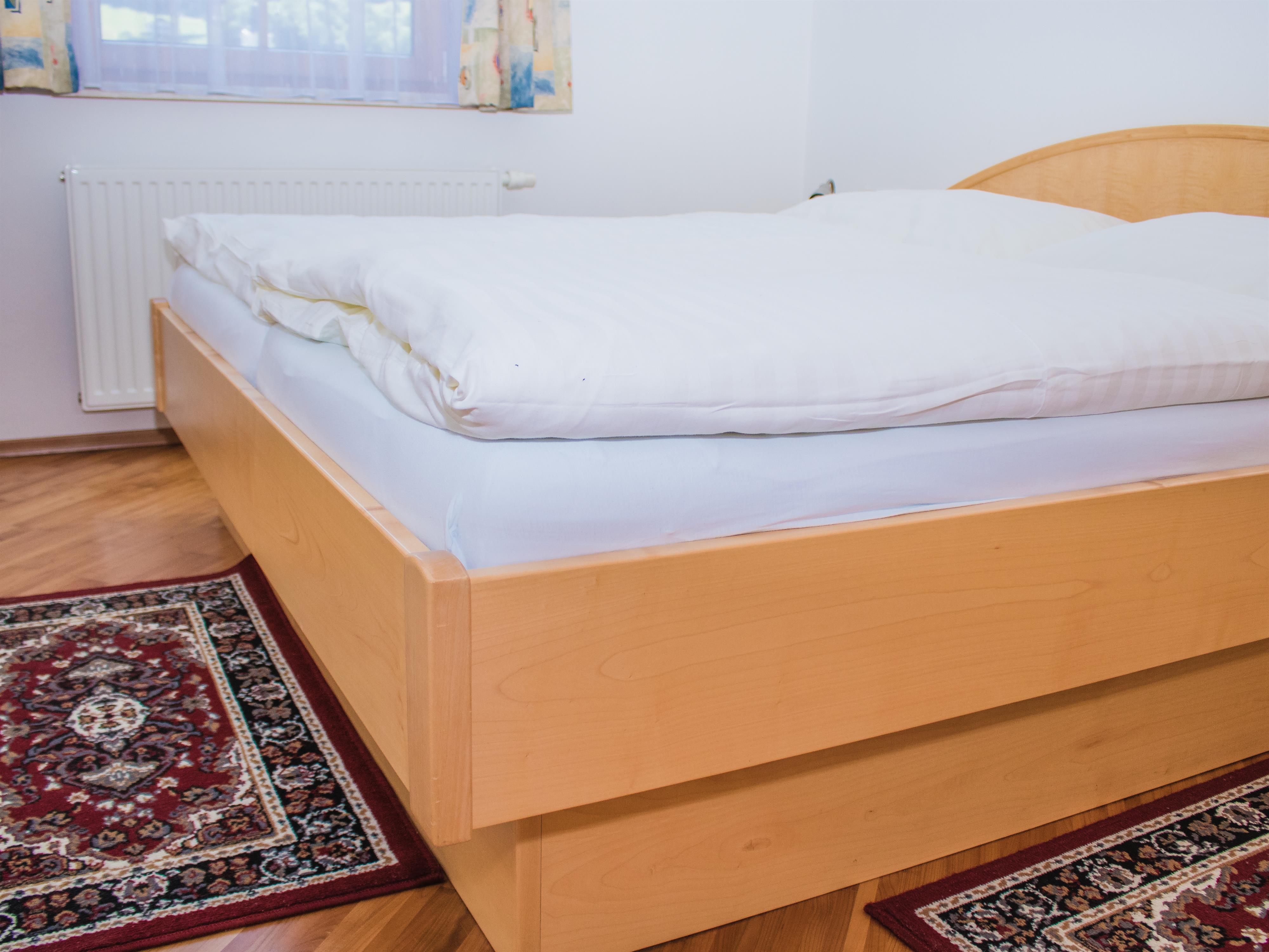 Jede der 2 neuen Ferienwohnungen hat 3 getrennte Doppelzimmer mit Sat-TV, eine Doppel-Schlafcouch im Wohnzimmer mit Schwedenofen, (4 Schlafräume), 2 WC, Damen und Herren getrennt sowie 2 Duschen, Vorraum mit Garderobe, Abstellraum und komplett eingerichtete und voll ausgestattete Küche mit Essecke, in allen Wohn- und Schlafräumen elektrische Rollläden, In allen Schlafzimmer allergikerfreie Bettwäsche und Holz-Parkettböden sowie im gesamten Ferienhaus Karin allergikerfreie Fußböden. Gratis Parkplätze, Free-WLAN, Sat-TV, Balkon / überdachte Terrasse mit Balkonmöbel, Garten mit Gartenmöbel und mit Blick auf den höchsten alleinstehenden Berg Europas, den Grimming 2.351m