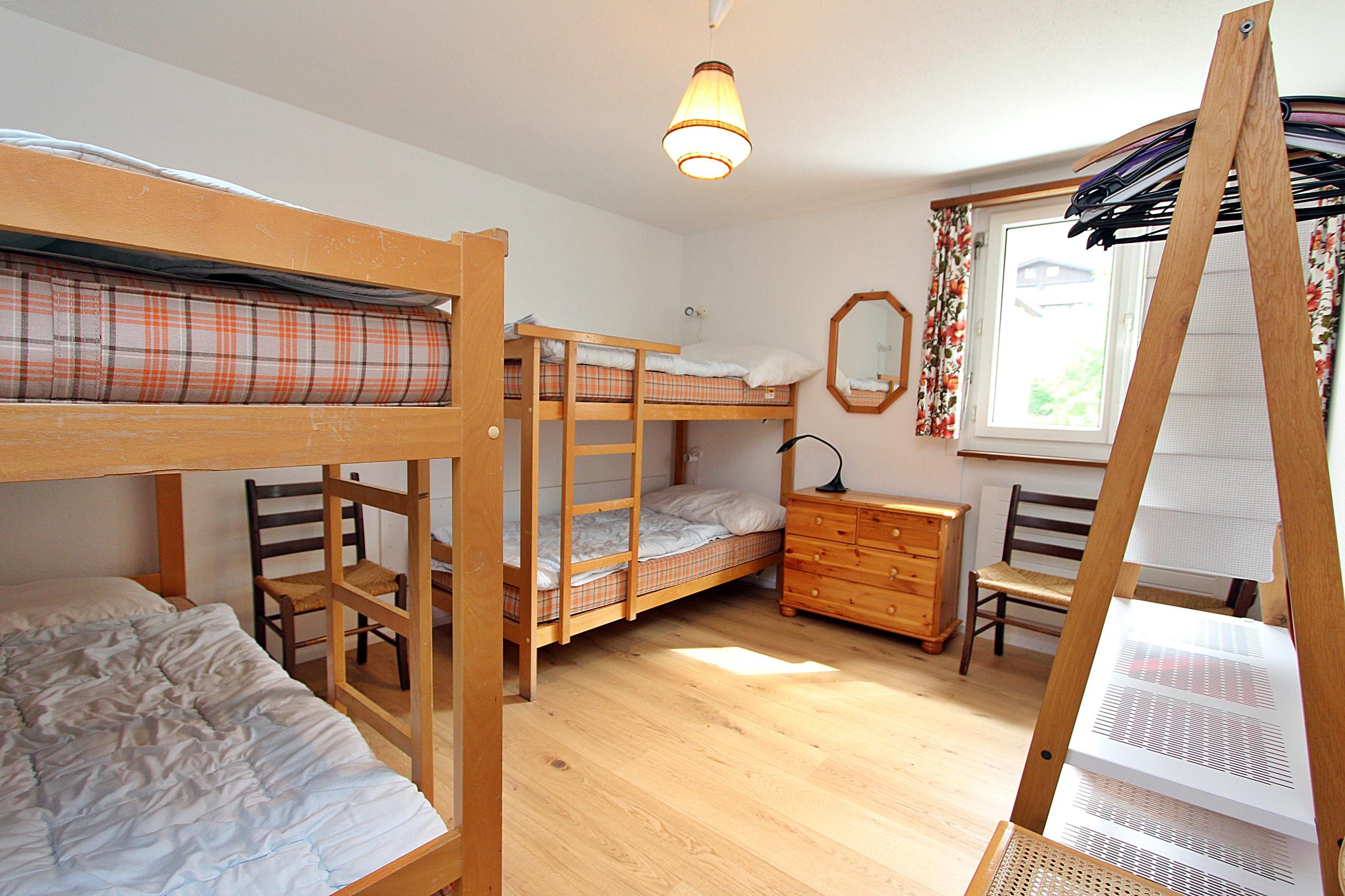 3 Zimmerwohnung ca. 62 m2 im 1. OG in Mehrfamilienhaus. 1 Doppelzimmer und 1 Schlafzimmer mit 2 Kajütenbetten, insgesamt 6 Betten. Küche im Wohnzimmer integriert mit Backofen, Geschirrspülmaschine und Kühlschrank. Badewanne mit Duschvorrichtung/WC. Nichtraucherwohnung. TV und Radio. Balkon. Parkplatz. Garage auf Anfrage. Kompostierung möglich. Zur Mitbenutzung: Garten, Kinderspielplatz, Lift, Waschmaschine, Trockner, Skiraum, Tisch-Tennis im Haus. WLAN in der Wohnung.Haustiere erlaubt. Reinigung mit Haustier zusätzlich CHF 30.00.