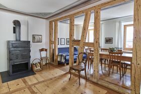 Zu beachten: Da das Haus noch den früheren Baustil enthält, muss man die Hauptwohnung verlassen um ins Badezimmer, Küche und eines der Schlafzimmer zu gelangen. Die Räume sind auf dem Flur des Hauses verteilt.