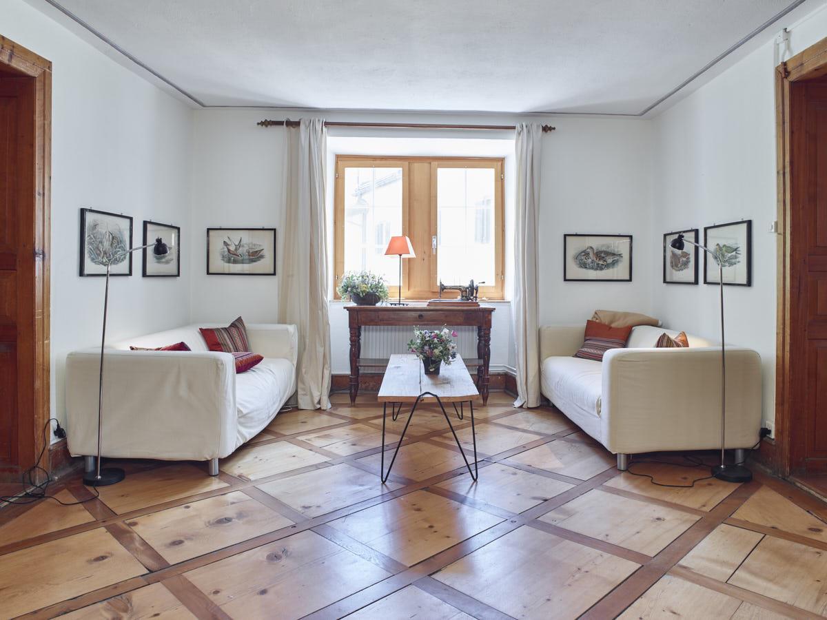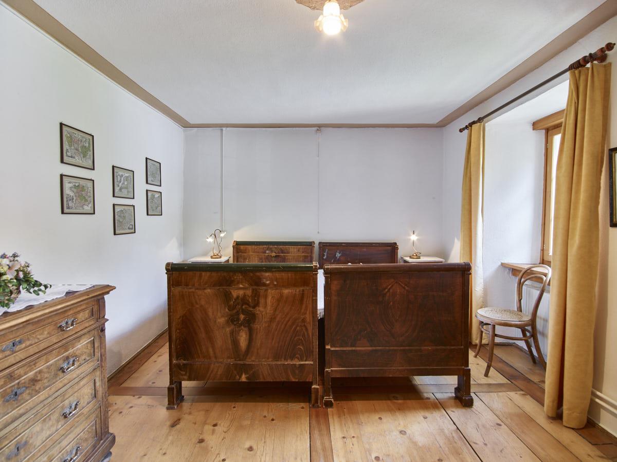 5 1/2 Zimmerwohnung ca. 130 m2 im 2. Stock. Maximale Belegung für 7 Personen. 3 Schlafzimmer mit Einzelbetten. 3 Betten 0.9 x 1.8m. Bettwäsche, Küchentücher und Frottéewäsche auf Wunsch vorhanden. Separate Wohn-Essküche mit Backofen, Kühlschrank, Geschirrspülmaschine und Kaffeemaschine. Bad/WC und Dusche/WC. Cheminée, Fernseher, Radio. WLAN. Haustiere auf Anfrage erlaubt. 1 Parkplatz für 1 Auto garatiert. Nichtraucherwohnung. Kinderbett (mietbar). Zur Mitbenutzung: Skiraum.
