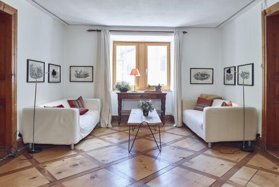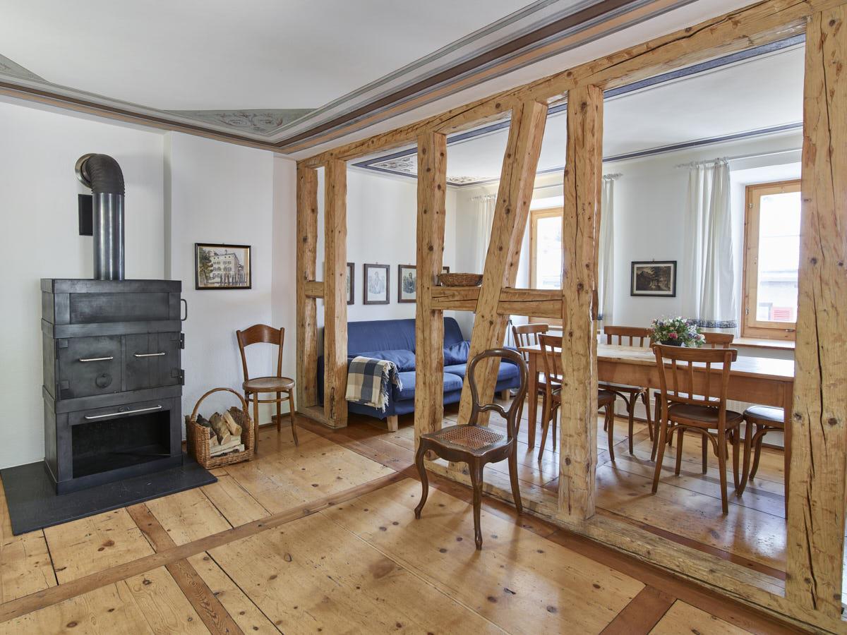 5 1/2 Zimmerwohnung ca. 130 m2 im 2. Stock. Maximale Belegung für 7 Personen. 3 Schlafzimmer mit Einzelbetten. 3 Betten 0.9 x 1.8m. Bettwäsche, Küchentücher und Frottéewäsche auf Wunsch vorhanden. Separate Wohn-Essküche mit Backofen, Kühlschrank, Geschirrspülmaschine und Kaffeemaschine. Bad/WC und Dusche/WC. Cheminée, Fernseher, Radio. WLAN. Haustiere auf Anfrage erlaubt. 1 Parkplatz für 1 Auto garatiert. Nichtraucherwohnung. Kinderbett (mietbar). Zur Mitbenutzung: Skiraum.
