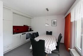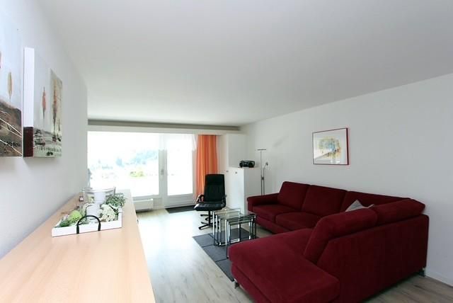 3 1/2-Zimmerwohnung in Mehrfamilienhaus. 1 Schlafzimmer mit 1 Doppelbett. 1 Schlafzimmer mit 2 Kajütenbetten, insgesammt 6 Betten. Kinderbett auf Anfrage. Bettwäsche, Frotteewäsche und Küchentücher vorhanden. Küche im Wohnzimmer integriert mit Backofen, Kühlschrank, Geschirrspülmaschine und Kaffeemaschine. Dusche in Badewanne integriert und WC. Haustiere nicht erlaubt. Nichtraucherwohnung. TV. WLAN. Balkon. Parkplatz. Zur Mitbenutzung: Skiraum, Waschmaschine und Tumbler. Das Benutzen der Bettwäsche ist Pflicht.