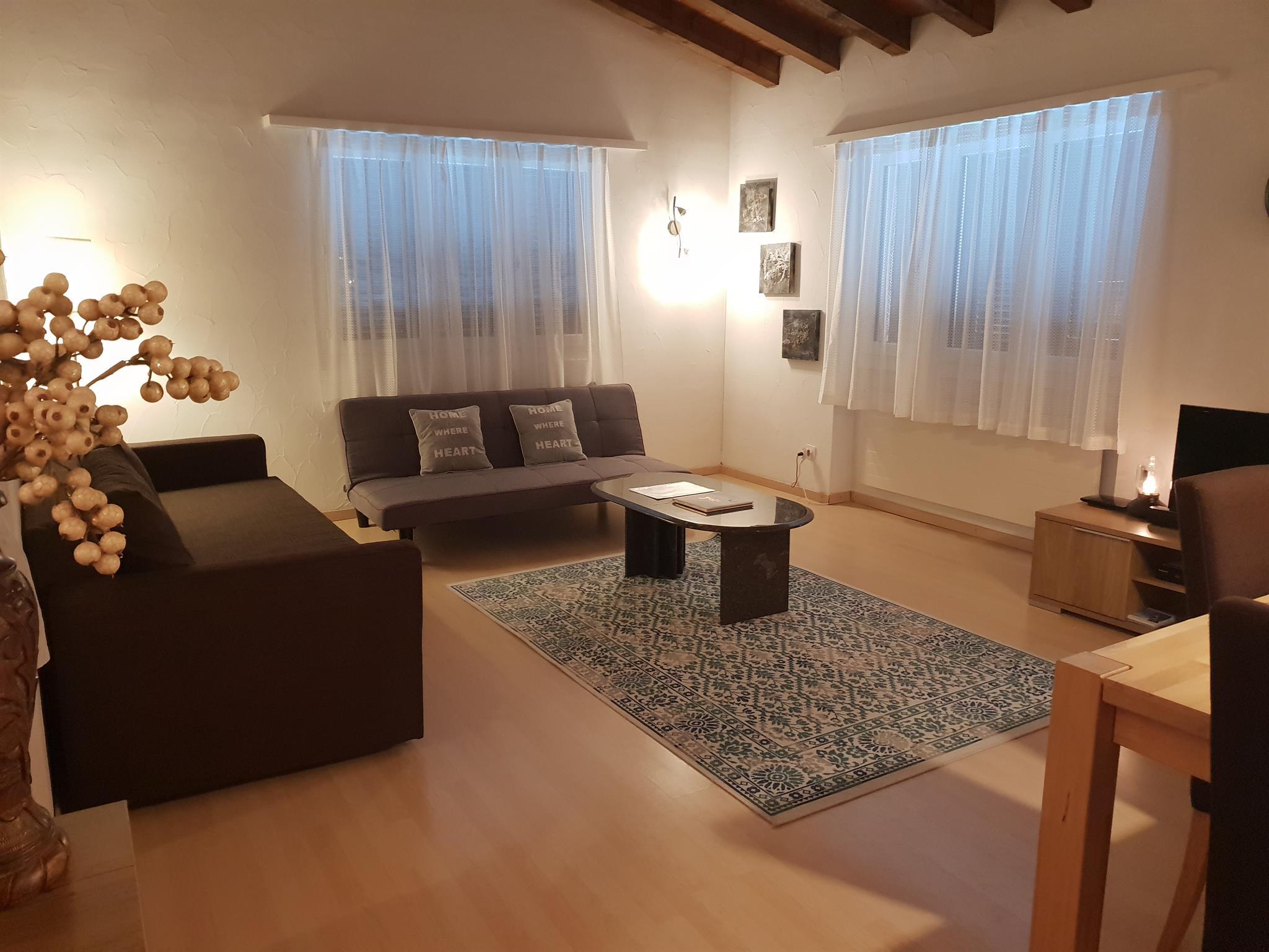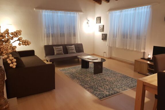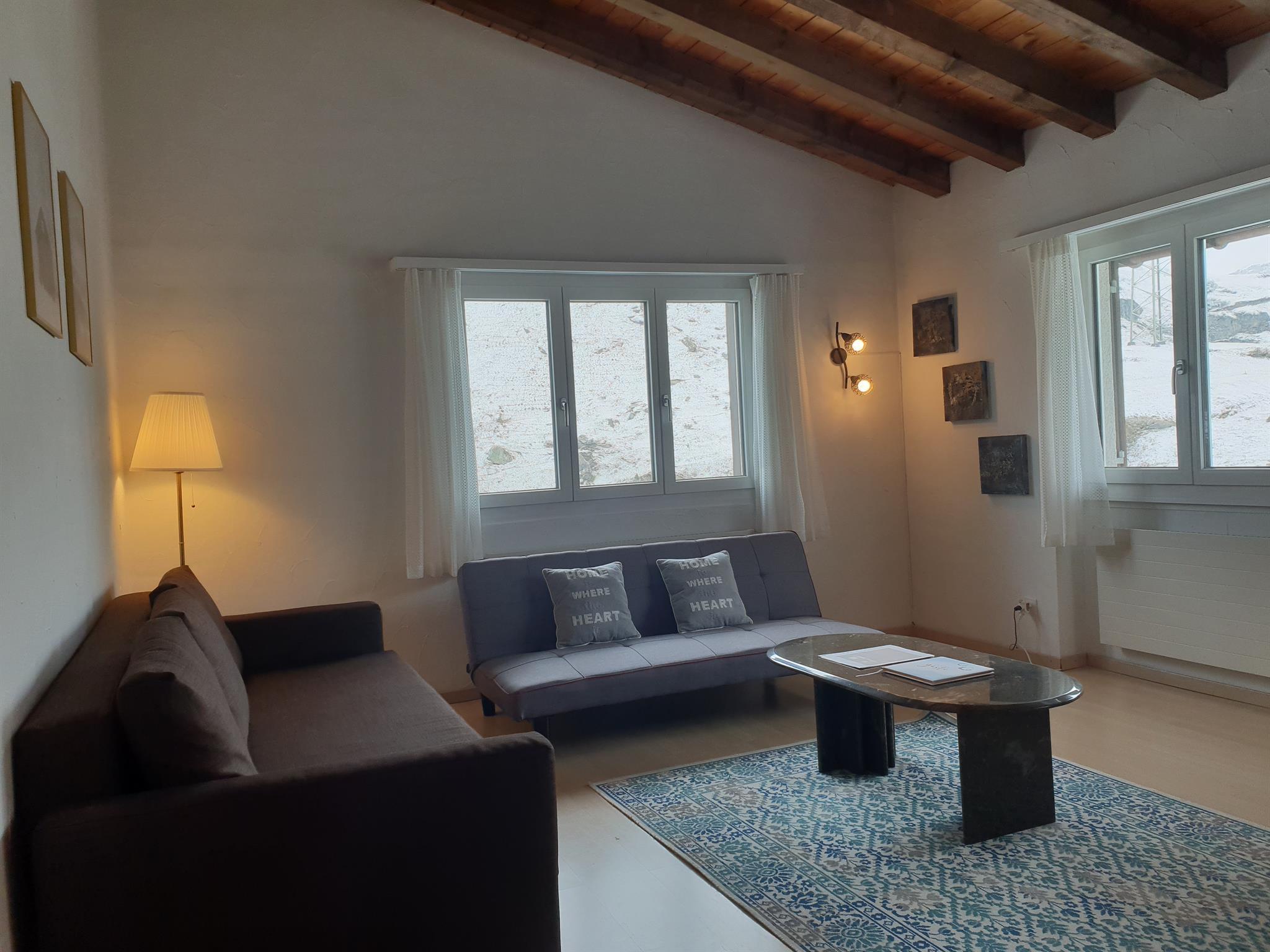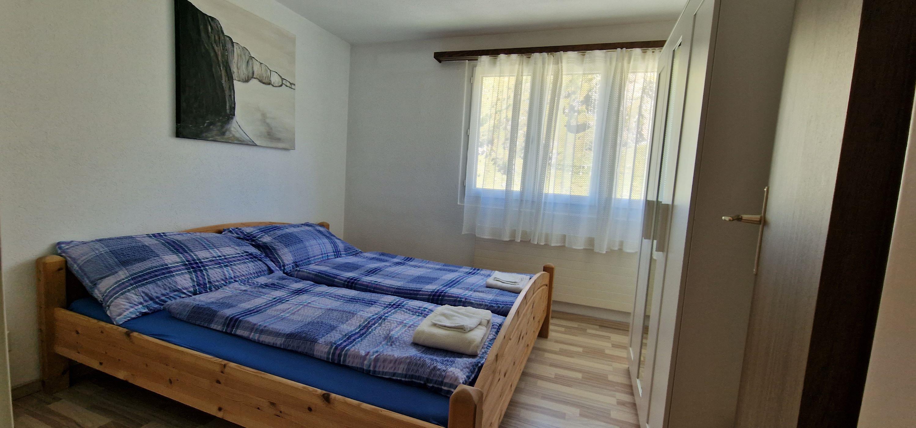 2 1/2 Zimmerwohnung im 3. Stock, 55 m2, Wohnzimmer: 1 Schlafcouch, Schlafzimmer: 1 Doppelbett, Küche: Backofen, Kühlschrank, Geschirrspülmaschine, Kaffeemaschine (Nespresso), Mikrowelle, Toaster, Wasserkocher und Wasserfilter, Raclette ofen, Fondue Set. W-Lan, Fehrnseher (über Internet), Netflix, DVD-Player, Radio. Bad/Dusche und WC in einem Raum. Nichtraucherwohnung, Waschmaschine im Nebenhaus (gegen Gebühr). Haustiere nicht erlaubt. Mitbenützung: Skiraum. Parkplatz vor dem Haus (nur im Sommer) Parkplatz im Dorf (im Winter, gebührenpflichtig).
