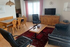 Sehr zentral gelegene 3 1/2 Zimmerwohnung ca. 75 m2 im 2. Stock in Mehrfamilienhaus. 1 Zimmer mit 1 Doppelbett. 1 Zimmer mit 2 Einzelbetten und 1 Kajütenbett , insgesamt 6 Betten. Bettwäsche, Küchen- und Badetücher vorhanden. Wohnküche mit Backofen, Kühlschrank, Geschirrspülmaschine und Kaffeemaschine (Nespresso). Raclette und Fonduecaquelon. Bad und WC. Nichtraucherwohnung. TV und Radio. Balkon. Parkplatz Nr. 9 in Tiefgarage und aussen Abstellplatz. Skiraum. Haustiere erlaubt.