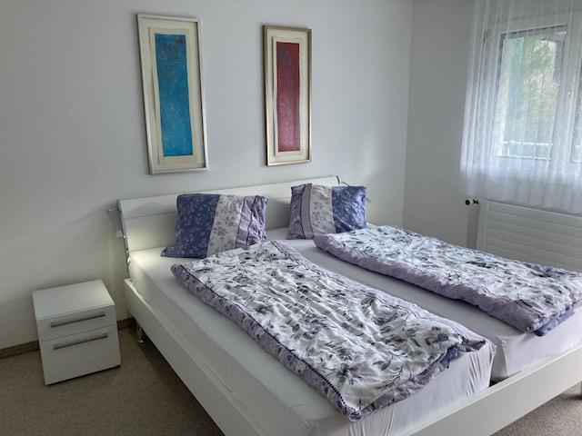 4 1/2 Zimmerwohnung ca. 90 m2 in Mehrfamilienhaus im 2. Stock. 3 Schlafzimmer mit 3 Doppelbetten, insgesamt 6 Betten. Separate Küche mit Backofen, Kühlschrank, Geschirrspüler, Mikrowelle und Kaffeemaschine. Dusche/WC und separates WC. Haustiere nicht erlaubt. Nichtraucherwohnung. TV und Radio. Cheminée. Balkon. Lift. Parkplatz. Garage auf Anfrage. Zur Mitbenutzung: Garten, Kinderspielplatz und Skiraum. WLAN in der Wohnung.