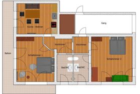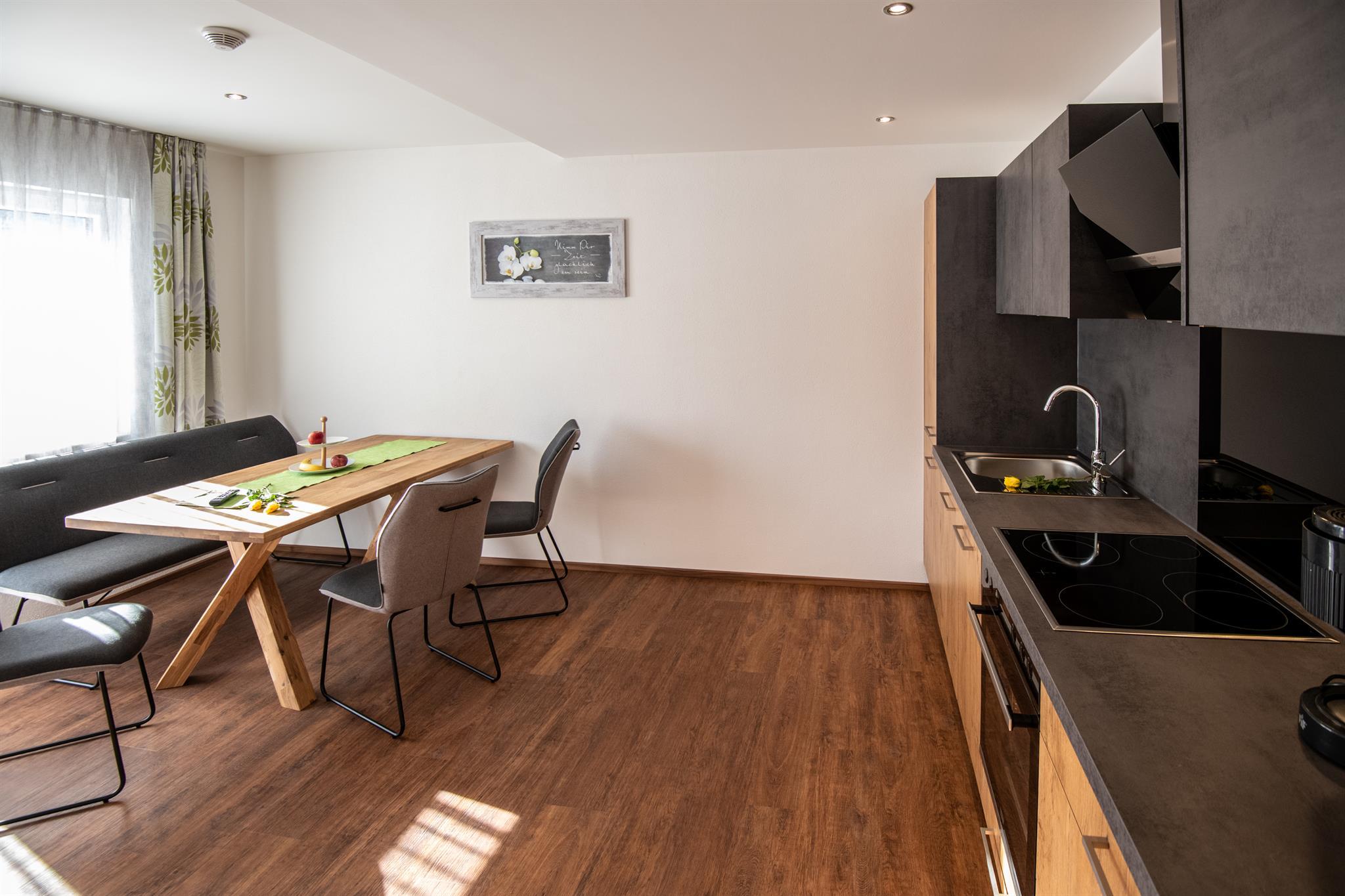 Das großzügige Appartement mit fast 80 m² bietet ausreichend Platz für bis zu 5 Personen es kann auch noch ein extriges Doppelzimmer dazu gebucht werden. Es verfügt 2 Schlafzimmer mit Doppelbett, 1 gemütlichen Wohnraum (mit Ausziehcouch), 1 voll ausgestattete Wohnküche mit Backofen, Herd, Wasserkocher, Toaster sowie Tee- und Kaffeezubereitungsmöglichkeit, 2 großzügige Badezimmer mit Dusche/WC und 1 Vorraum.