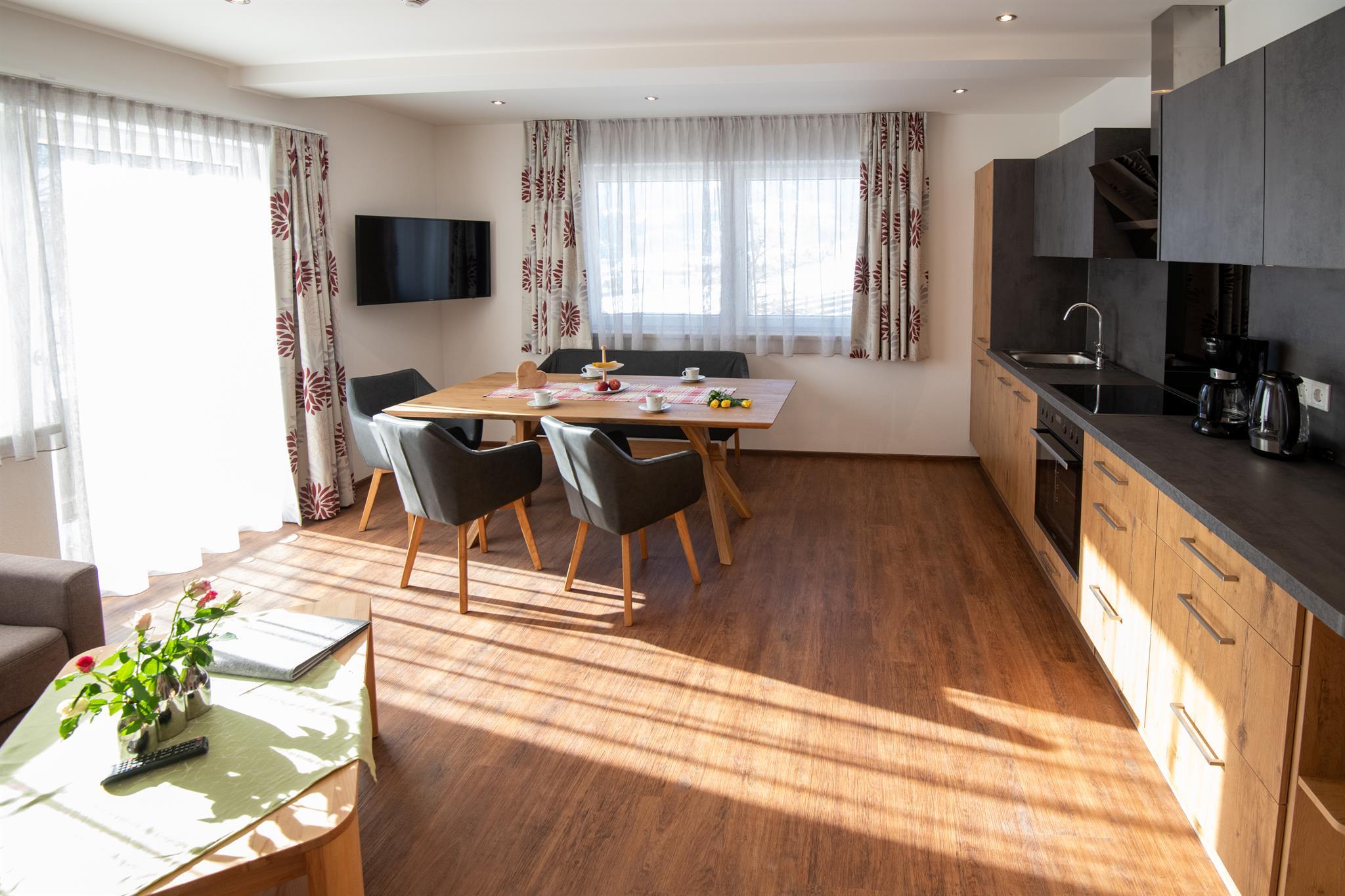 Das Appartement überzeugt mit seiner traumhaften Aussicht sowie Balkon mit Sitzgelegenheit. Jede Wohnung verfügt über ein eigenes überdachtes Carport, Skiraum und Skischuhtrockner.