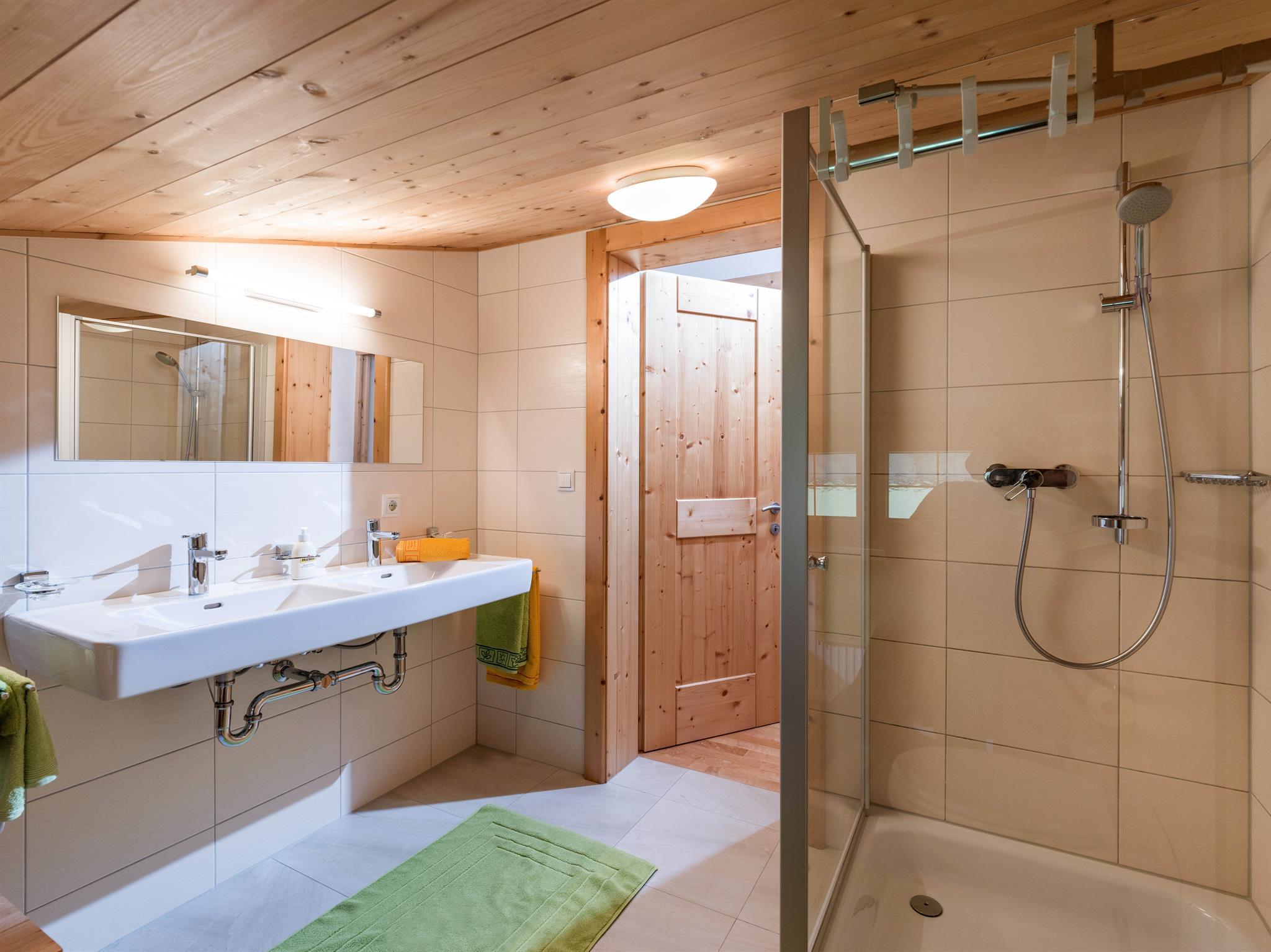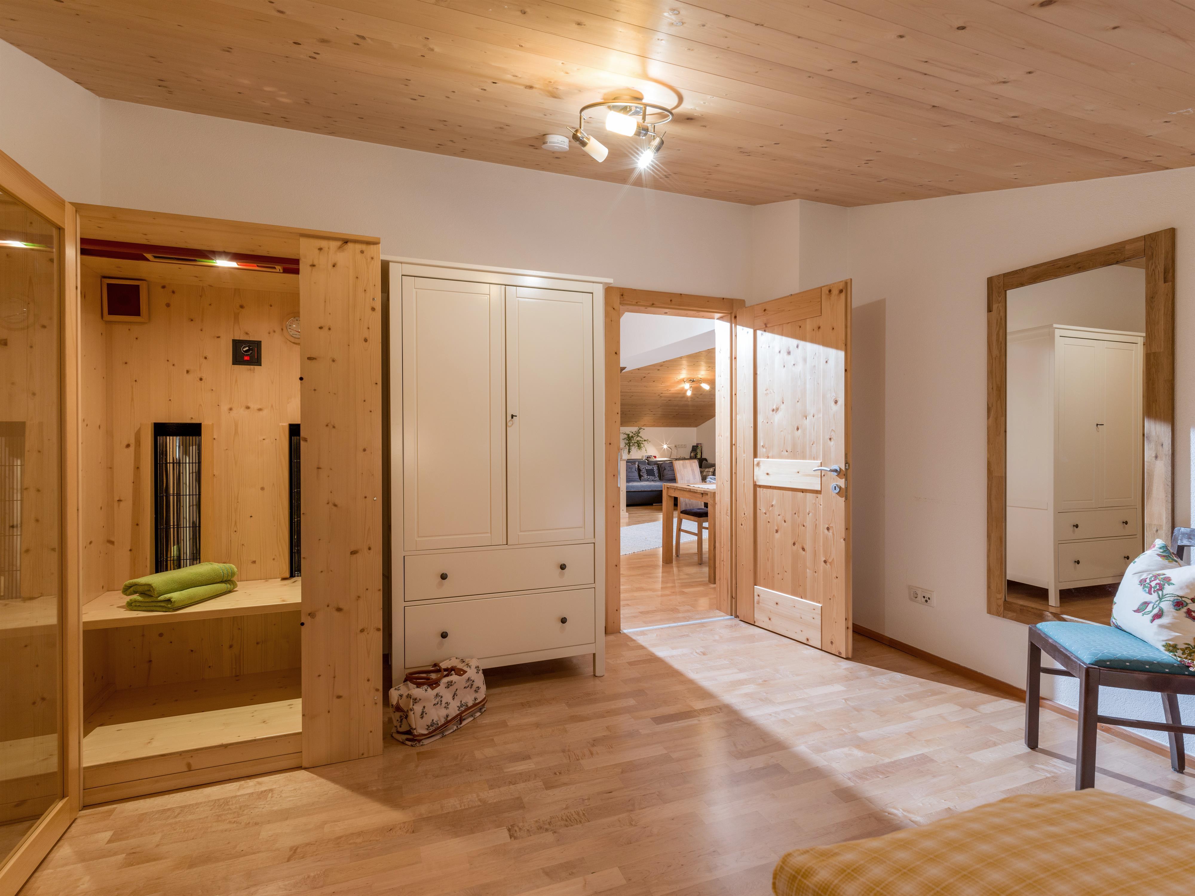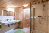 Großes Wohnzimmer ca. 35m² mit Esstisch für 6 Personen, großzügige Liege mit Sat-TV, gut ausgestattetes Bücherregal, Küchenblock mit Elektroherd, Backrohr, Dunstabsaugung (komplett ausgestattet); eigener Raum mit Spüle, Geschirrspüler, Kühlschrank, Lager; Bad und WC durch Diele vom Wohnzimmer getrennt; ein Schlafzimmer mit 20m² (Doppelbett); ein Schlafzimmer mit 25m² (Doppelbett + Sofa + Infrarotkabine); Bettwäsche und Handtücher; großer Balkon; genügend Parkplatz (wenn gewünscht auch überdacht); Einstellmöglichkeit für Ski, Räder, Rodel usw.