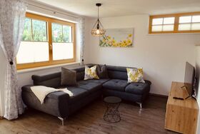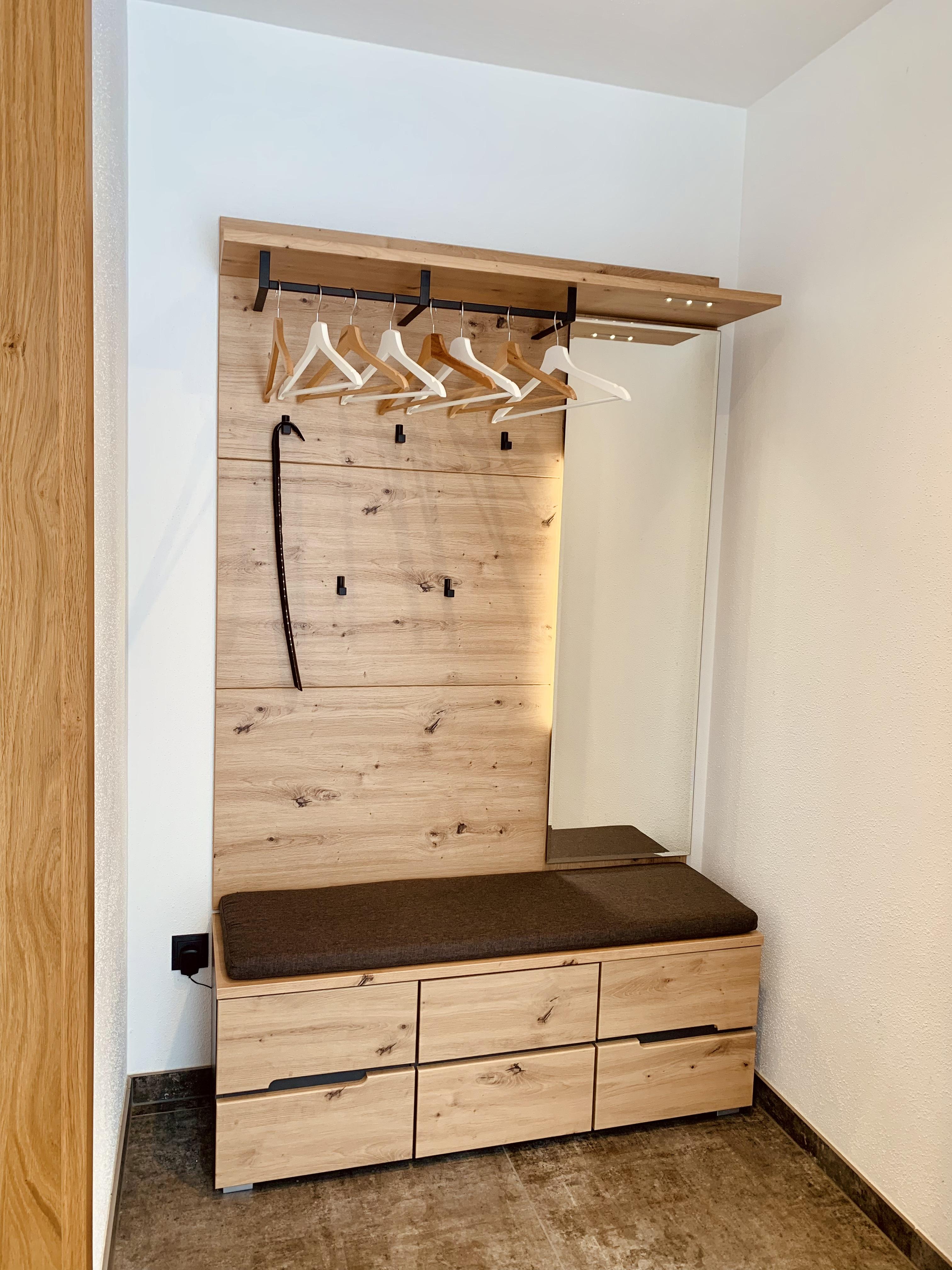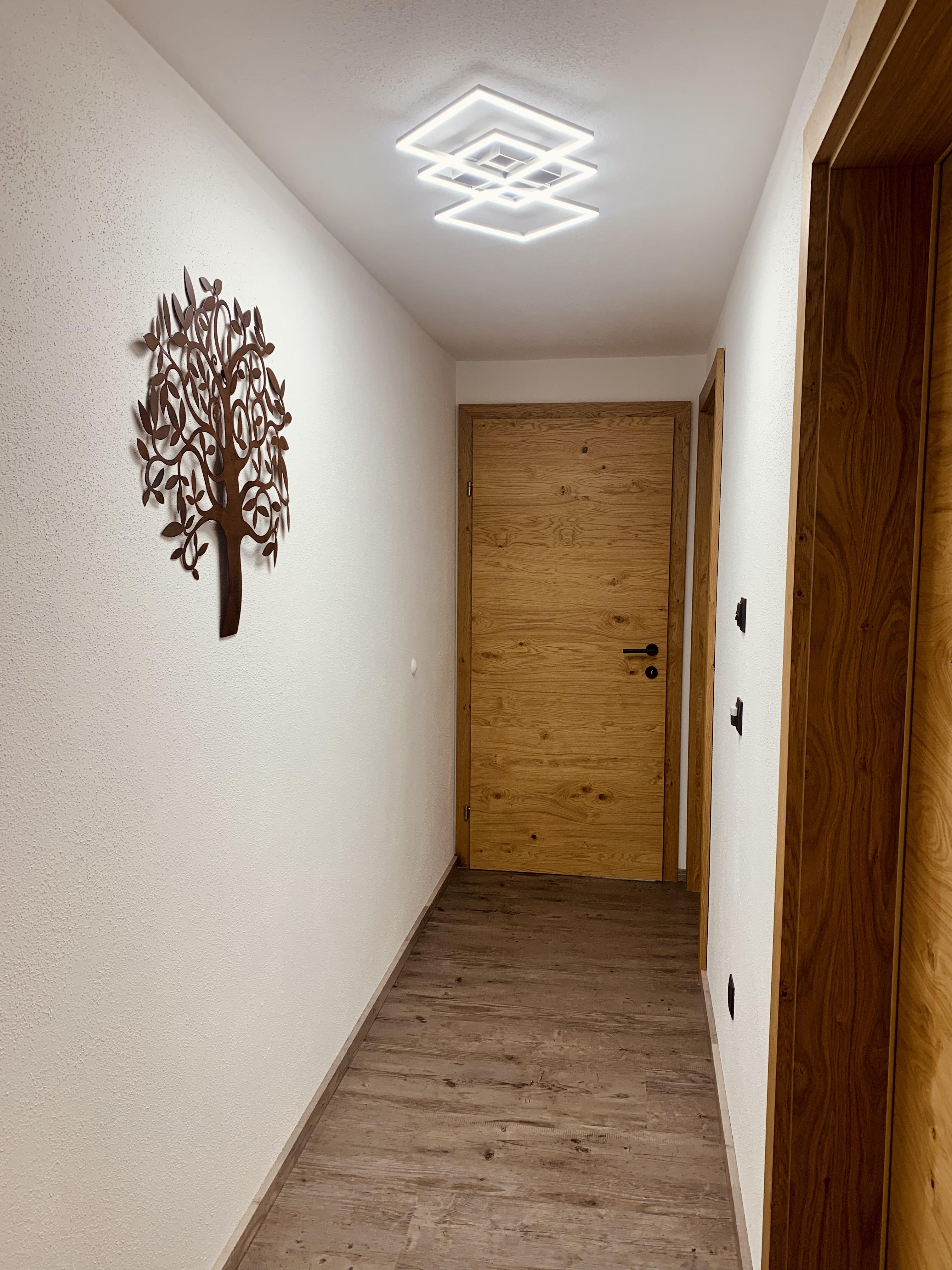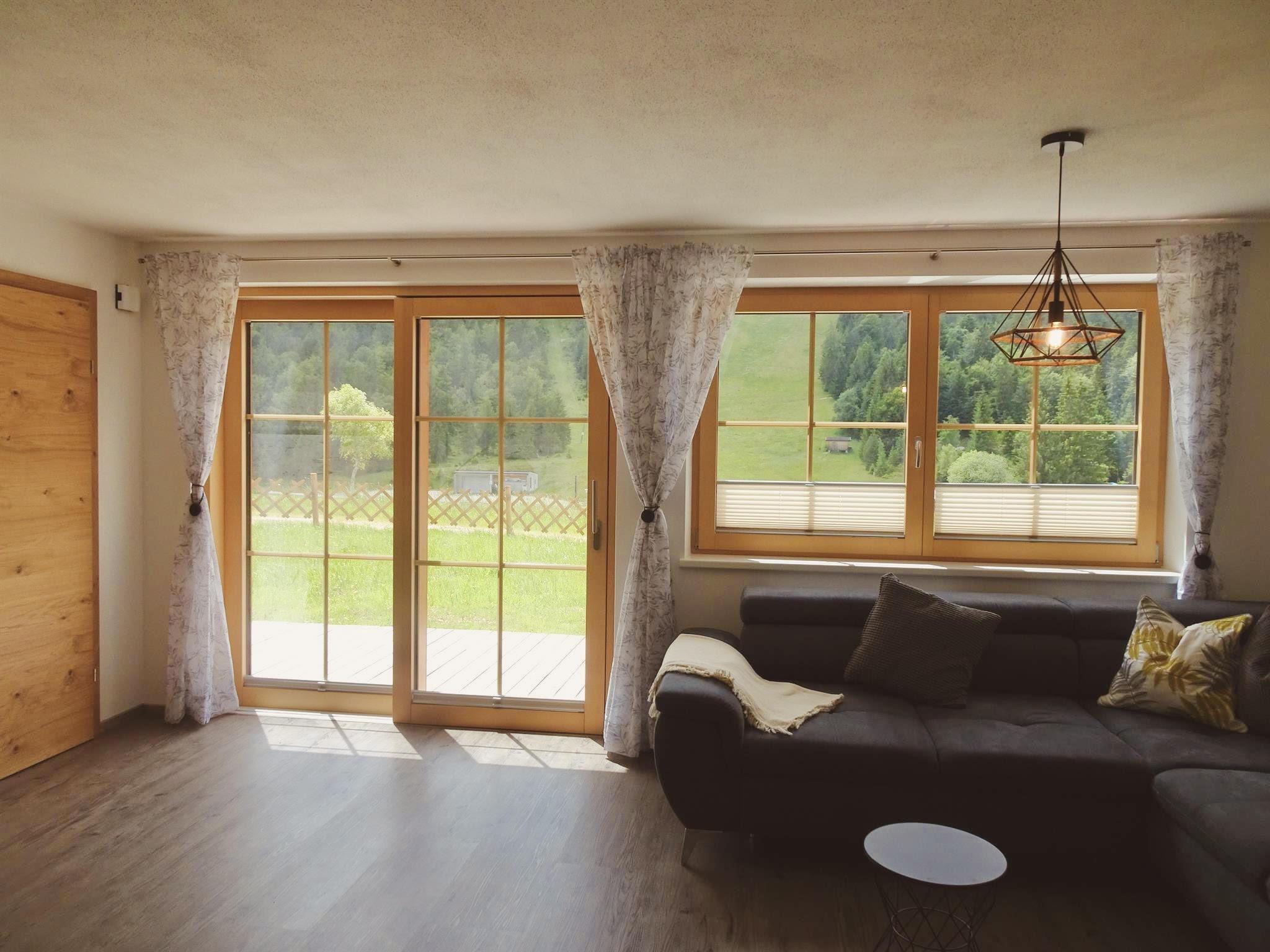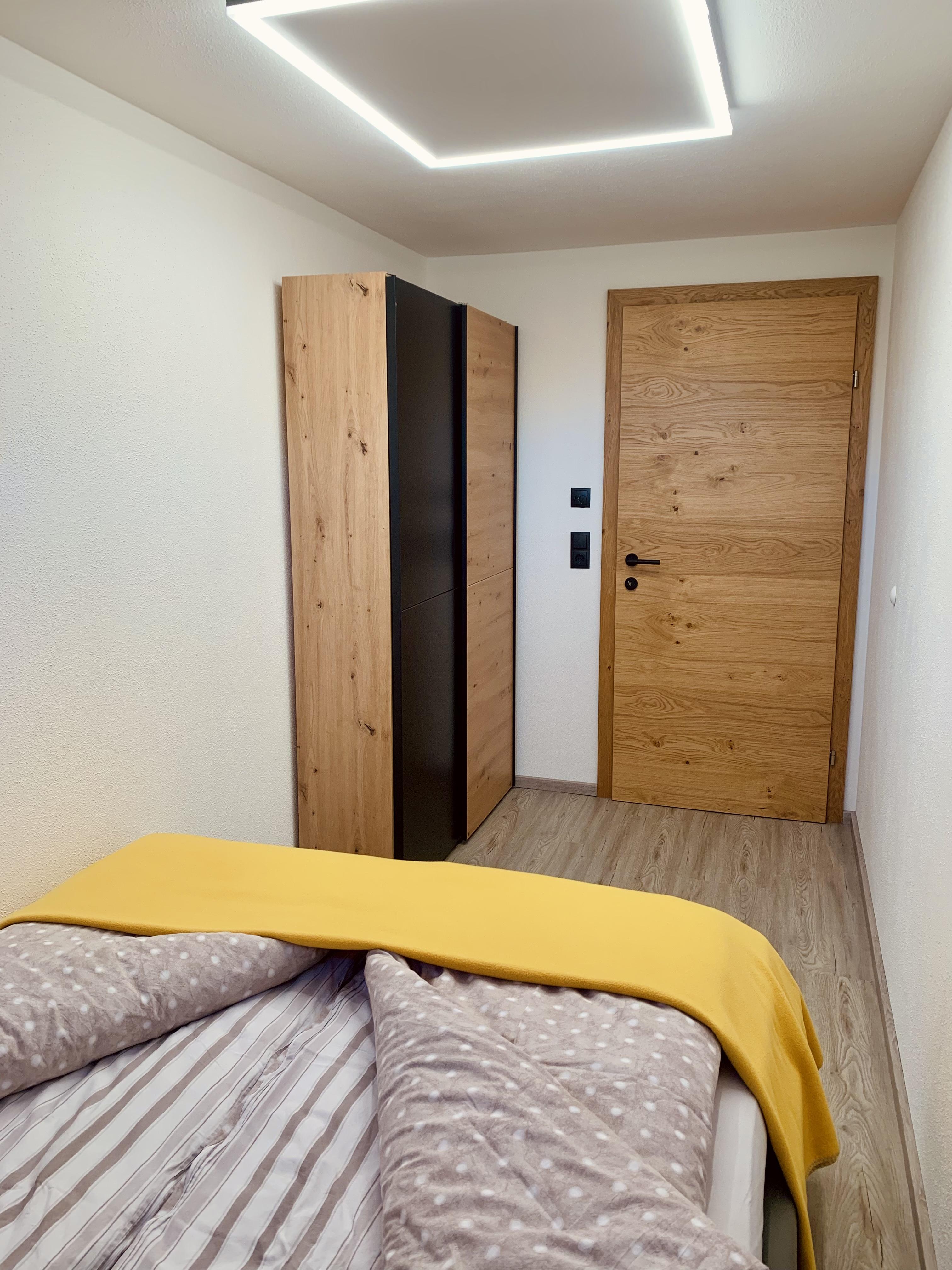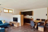 Das moderne und freundliche Apartment bietet auf 70m² Platz für bis zu 6 Personen. Die Sonnenterrasse verfügt über Sitzgelegenheiten, einem Tisch, einem Grill sowie Liegestühle mit Decken für entspannte Tage. Im Eingangsbereich befindet sich ein Vorraum mit Garderobe. Im großen Wohnraum mit Fensterfront und Terrassentür lässt sich die Aussicht wunderbar genießen. Darin findet sich die gemütliche Doppel-Schlafcouch, eine vollausgestattete Küche und der ausziehbare Esstisch mit Eckbank. Durch die Fernsehwand ergibt sich eine perfekte Raumaufteilung. Das Wi-Fi, Spiele und diverse Bücher dürfen natürlich auch nicht fehlen. Durch den Flur gelangt man zu den zwei seperaten Schlafzimmern welche für jeweils 2 Personen ausgestattet sind (Doppelbett und Französisches Bett), sowie zum Badezimmer mit Dusche und WC. Es gibt auch eine Einstellmöglichkeit für Fahrräder und Ski/Snowboards.