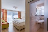 Das Doppelzimmer Comfort ist ausgestattet mit DU/WC, Balkon, Sat-TV sowie kostenlosem WLAN .