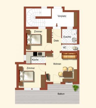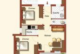 Die Wohnung besteht aus einem großen Wohnraum mit Sitzecke und Doppelcouch (Schlafcouch), 2 Schlafzimmern mit Doppelbett, Kleiderschrank und Garderobe. Die Küche ist eingerichtet mit E-Herd, Dunstabzug, Kühlschrank, komplettes Geschirr, Microwelle, Kaffeemaschine und Wasserkocher. Badezimmer mit Dusche, getrenntes WC und Vorraum.