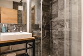 Cabin Typ Seeberg ist für zwei bis vier Personen geeignet. Das 60m² große Appartement bietet zwei getrennte Schlafzimmer, davon ist eines mit einem Designer-Etagenbett eingerichtet. Es gibt zwei Bäder, ein separates WC sowie einen Balkon.