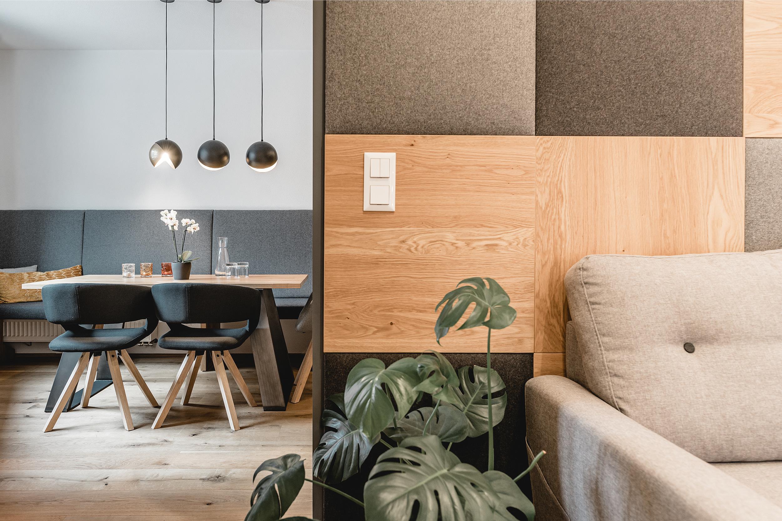 Beim Designkonzept der Apartments lag besonderes Augenmerk auf Gemütlichkeit und Wohnkomfort. Warme Farbtöne und natürliche Materialien verleihen dem Cabin8 das moderne und alpine Flair. Wir freuen uns Sie bei uns begrüßen zu dürfen!