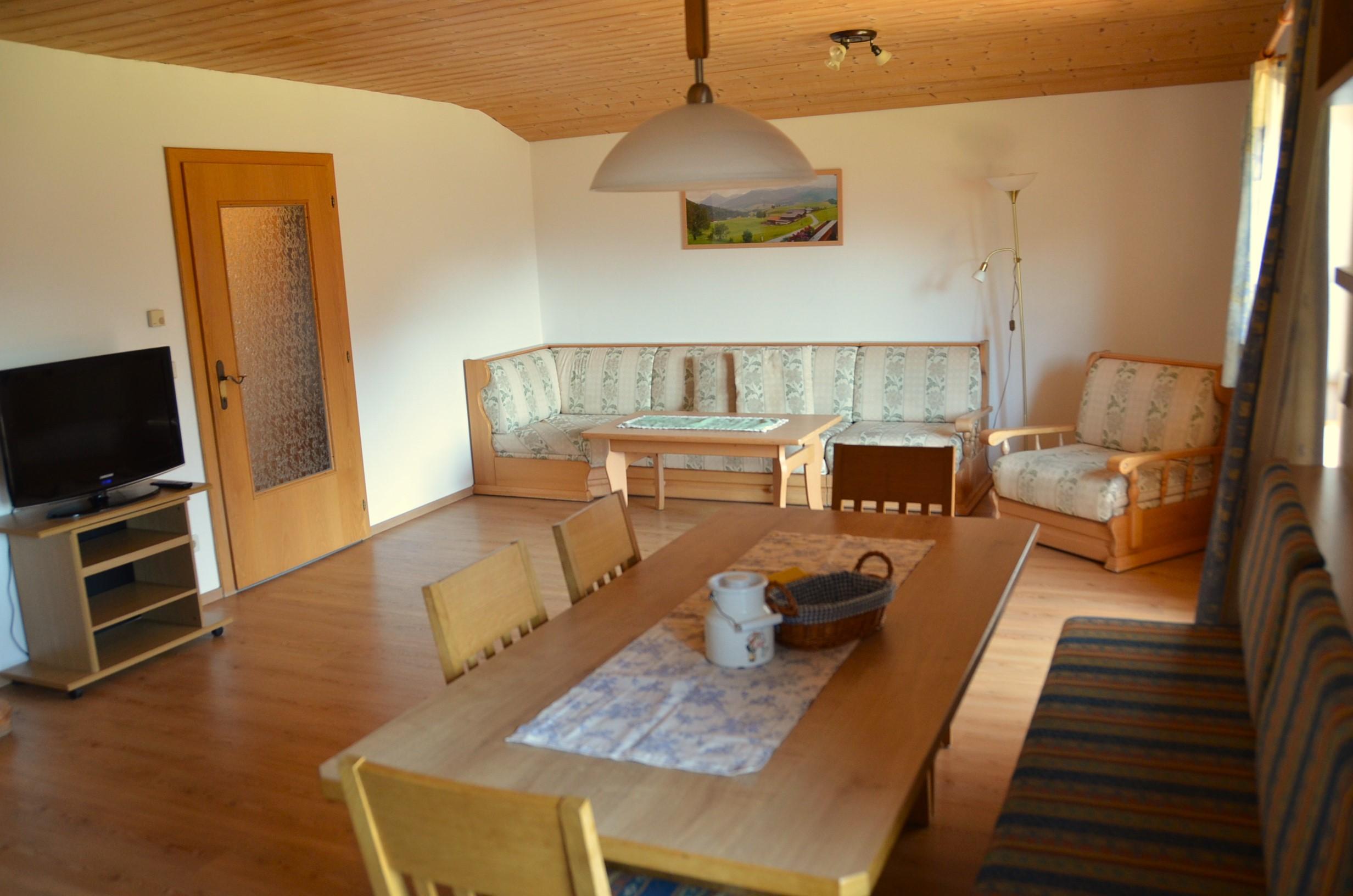 Unser Appartement Enzian besteht aus 2 Schlafzimmer, Wohnküche mit ausziehbarer Doppelcouch, Bad / WC getrennt, einem kleinen Vorraum und Balkon. Für 2–6 Personen. Es ist sehr gemütlich eingerichtet und liegt in ruhiger, sonniger Lage mit herrlichem Bergpanorama am Waldesrand. Zum Ortszentrum sind es nur 2,5 km.