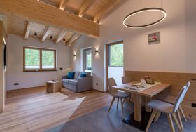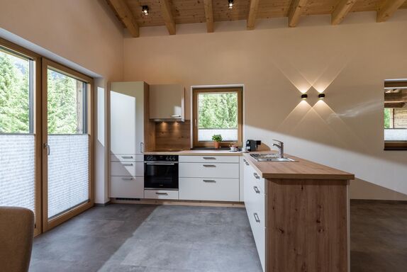 Das Appartement Guffert kombiniert modernes und geschmackvolles Wohnen mit Gemütlichkeit. Die Einrichtung aus hochwertigen Naturmaterialien verleiht diesem Appartement für zwei bis vier Personen ein besonderes Flair. Der lichtdurchflutete Wohnraum mit direktem Blick auf das Rofangebirge und der großzügige Balkon laden zum Entspannen und Verweilen ein. Zum Appartement gehört ein separates Schlafzimmer mit einem komfortablen Boxspring-Doppelbett, eine vollausgestattete Wohnküche mit einer Doppel-Schlafcouch sowie ein Badezimmer. Hier fühlen sich Paare oder Familien mit kleineren Kindern besonders wohl.