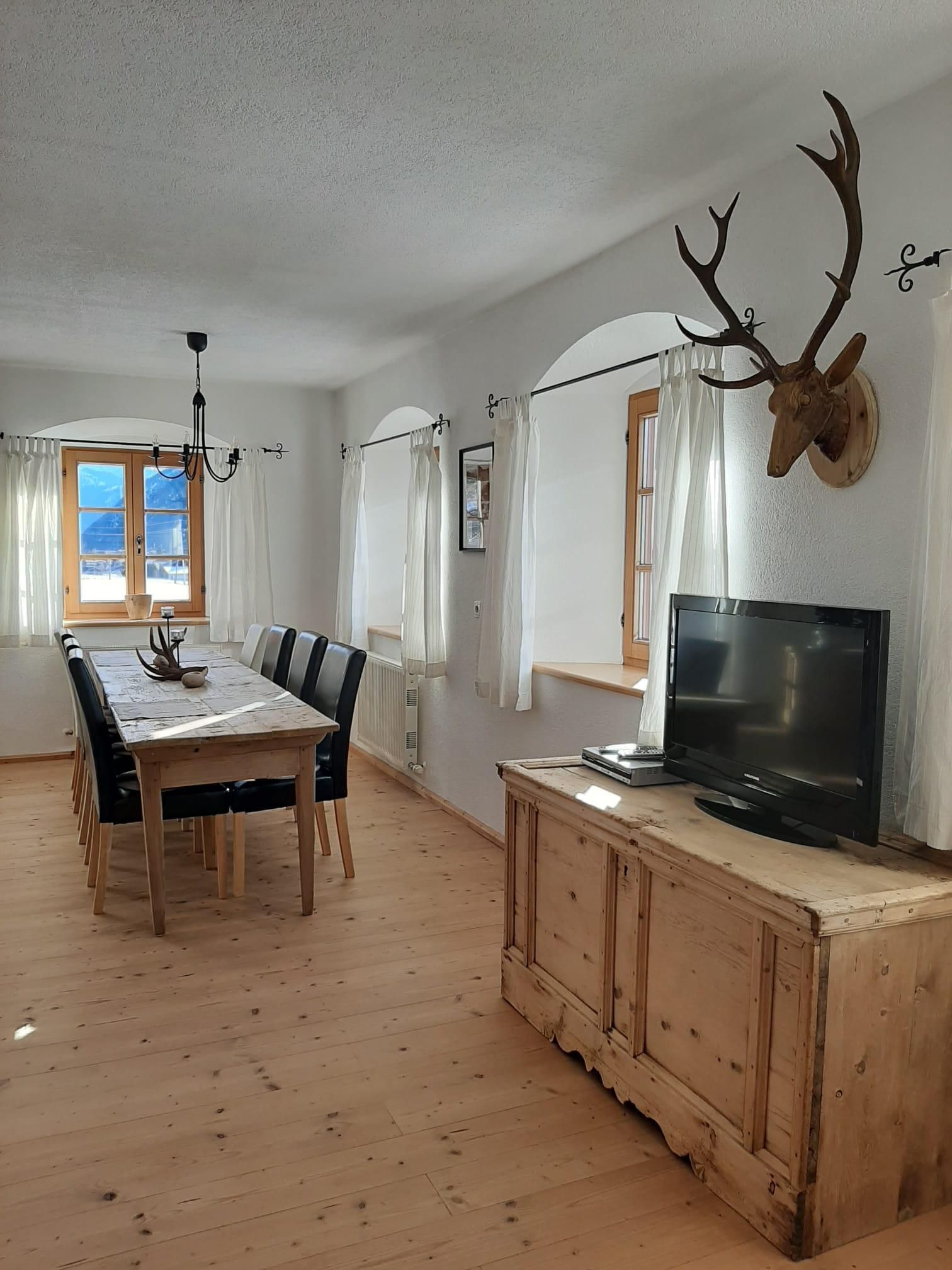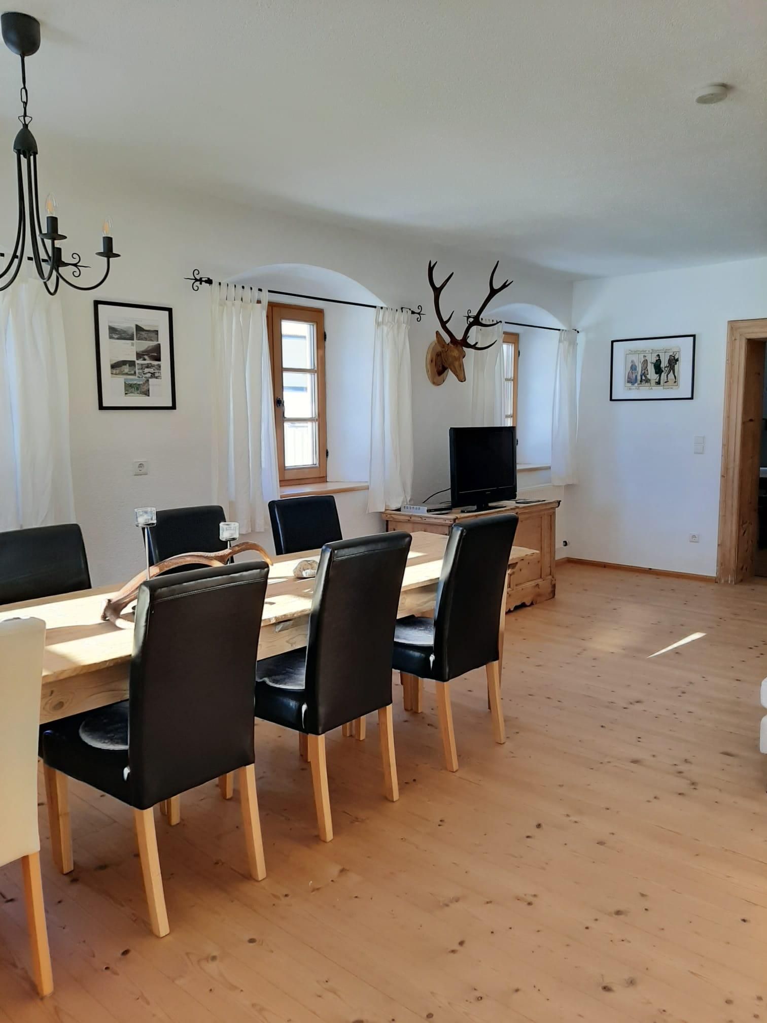 Die Ferienwohnung ist im rustikalen, altbäuerlichen Stil eingerichtet und verfügt über einen herrlichen Ausblick auf die Wiesen und Berge von Achenkirch. In der Wohnung befinden sich ein großes und ein kleines Schlafzimmer, ein Bad, ein weiträumiges Wohnzimmer mit Balkon sowie eine voll ausgestattete Küche mit Essbereich. In der unmittelbaren Umgebung können Sie sich bei verschiedenen Aktivitäten wie zum Beispiel Skifahren, Rodeln oder Snowkiten im Winter bzw. Wandern, Golfen, Segeln oder Surfen im Sommer am Achensee vergnügen. Durch die zentrale Lage des Pulvererhofes ist das nächste Lebenmittelgeschäft, Skilift, der Arzt mit Apotheke, Restaurants und Cafes, Spielplätze, Regiobushaltestelle, Dampferstation sowie der Achensee in wenigen Minuten auch zu Fuß erreichbar. Durch unsere Hühner und Hähne in Weidehaltung kann es vorkommen, dass Sie durch das Krähen unserer Goggl bereits am Morgen liebevoll begrüßt werden.