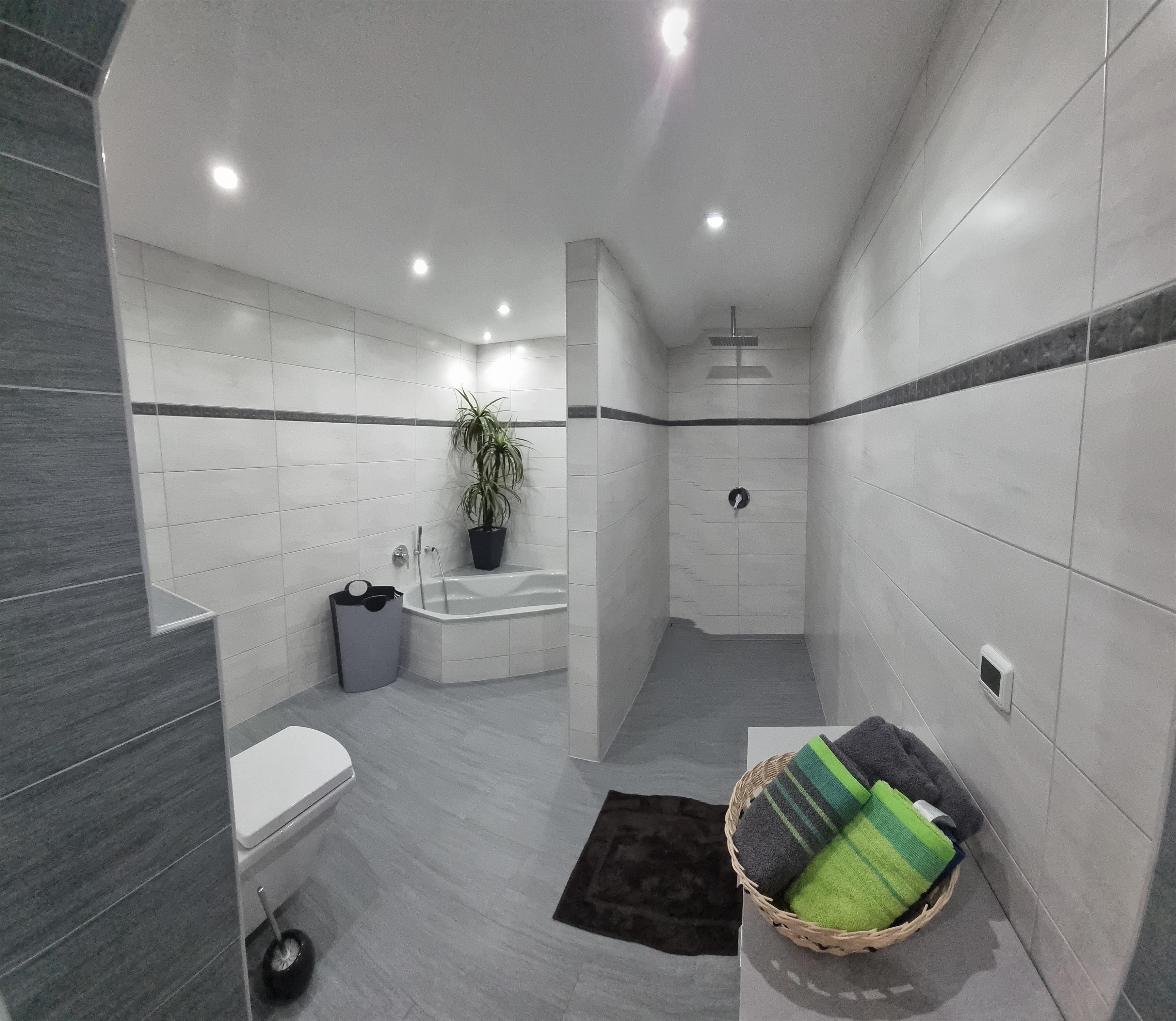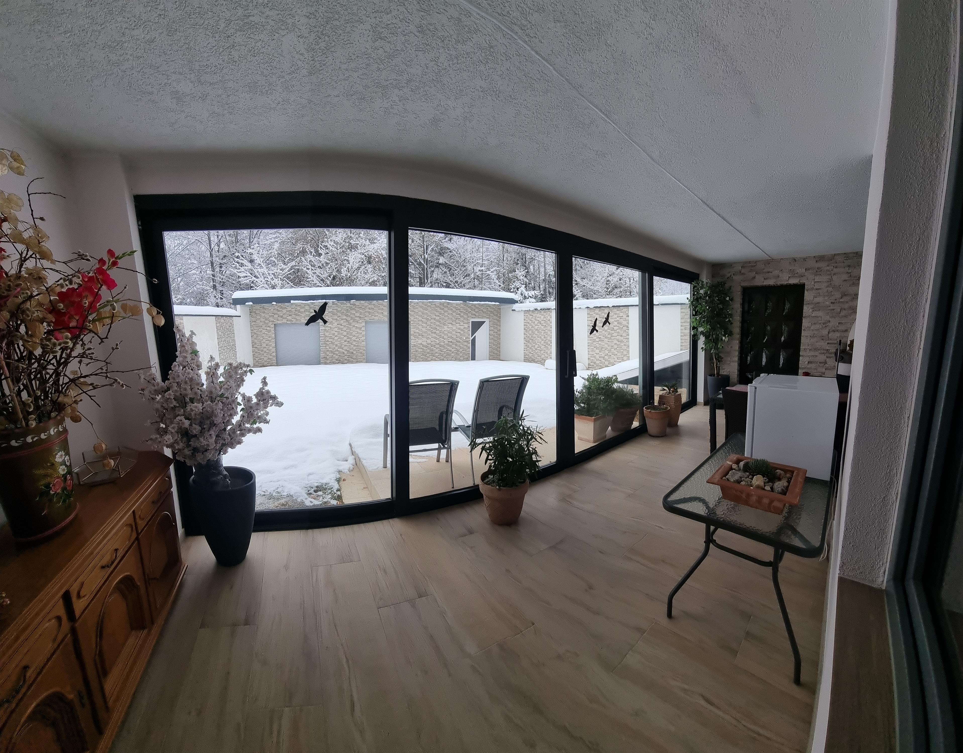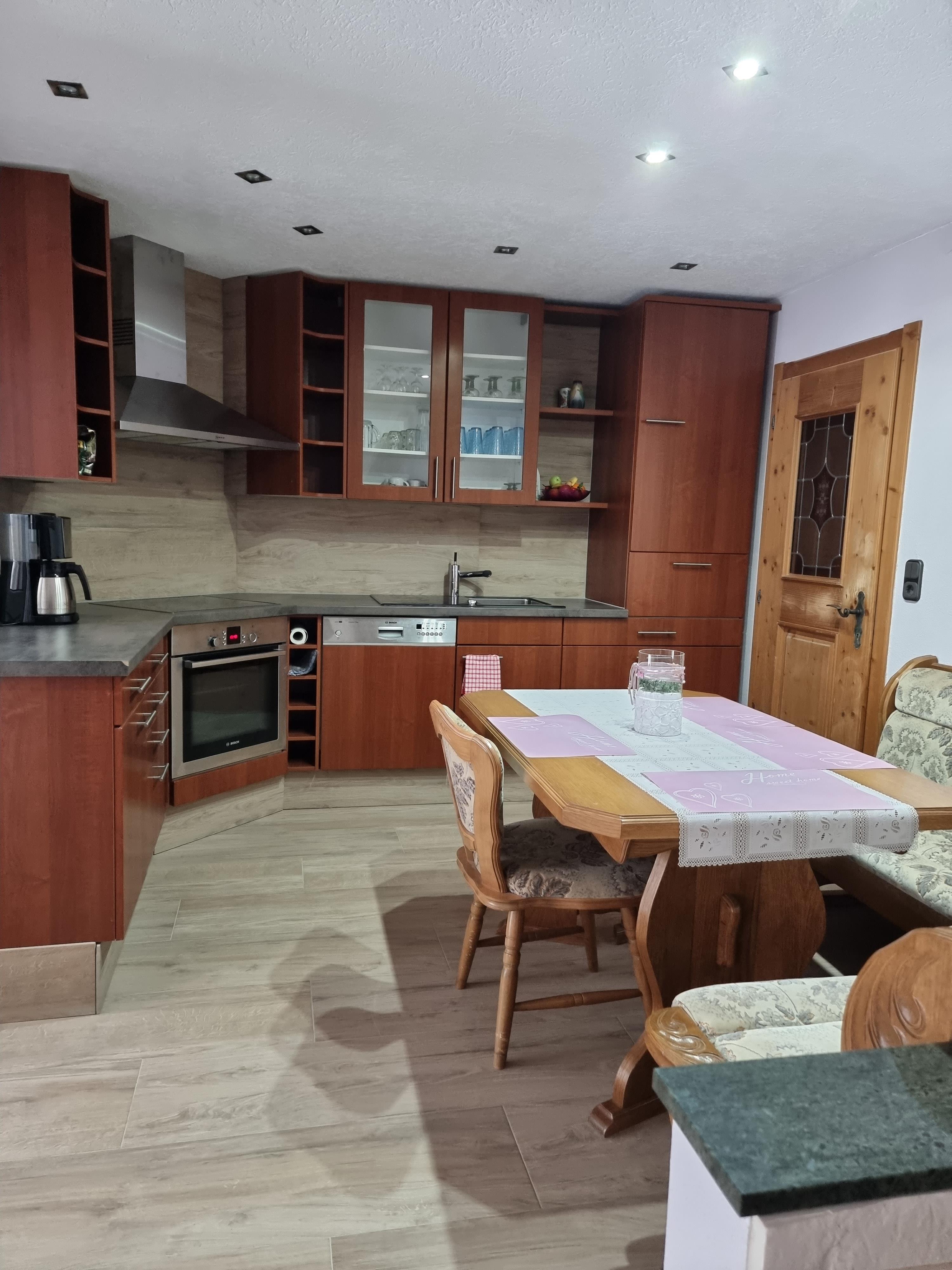 Die Fehrienwohnung umfasst 2 Schlafzimmer und ein Wohnzimmer. Eine gemütliche Wohnküche mit Essecke. Ein großes Bad mit einer Eckbadewanne sowie eine ebenerdige Dusche mit einer Regendusche, WC und ein Urinalbecken und ein großes Waschbecken mit Unterschrank und Spieglschrank. Im Gang befindet sich eine Garderobe. Ein weiteres Highlight ist der Wintergarten der von der Küche aus zu begehen ist, er beinhaltet eine Tischgarnitur sowie einen offenen Kamin. Im weiteren ist ein ruhiger Garten mit Berg und Waldblick vorhanden.