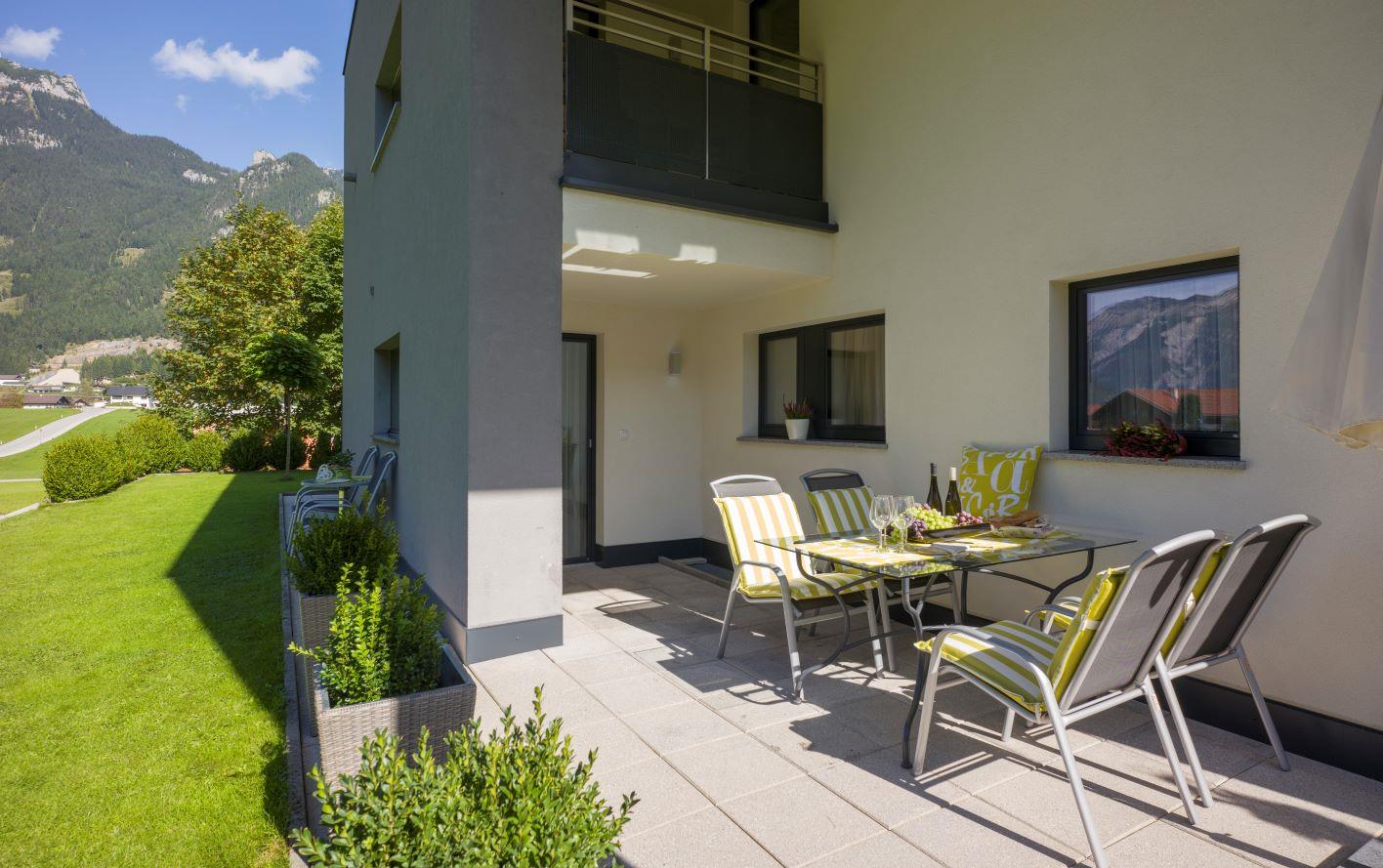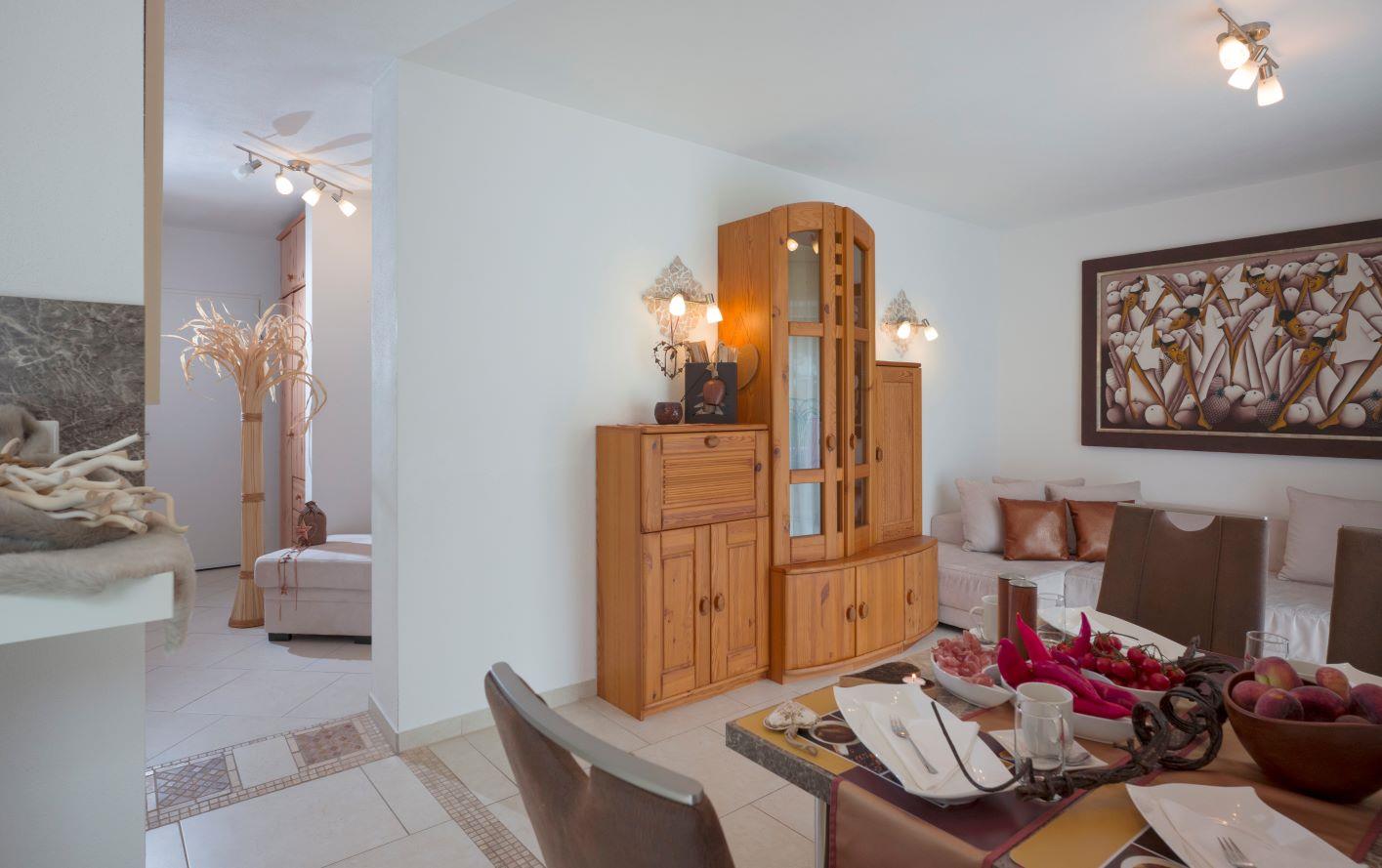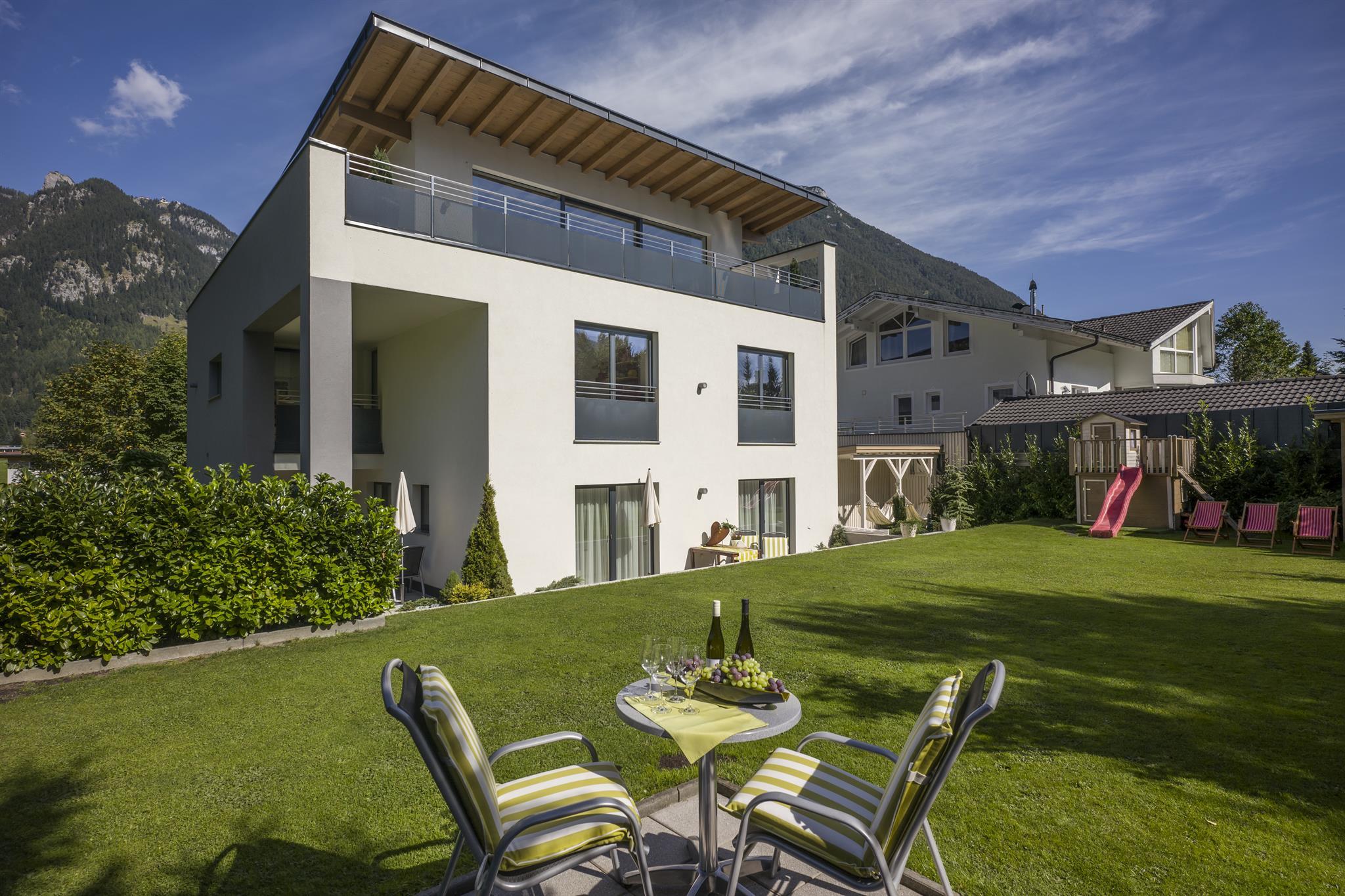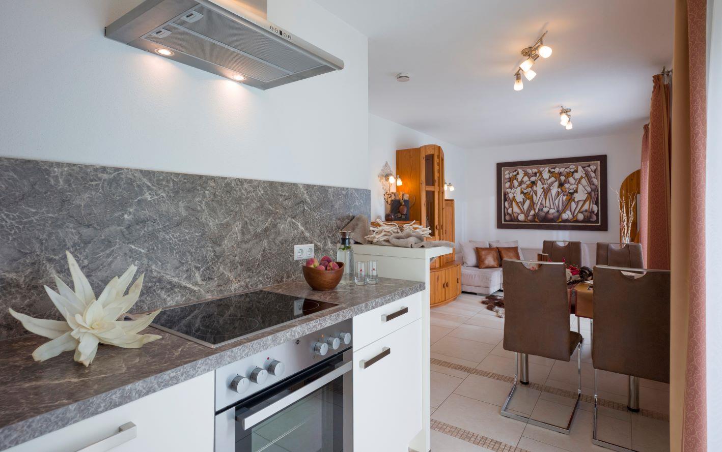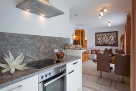 Die Ferienwohnung Stanser Joch ist ein wahrer Wohlfühlort. Hell, freundlich eingerichtet und stets behaglich warm. Die Küche bietet jeglichen Komfort, den man im Urlaub benötigt. Ein Ledersofa im Wohnbereich und hochwertige Schlafmöbel der Firma Hülsta lassen in Optik und Ausstattung keine Wünsche offen. Bodentiefe Fenster im Wohn- Essbereich verbinden diesen mit der südlich gelegenen Sonnenterrasse. Direkt davor liegt der gepflegte Garten und angrenzend ein idyllischer, kleiner Wald. Zu jeder Jahreszeit etwas Besonderes.