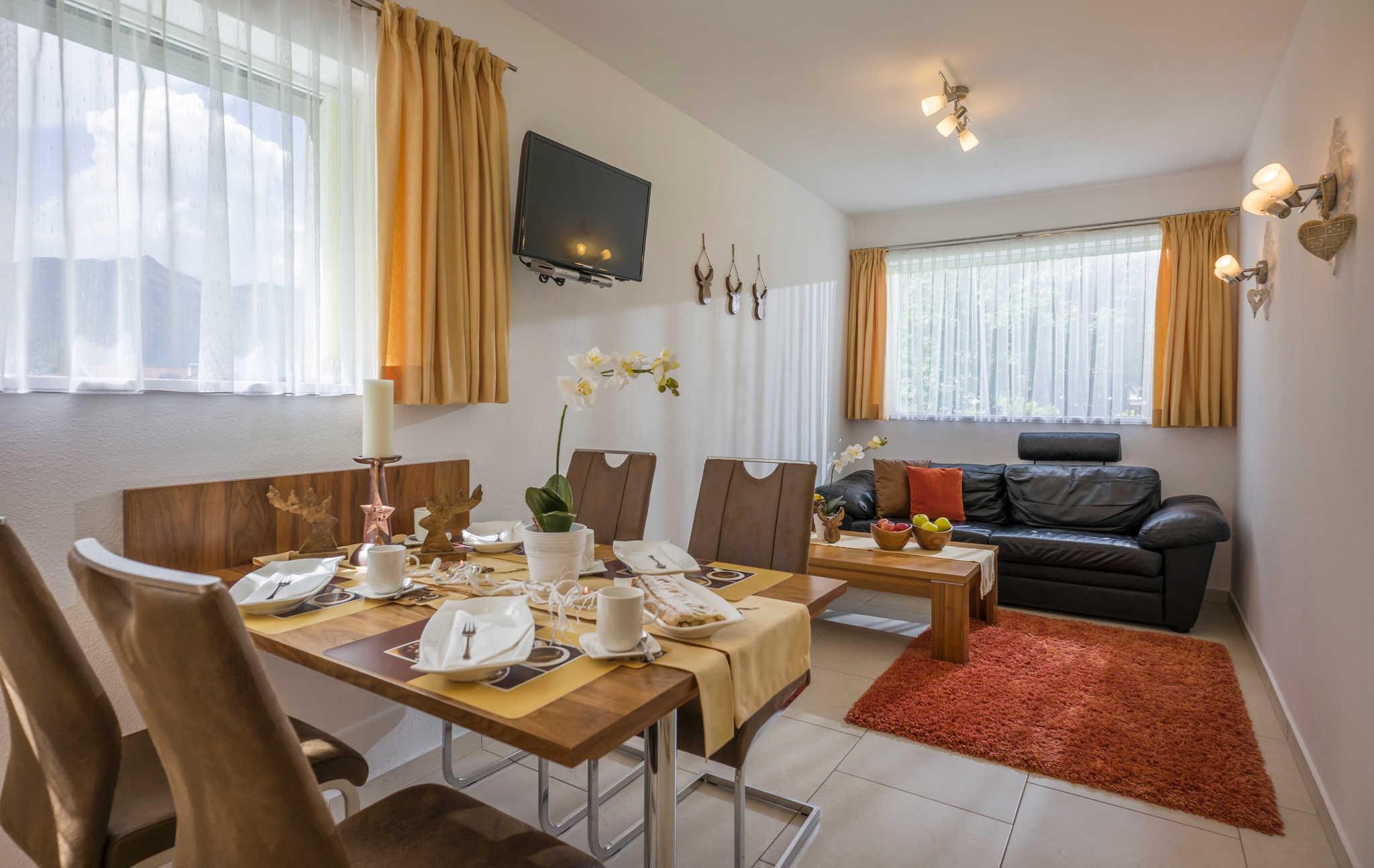 Die Ferienwohnung Ebner Joch bietet mit ihren großzügigen Verglasungen interessante Ausblicke in die umliegende Bergwelt. Die Küche bietet jeglichen Komfort, den man im Urlaub benötigt. Ein Ledersofa im Wohnbereich und wertige Massivholzmöbel der Firma Hülsta lassen in Optik und Ausstattung keine Wünsche offen. Auf der direkt zugänglichen Morgenterrasse genießen Sie Ihren Kaffee, während die ersten Sonnenstrahlen hinter dem Ebner Joch hervorblinzeln. Nach einem erlebnisreichen Tag wohnen Sie auf der privaten Westterrasse dem Sonnenuntergang hinter dem Bärenkopf bei.