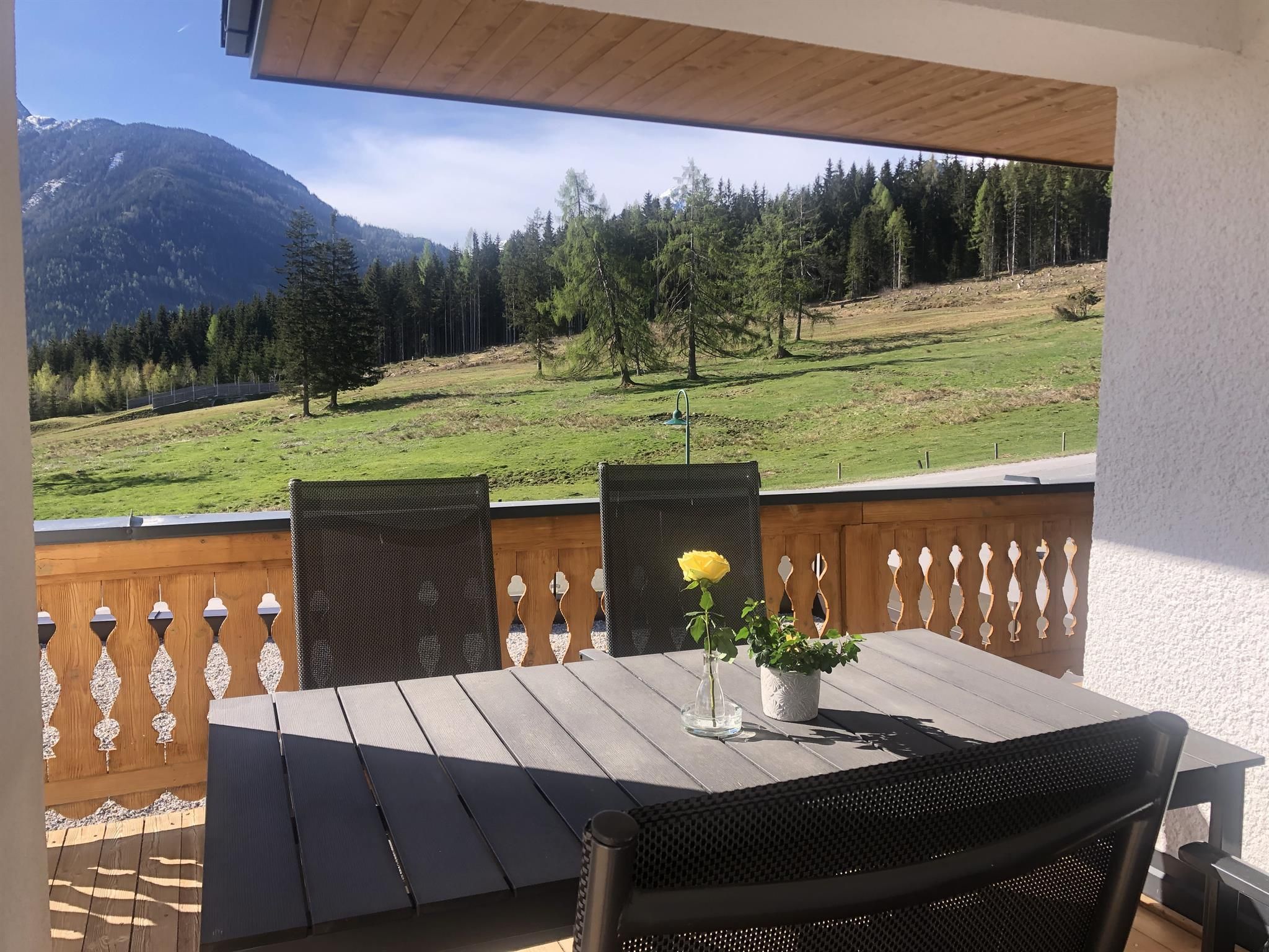 • große, überdachte Terrasse und Balkon mit Blick auf die umliegende Bergwelt und unsere Seitentäler