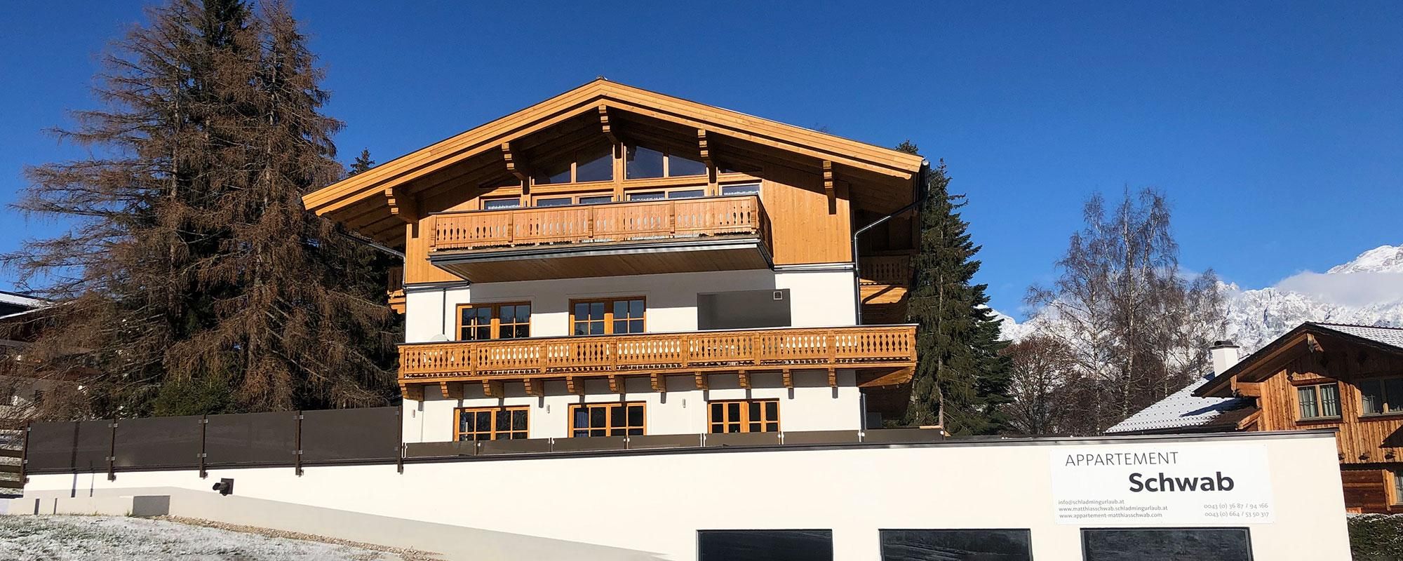 Tun Sie sich etwas Gutes, gönnen Sie sich einen Urlaub in einem unserer 4 geräumigen Komfort-Appartements für jeweils 2 bis 6 Personen. Direkt an der Skipiste, Wander- und Bikewegen, in unmittelbarer Nähe zur Talstation der Gipfelbahn Hochwurzen. Unsere Umgebung lädt zu Entdeckungsreisen an der frischen Luft ein. Spazieren Sie zum Einkaufen in das kleine Ortszentrum von Rohrmoos, zu unseren nahegelegenen Restaurants und Gasthäusern oder einfach mitten ins Wander- und Skiparadies. Oder fahren Sie umweltschonend mit dem Bus nach Schladming oder an einen Ausgangspunkt für herrliche Wanderungen. Für Golfer bieten wir 20 % Greenfee Ermäßigung im Golfclub Schladming-Dachstein an. Ihr Auto macht Urlaub in unserer Tiefgarage und mit dem hauseigenen Lift gelangen Sie direkt bis zu Ihrem Appartement. Entspannen und Genießen Sie Ihren Urlaub in Ihrem Appartement samt großzügiger Terrasse mit Blick auf unsere herrlichen Seitentäler der Schladminger Tauern, der Planai, ins Ennstal und dem Dachstein-Massiv.