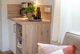 Unsere 40m² Wohnung für 1-2 Personen besteht aus einem Wohnraum mit Küche und Sofa, einem Schlafzimmer mit Doppelbett und einem Badezimmer.