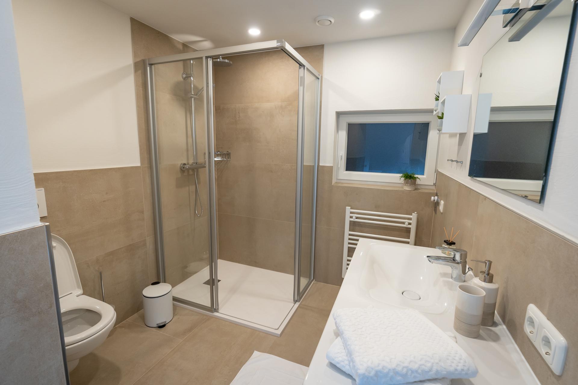 • voll eingerichtetes, neues Badezimmer (großzügige Dusche, WC, Waschtisch)