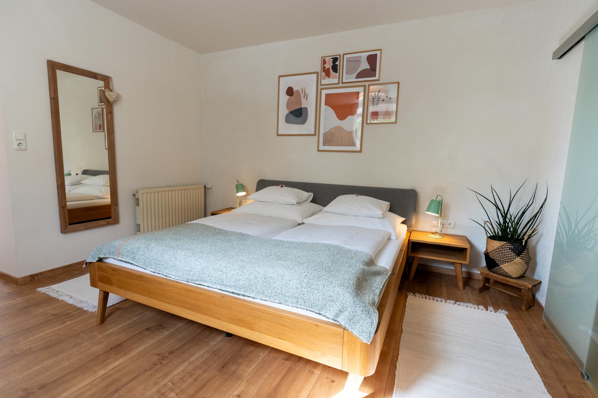 • hinter dem offenen Durchgang befindet sich das mit einem Doppelbett eingerichtete Schlafzimmer