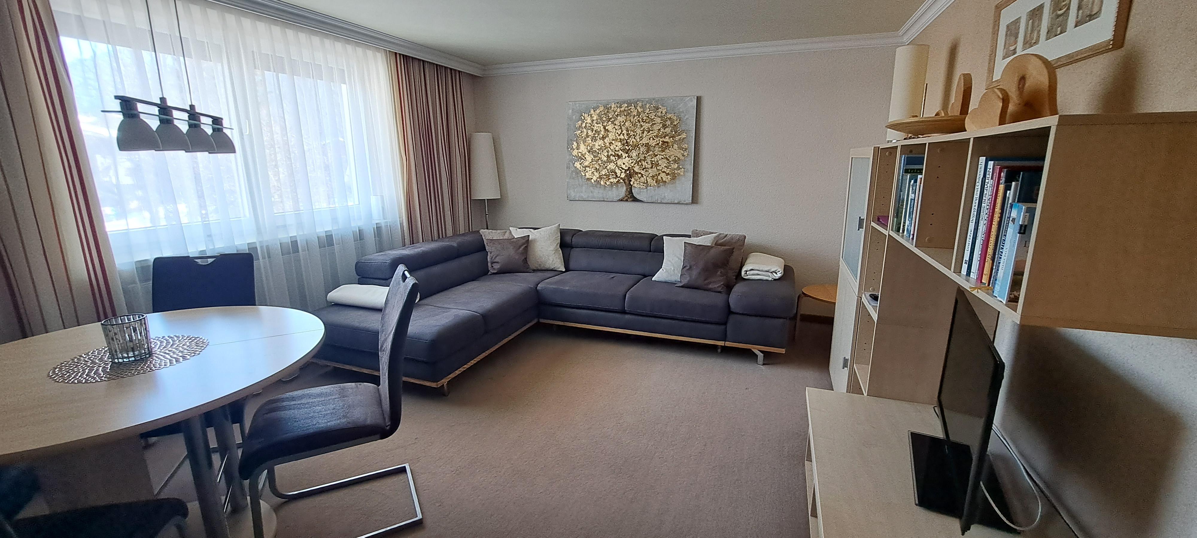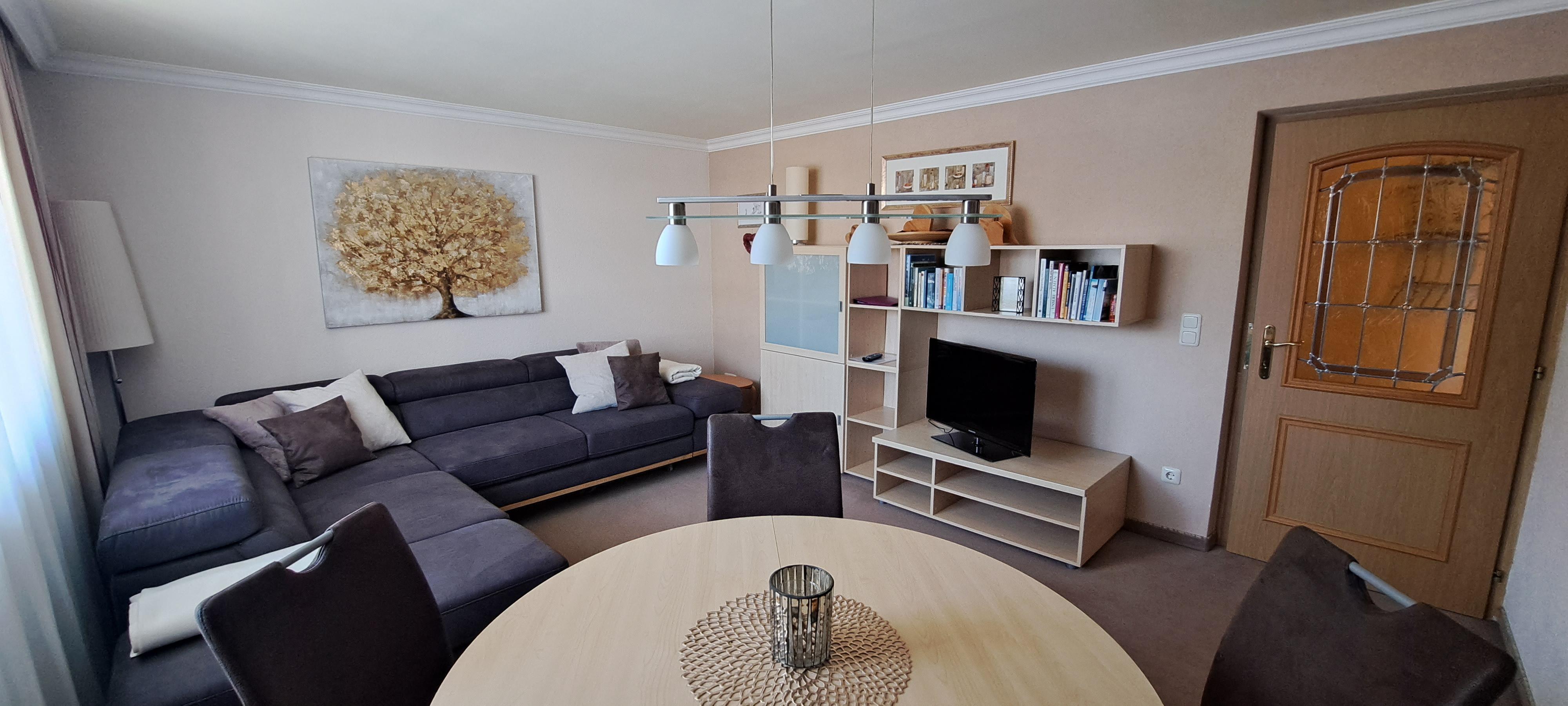Geräumige, bestens ausgestattete und lichtdurchflutete Ferienwohnng auf eigener Etage/Hochparterre mit kleinem Balkon und einer Terrasse mit Blick auf die umliegende Bergkulisse des Karwendels.