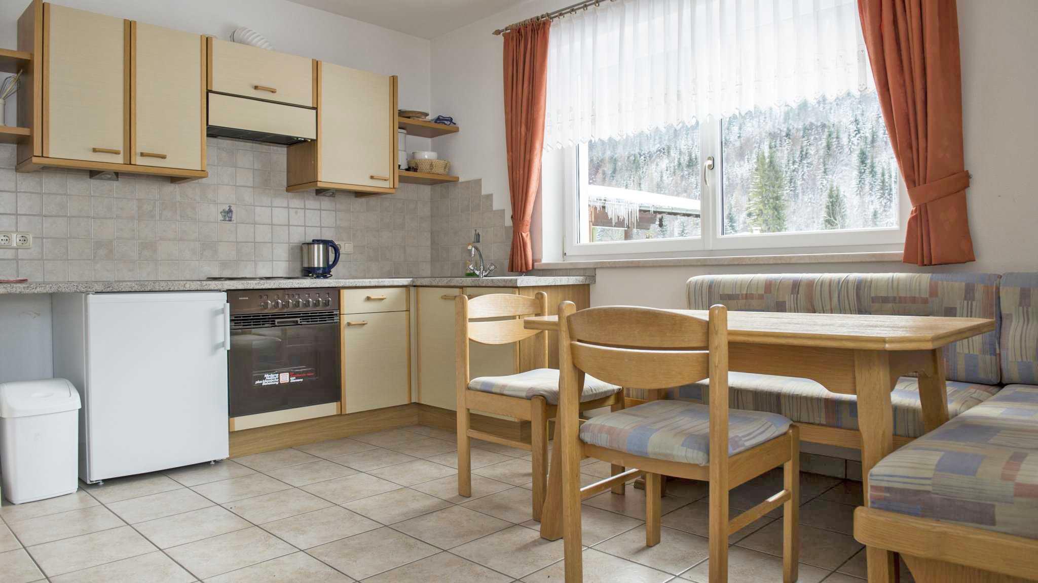 Die Einrichtung ist jeweils hell gehalten, die Ausstattung entspricht dem Standard - Geschirr und Besteck, Kochutensilien, Bettwäsche, Hand- und Badetücher, Herd mit Backrohr sowie Kühlschrank mit Gefrierfach sind vorhanden. SAT-TV und Radio befinden sich in der Wohnküche, WLAN ist im Preis des Appartements inkludiert. Parkplätze befinden sich direkt am Haus, Garagen auf Anfrage, Unterstellmöglichkeiten für Fahrräder sowie im Winter für Skier, Rodeln etc. sowie Schuhtrockner sind ebenfalls vorhanden.