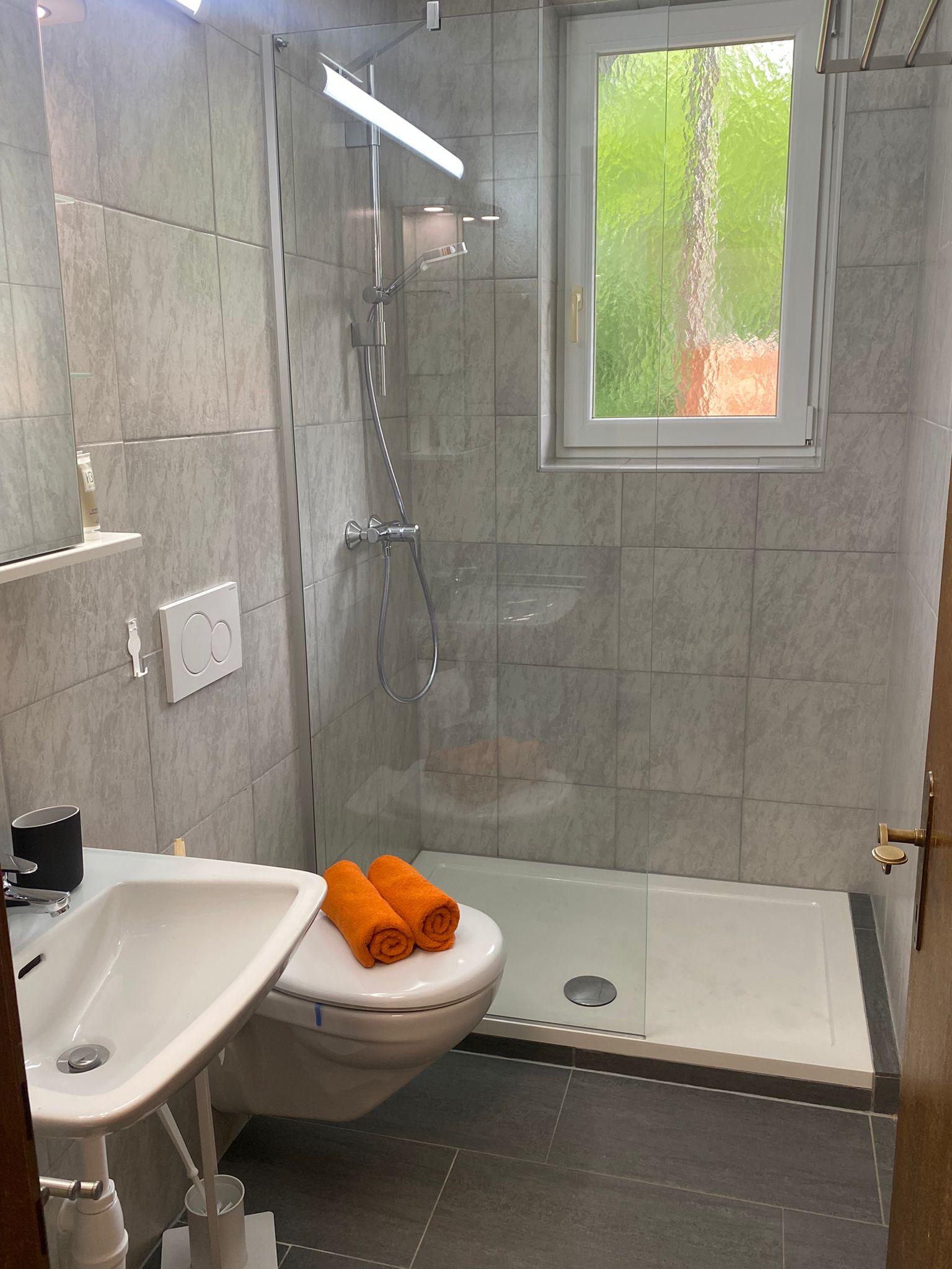 Die Ferienwohnung verfügt über ein Badezimmer mit Dusche und WC sowie einer Garderobe, 2 Schlafzimmer, einer Küchenzeile, einem Ess-/ Wohnbereich mit TV und einem Anziehraum.