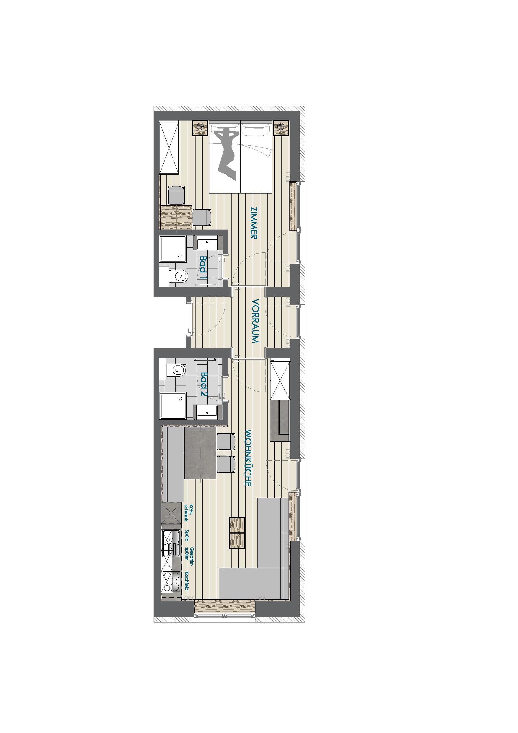 4 modern ausgestattete Appartements in verschiedenen Größen.