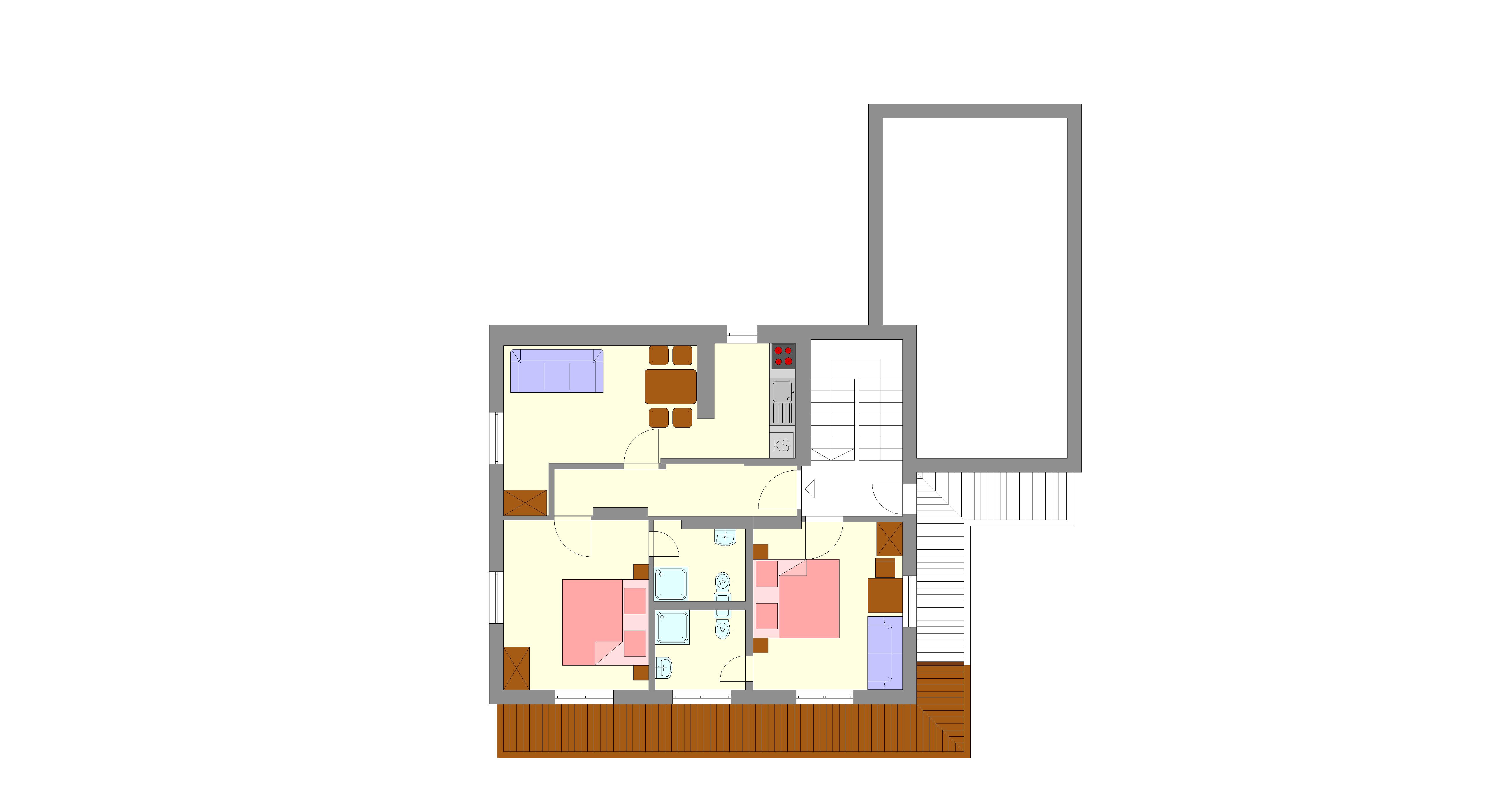 Schöne geräumige Ferienwohnung für 1 bis 4 Personen, ca. 70m² groß. Die Wohnung befindet sich im 1. Stock, bestehend aus 2 Schlafzimmern mit Dusche und WC, hellem Wohnzimmer und Küche. Ein großer Balkon mit Blick auf die umliegende Bergwelt ist auch vorhanden.