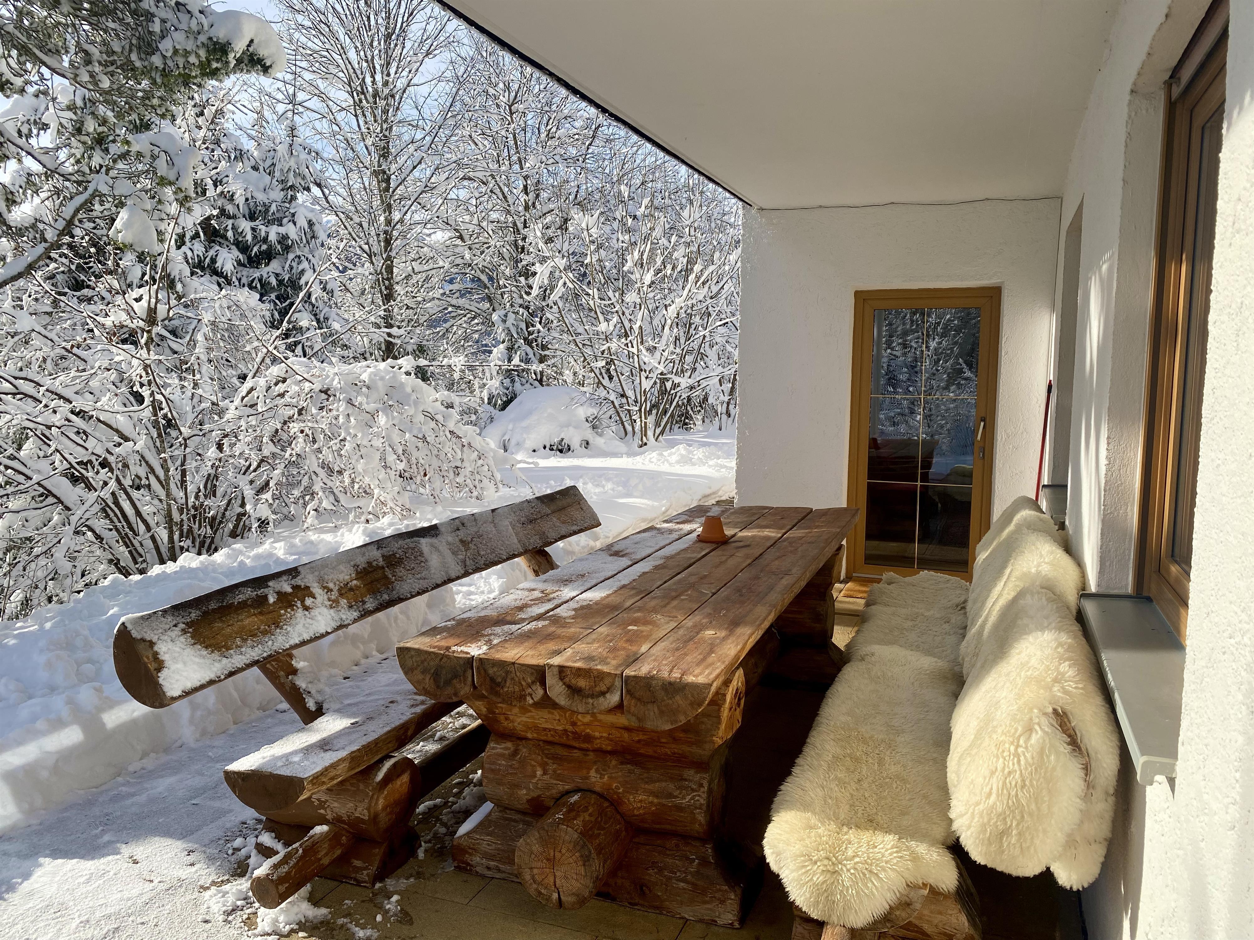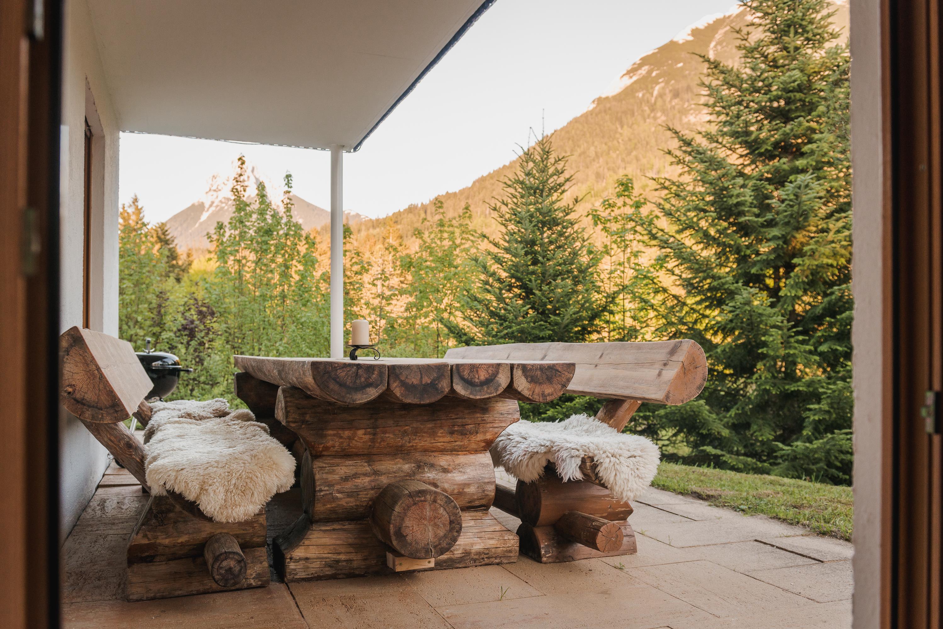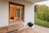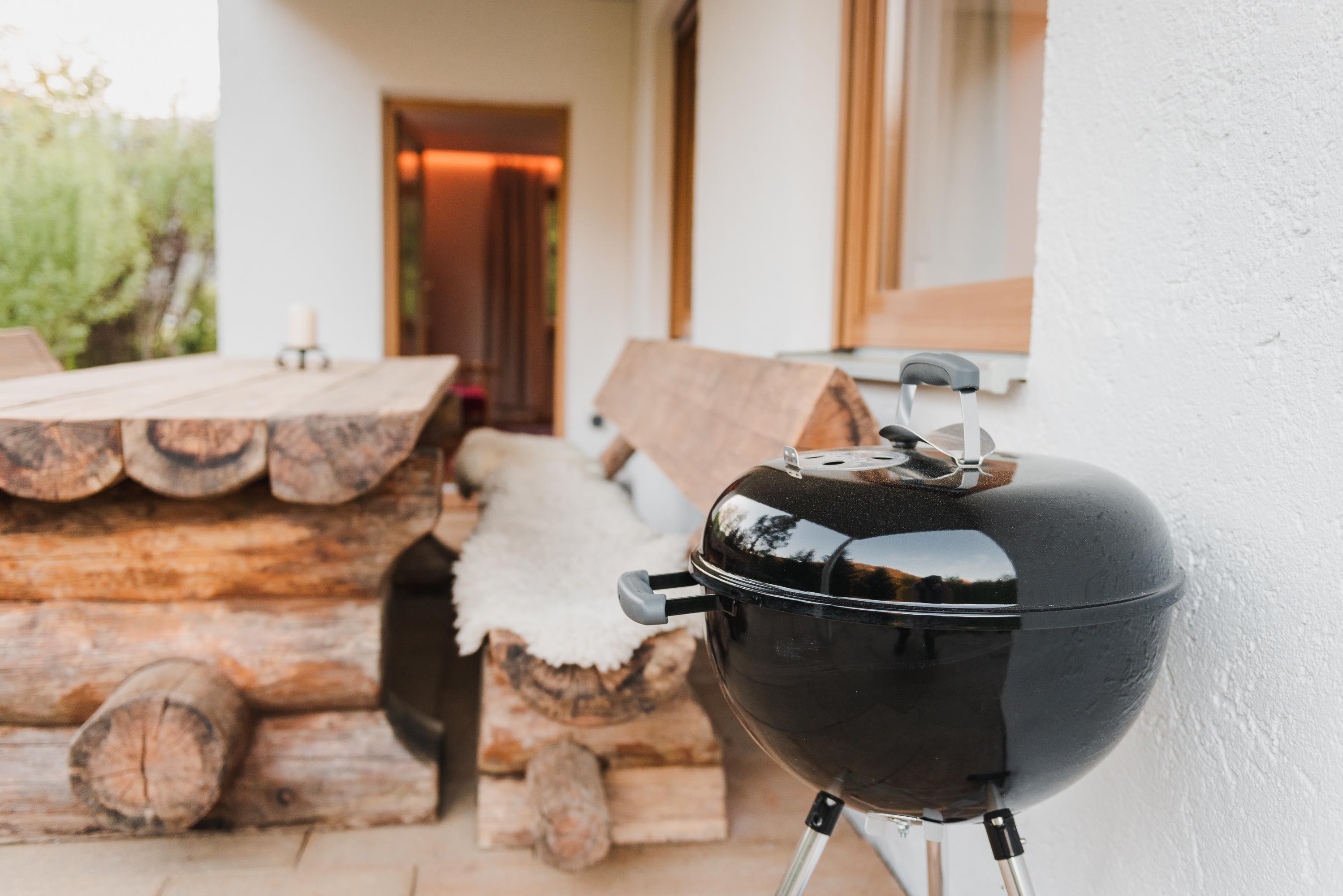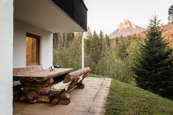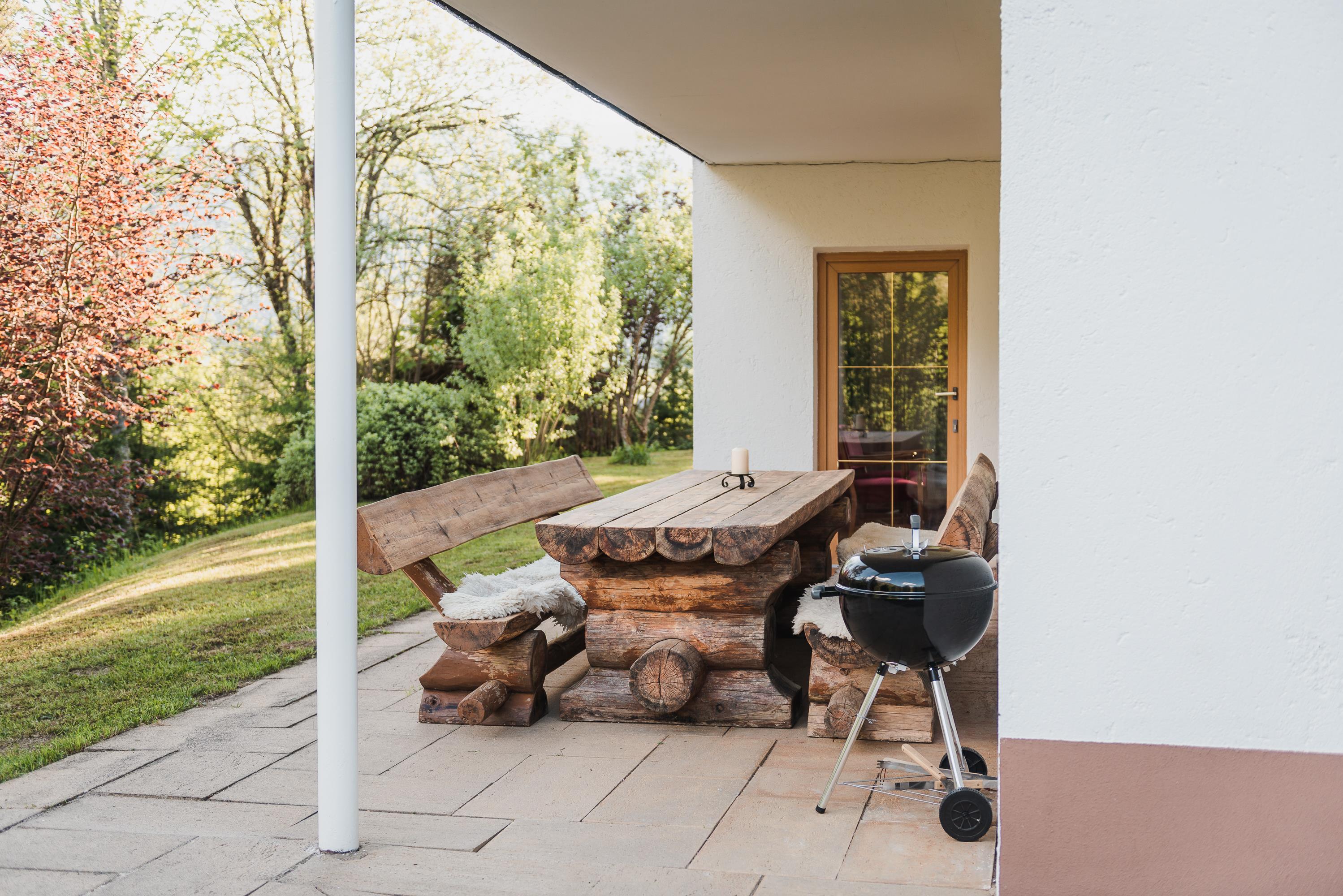 Auf der private Terrasse gibt es einen großen Massivholztisch mit Bänken und einen Grill. Die Terrasse wird von früh bis spät von der Sonne beschienen und ist somit der perfekte Ort für ein langes Essen mit der ganzen Familie.