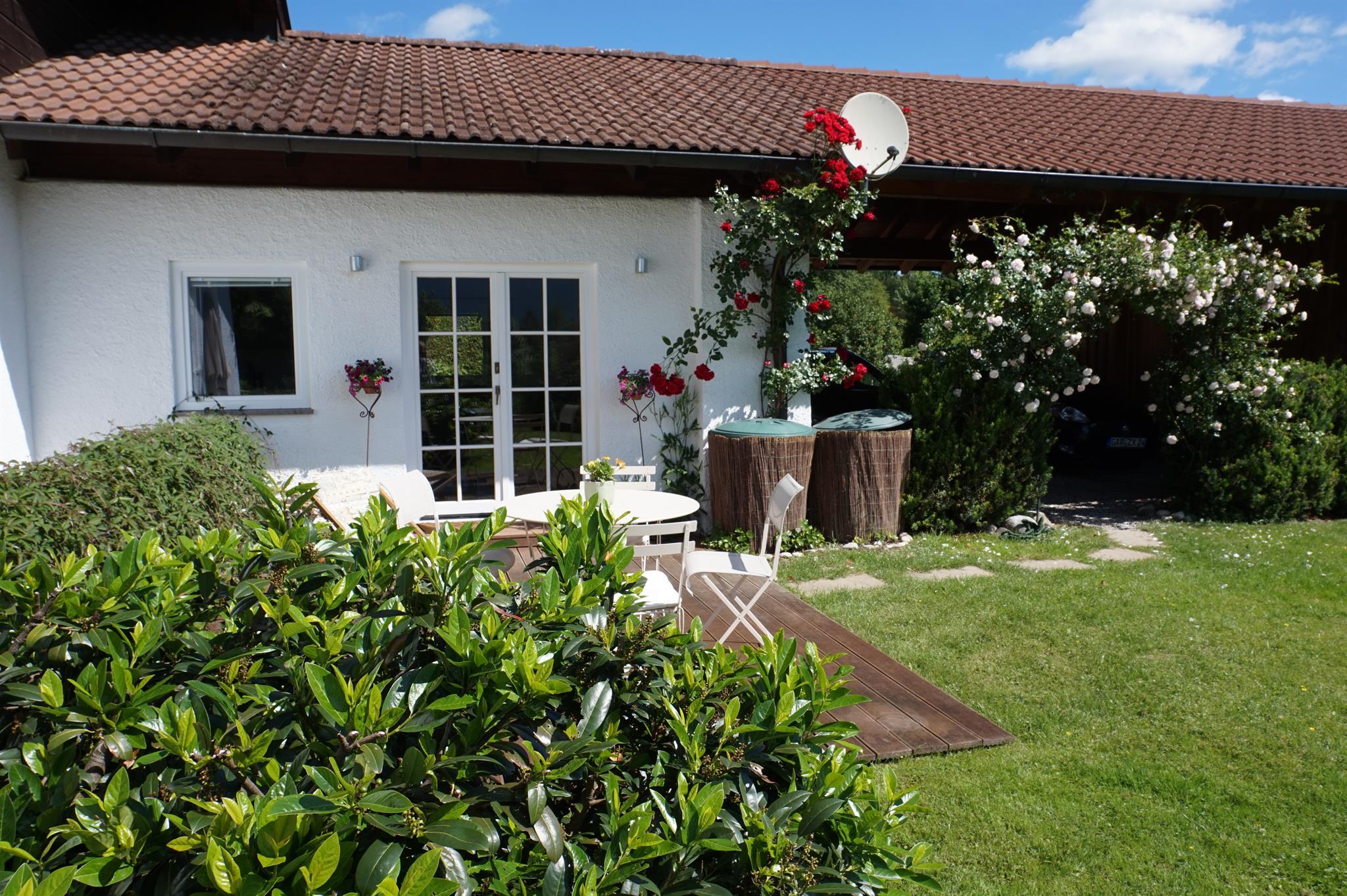 Gemütliches Sudio mit Terrasse und große 2-Zi-Ferienwohnung mit Balkon am Ortsrand von Murnau (Hechendorf) mit traumhaften Blick ins Naturschutzgebiet Murnauer Moos und Alpenkette. Ideal für alle, die gerne wandern, spazieren gehen, Fahrrad fahren, Berg steigen oder einfach ausspannen möchten.
