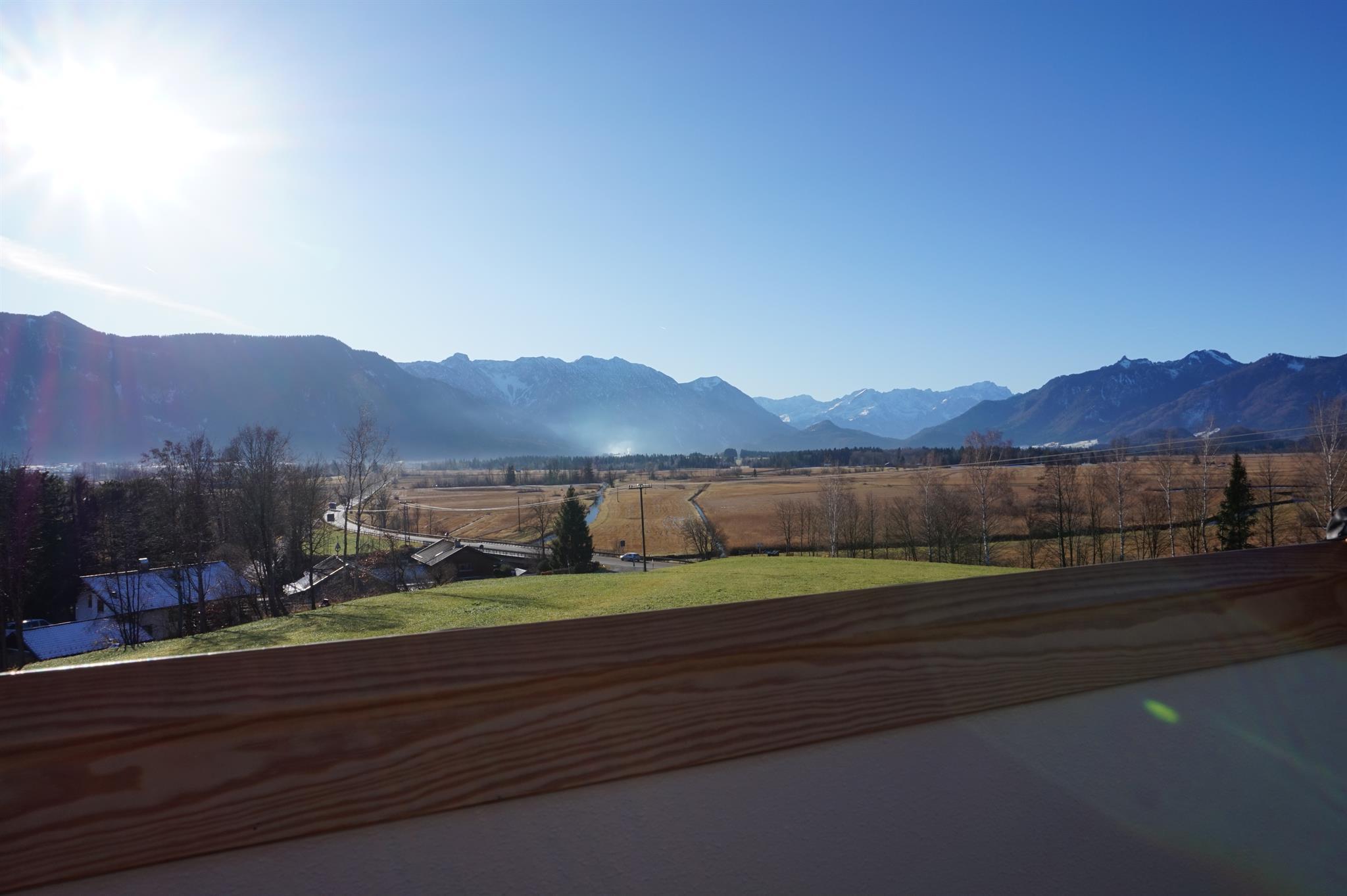 LAGE: 1. Stock eines 2-Familienhauses am südlichen Ortsrand vom dörflichen Hechendorf; freier Blick auf das Murnauer Moos und das Voralpenland mit Herzogstand, Heimgarten und Ammergebirge.