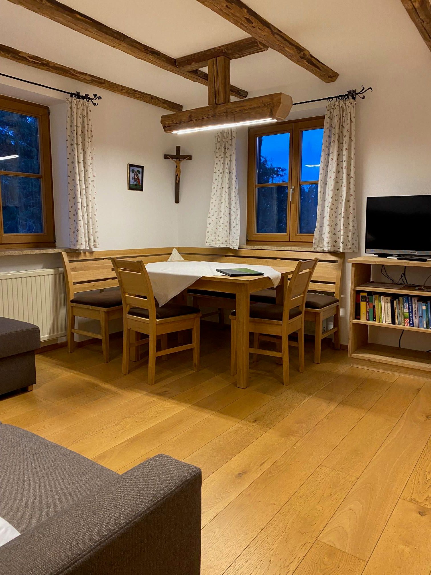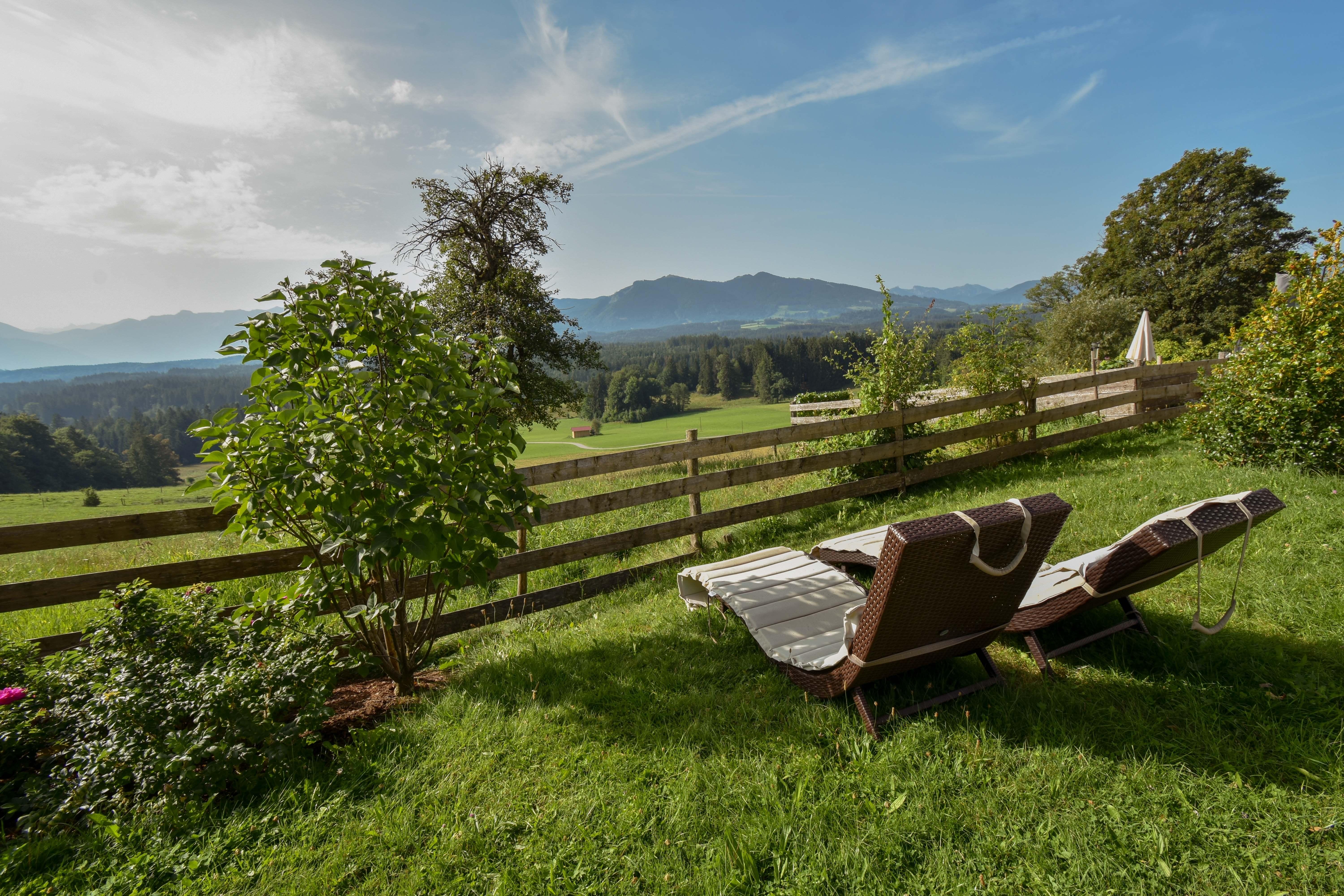 Sie wohnen auf unserm Bio-Bauernhof in hochwertig und gemütlich eingrichteten 4 oder 5 Sterne Ferienwohnungen im Nebenhaus oder im Bauernhof. Die Wohnungen haben Balkon, Küche, Wohnzimmer, 2 bzw. 3 Schlafzimmer, Bad, herrlichen Panoramablick, manche mit Blick zum Staffelsee. Sie haben die Möglichkeit hofeigene Bio-Produkte, Semmeldienst oder Frühstückskorb zu nutzen. Alles im Service enthalten: Frische Luft, tolle Aussicht, 1x wöchentlich Ponyreiten, Käse machen, Grill oder Lagerfeuer Abende und viel Erholung. Sehr familienfreundlich, Babyausstattungen, viele Streicheltiere(Kühe, Kälber, Pony, Katzen, Hasen, Schafe, Hühner), Reitmöglichkeit direkt auf dem Hof, 2 Spielplätze, großer Kinderfuhrpark, Spielekeller mit Tischtennis, Dart, Kicker, oder in der Spielscheunde klettern, rutschen oder einfach nur chillen. Mitmachhof. www.rechenmacherhof.de
