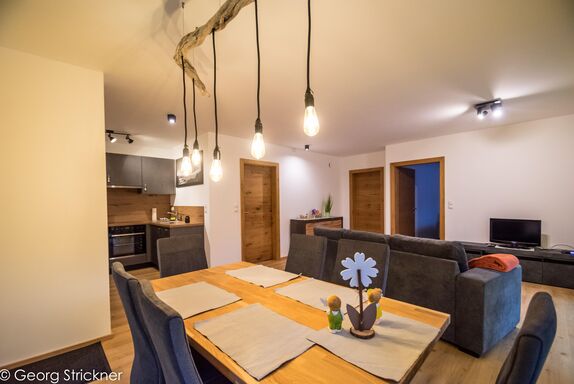 Die Ferienwohnung bietet genügend Platz für 4 Personen (Doppelbett + Schalfsofa) und ist mit einer kompletten Küche, einem Badezimmer, einem separaten Schlafzimmer und einem Abstellraum ausgestattet. Die Terrasse bietet im Sommer einen tolle Aussicht. Die Lage direkt am Waldfestplatz ist ideal im Winter für den Start von Skitouren oder im Sommer für herrliche Wanderungen auf die umliegenden Bergütten oder Gipfel.