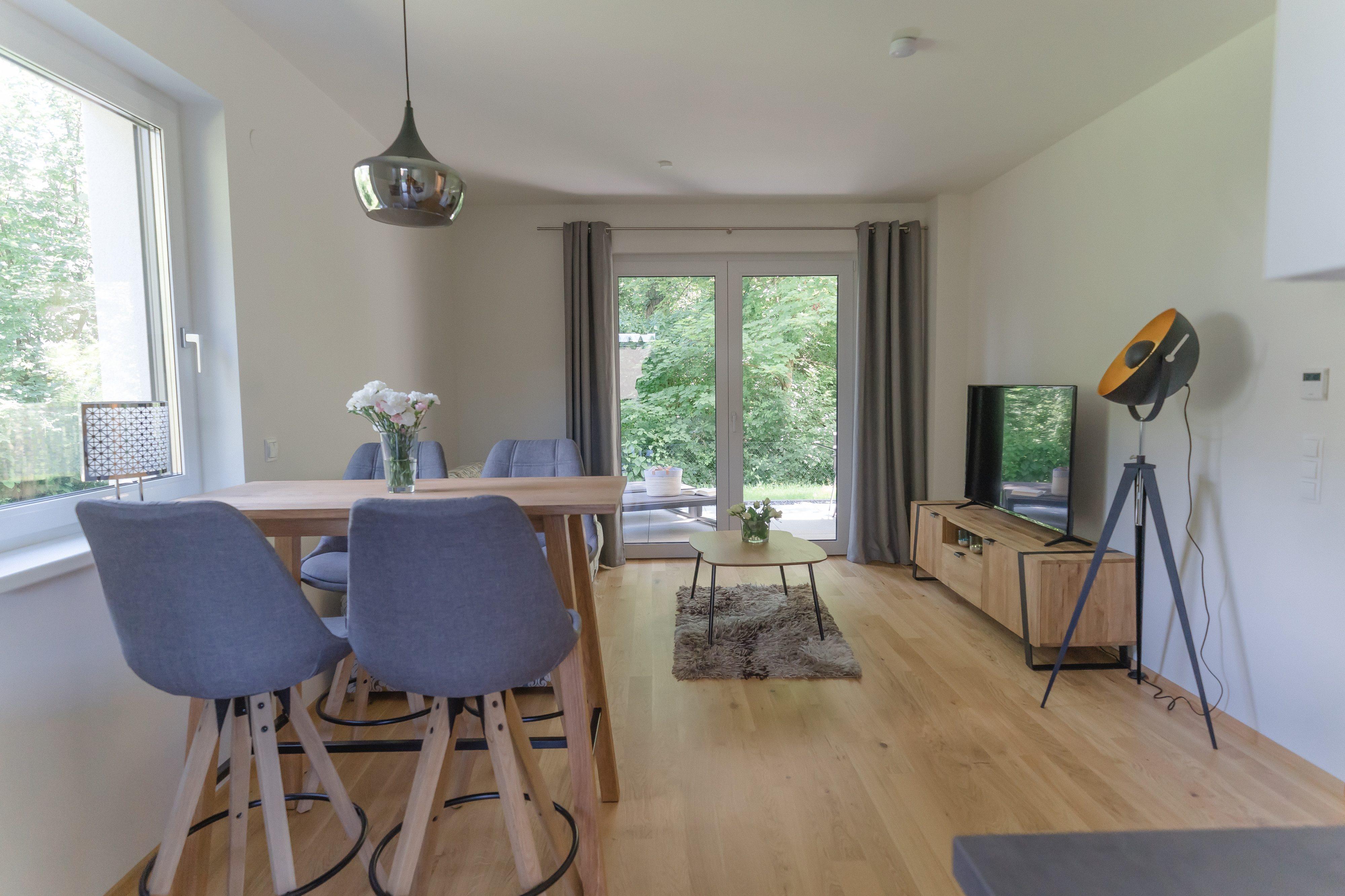 Das moderne und neu errichtete Haus mit 10 Wohneinheiten liegt zentral und Sie können vom Apartment aus zu Fuß den Ort erkunden. Zur Schiffsanlegestelle und zum Parkbad Krumpendorf sind es nur wenige Schritte. Das Richtung Nord/Westen ausgerichtete Apartment (55m2) befindet sich im Erdgeschoss und verfügt über 2 Terrassen mit eigener großzügiger Gartenfläche.