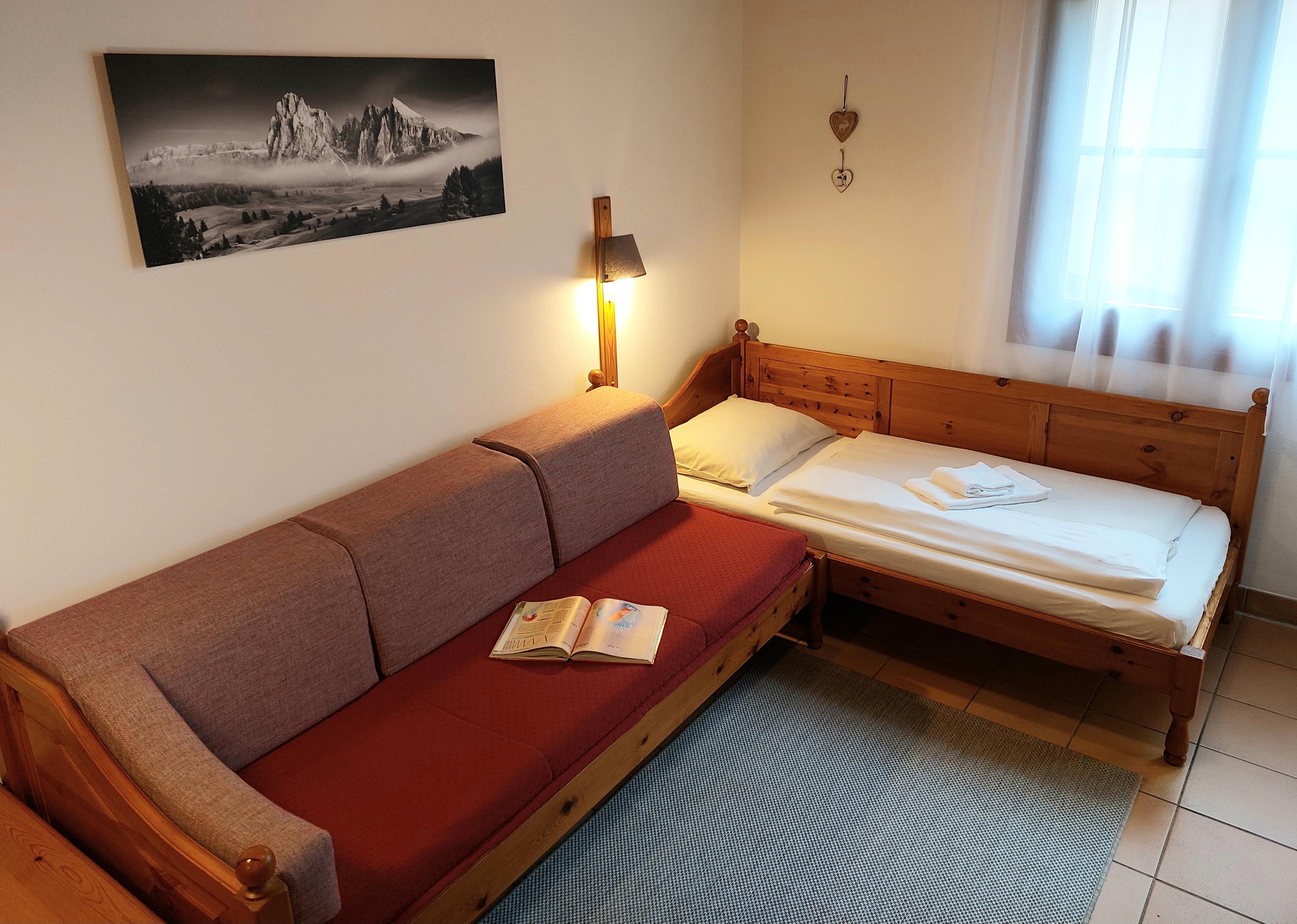 Das Apartment ist ausgestattet mit einem gemütlichen Wohnbereich mit Massagestuhl, ein separates Schlafzimmer mit großem Doppelbett sowie ein Badezimmer mit zusätzlichen Heizkörper, großzügigem Waschtisch, Dusche und WC. Der gemütliche Wohnraum mit Flatscreen-TV lädt zum geselligen Beisammensein ebenso wie zu einem entspannten Fernsehabend ein. Im Wohnbereich befinden sich zusätzlich zwei Sofabetten, die auch als Doppelbett adaptierbar, genutzt werden können. Zudem darf man Wellnessbereich und Restaurant im benachbarten Hotel gegen Gebühr mitbenützen!